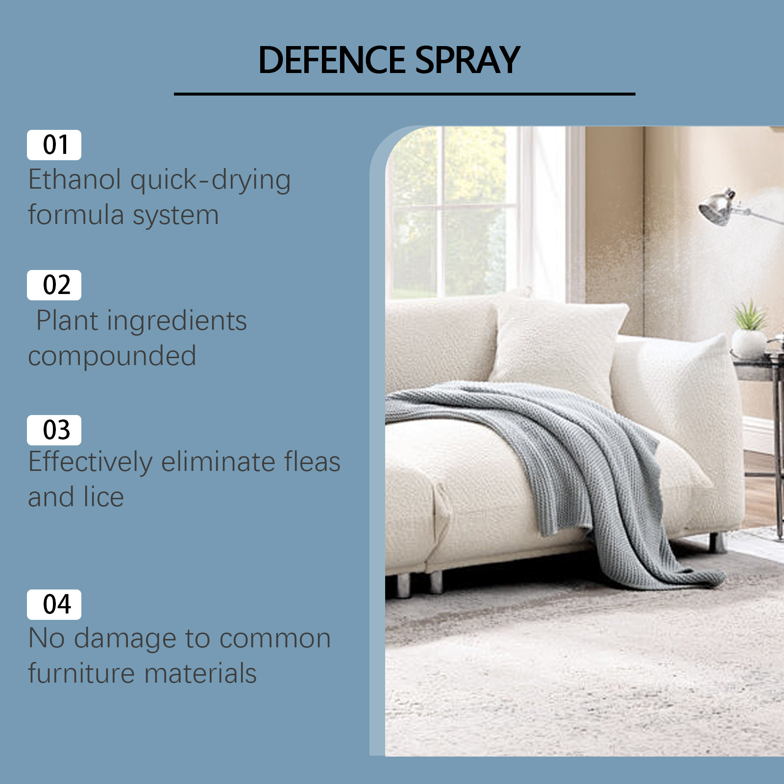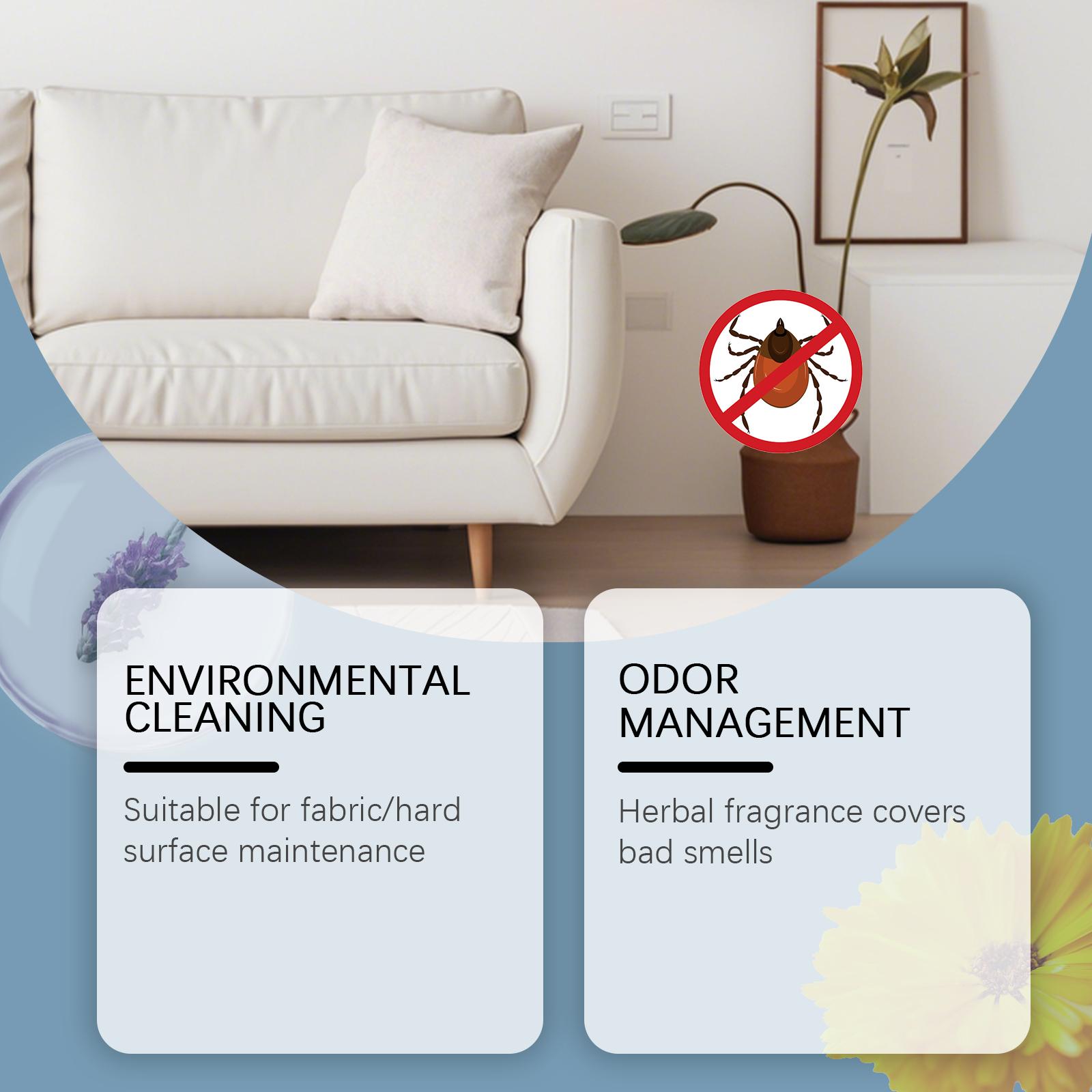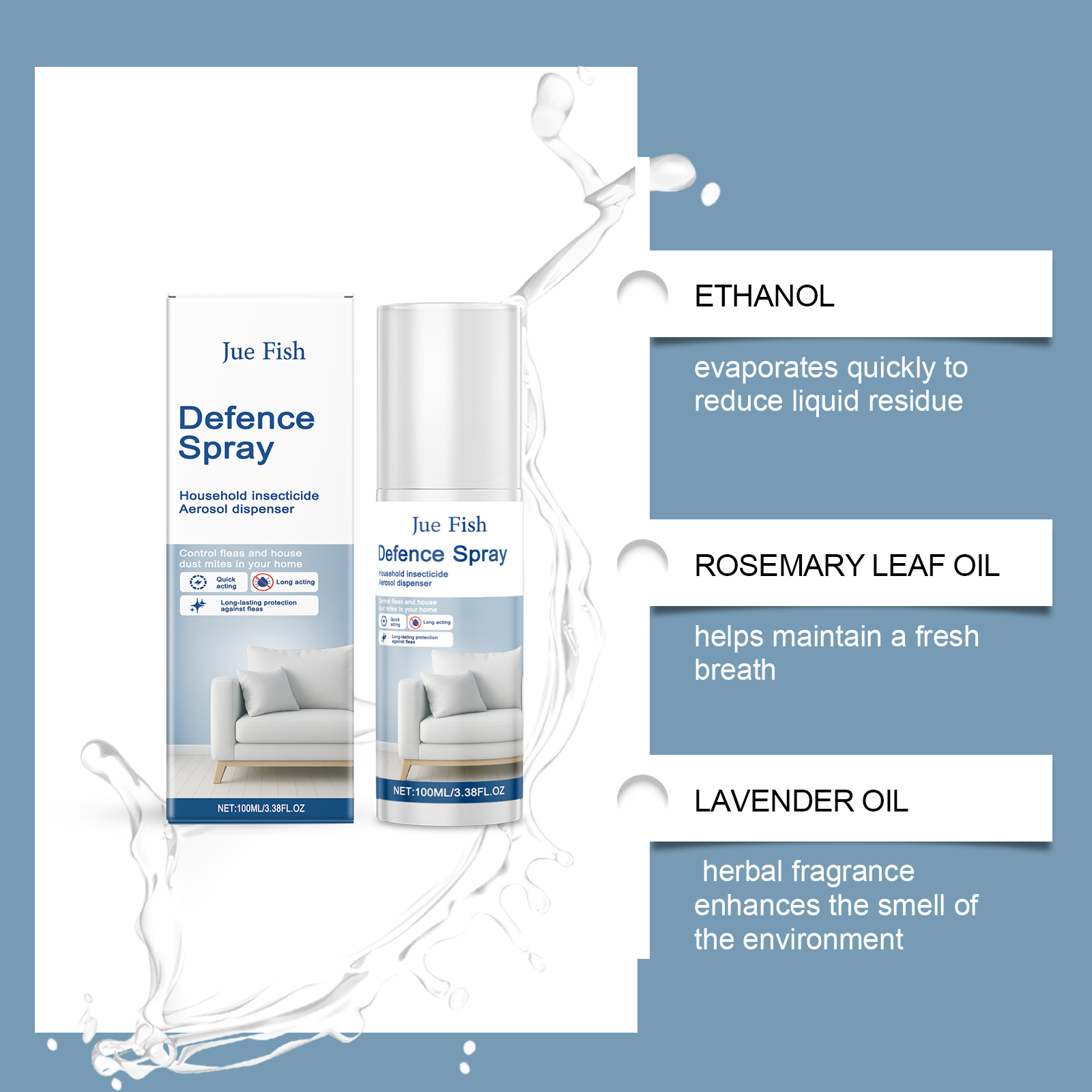 我们的家用除蚤喷雾,由氢化蓖麻油、迷迭香叶油精心调配而成。专为适用于织物/硬表面的维护设计。使用方法极为便捷:使用前彻底摇匀瓶子,从目标表面喷30厘米,重点处理角落和缝隙。并且它具有草药香,可以掩盖恶臭,360度喷嘴精确控制范围。