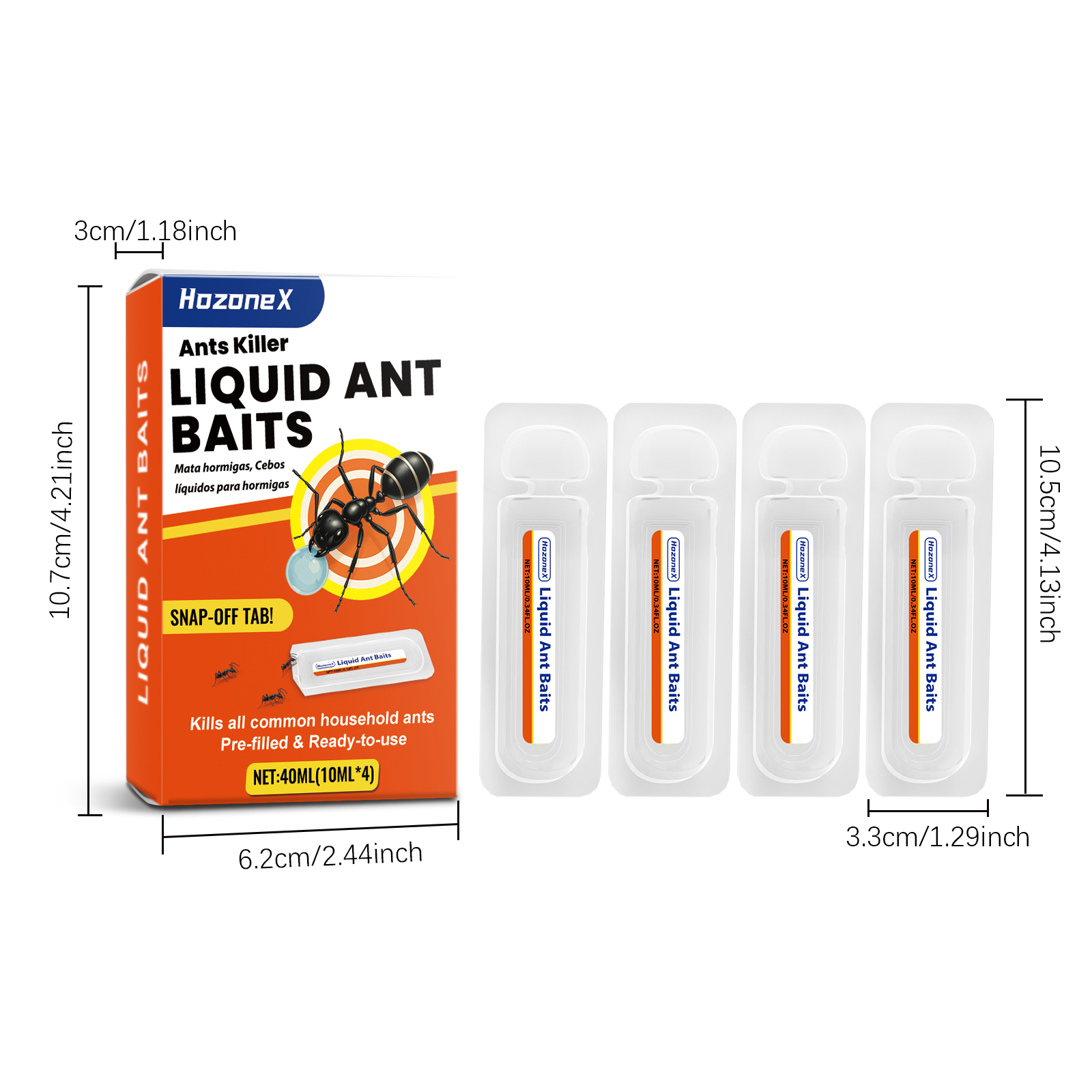 我们的液体蚂蚁诱饵,由硼砂、糖浆精心调配而成。专为有效地引诱觅食的蚂蚁将毒饵带回巢穴设计。使用方法极为便捷:1.沿着开口处撕开包装。2.把它放在蚂蚁的活动路径和巢穴入口处。3.每10个单位平方米设置3-5个点以增强覆盖范围。4.定期检查和补充,并继续使用2-4周。并且它可以用毒饵从工蚁传递给蚁后,整个巢穴都被清理干净。适用于死角,如地板间隙、窗台和电器底部。