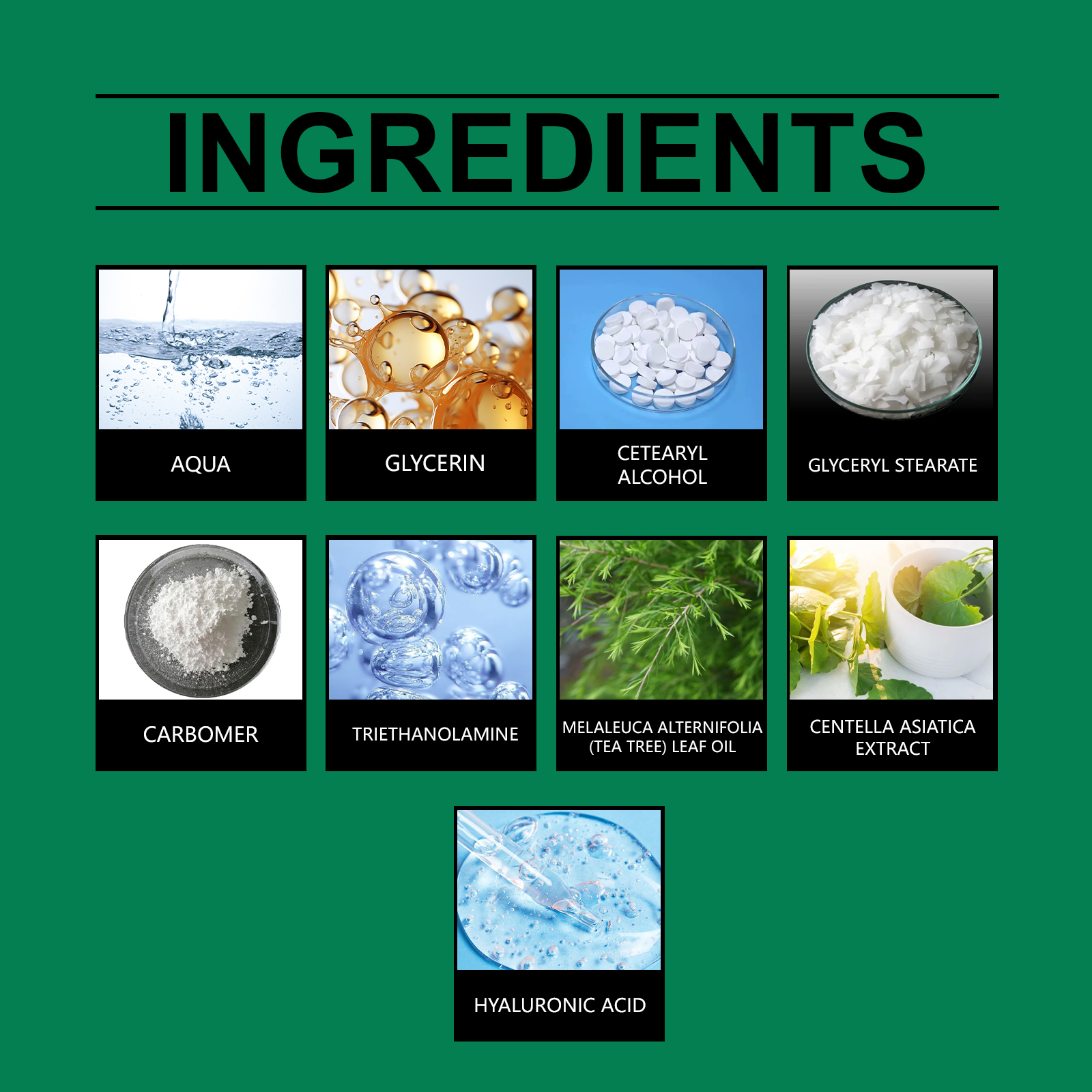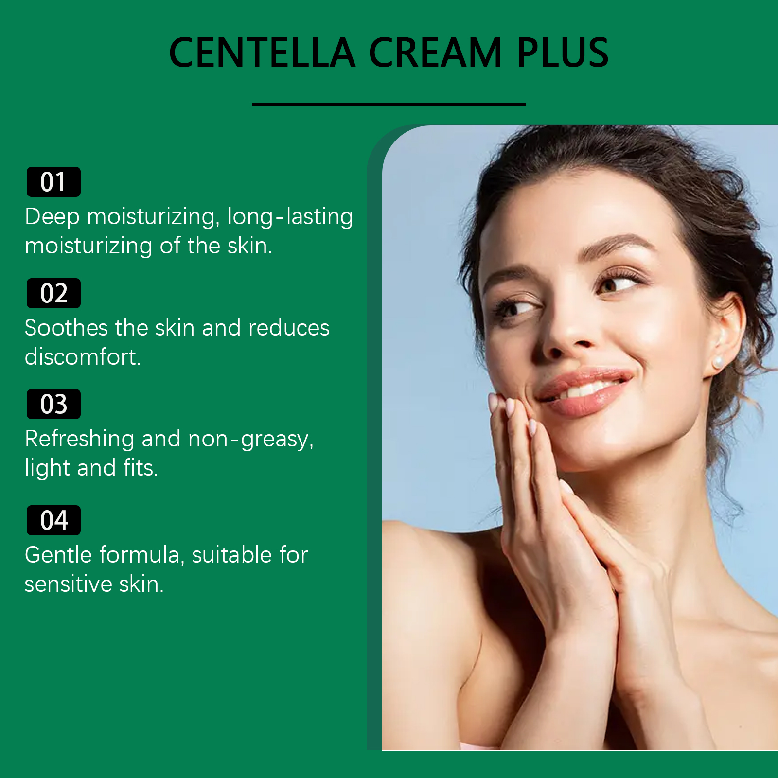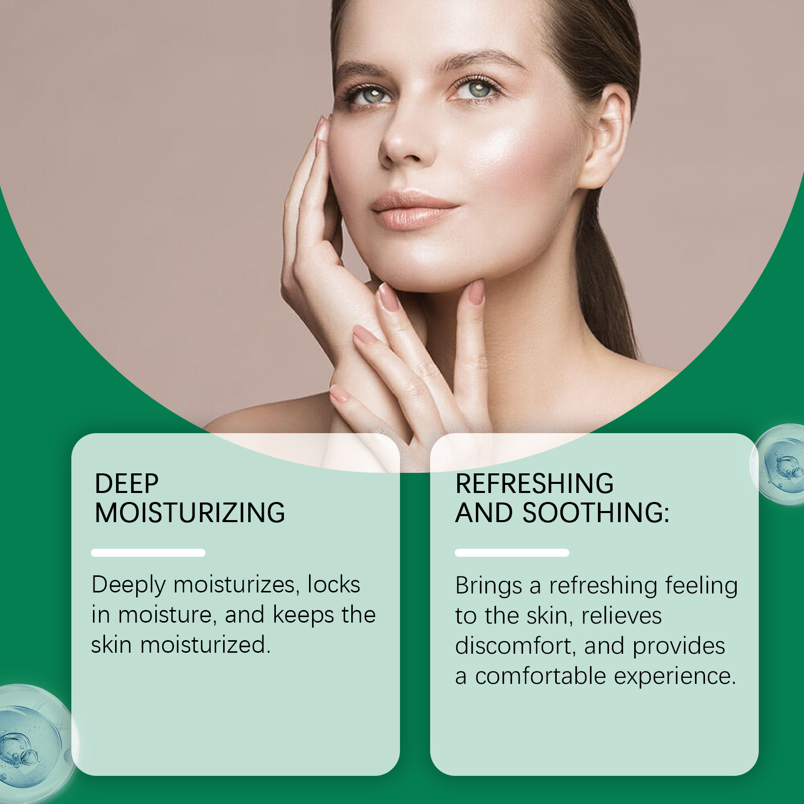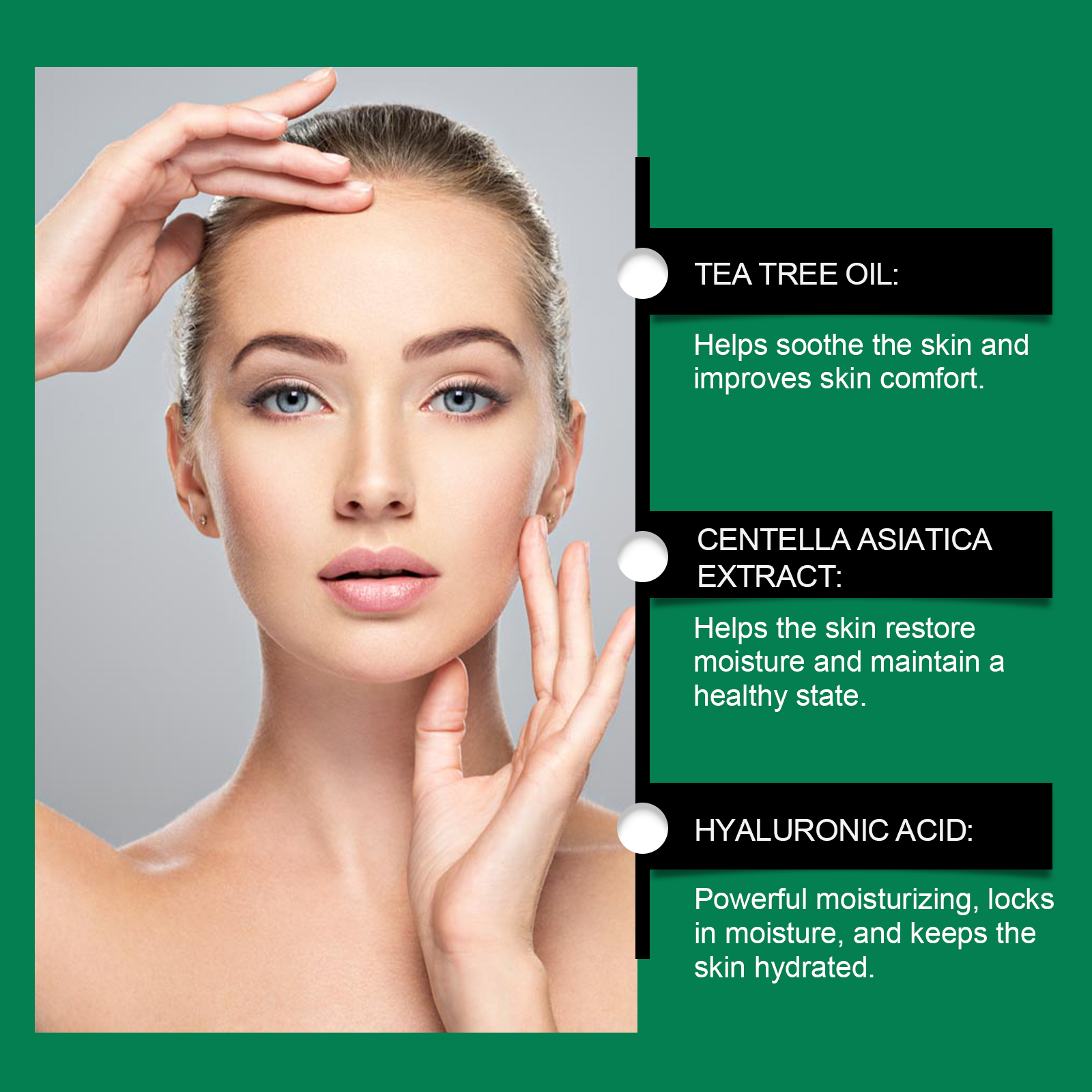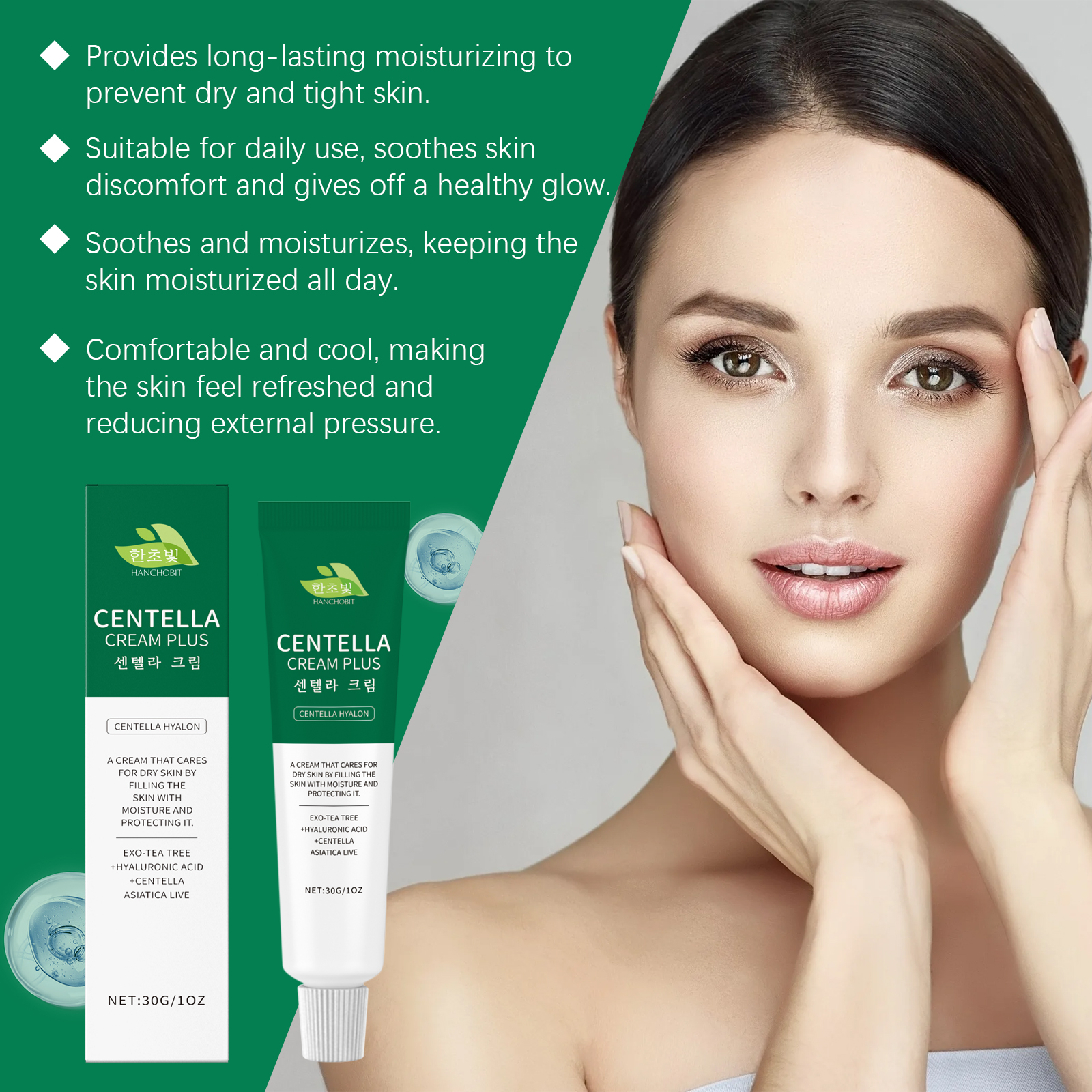 我们的保湿面霜,由茶树油、积雪草提取物、透明质酸精心调配而成。专为深层保湿,锁住水分,保持皮肤湿润设计。使用方法极为便捷:清洁后,擦干皮肤。将适量均匀涂抹于整个面部。按摩至完全吸收。并且可以给皮肤带来清新的感觉,缓解不适,提供舒适的体验。