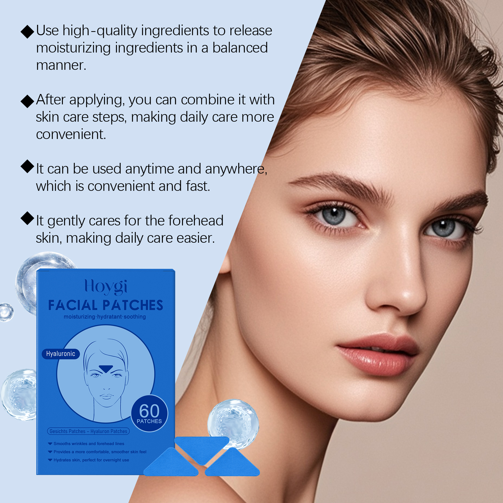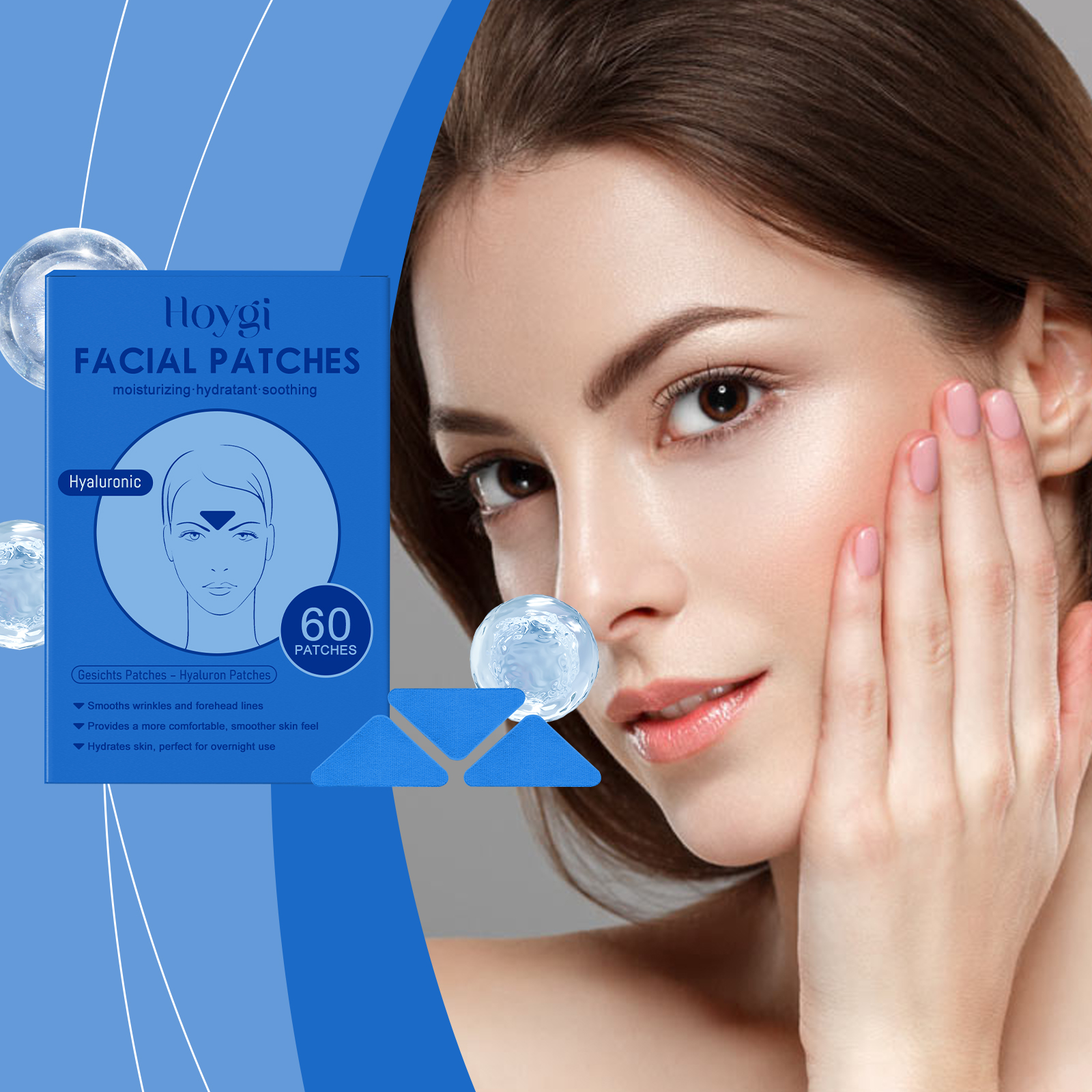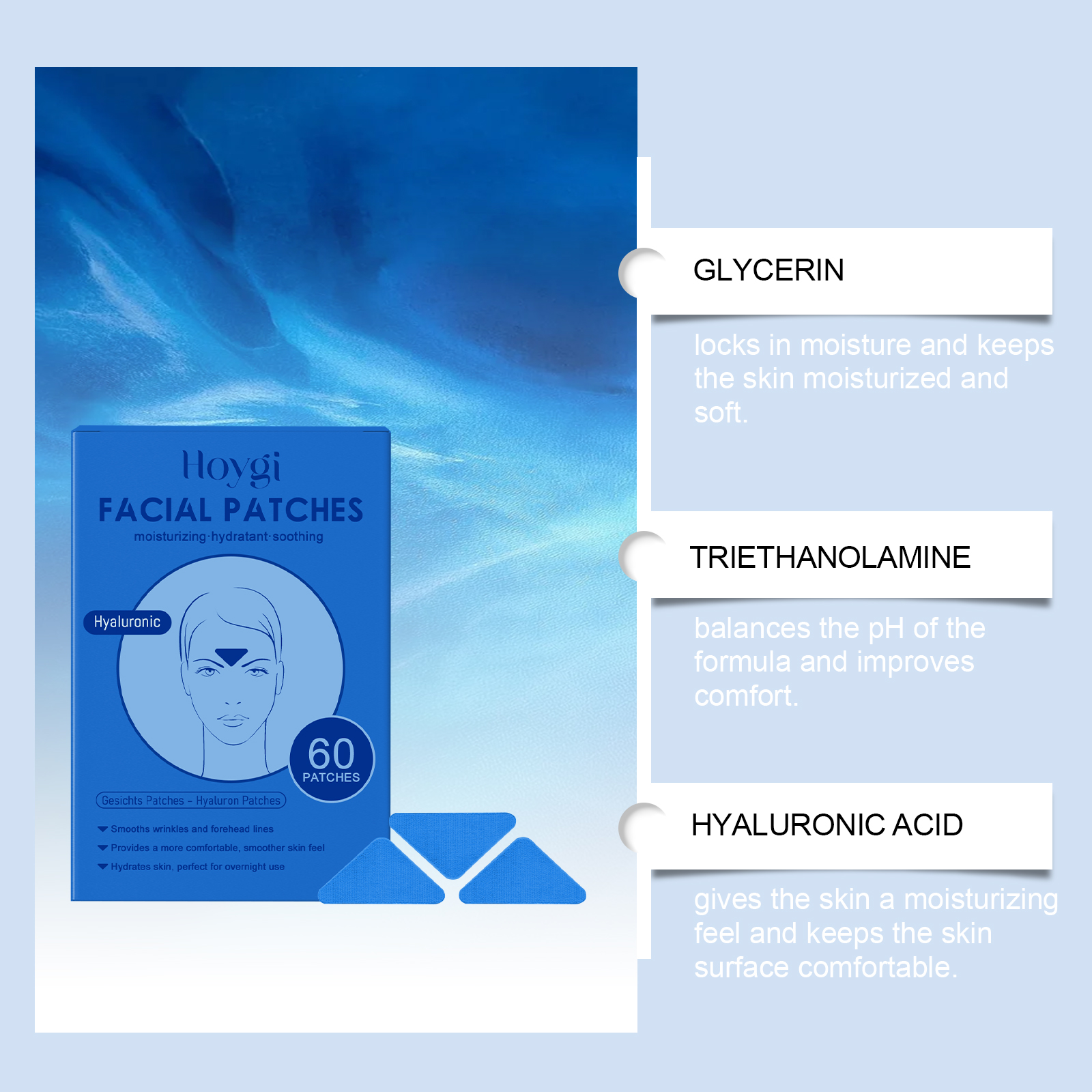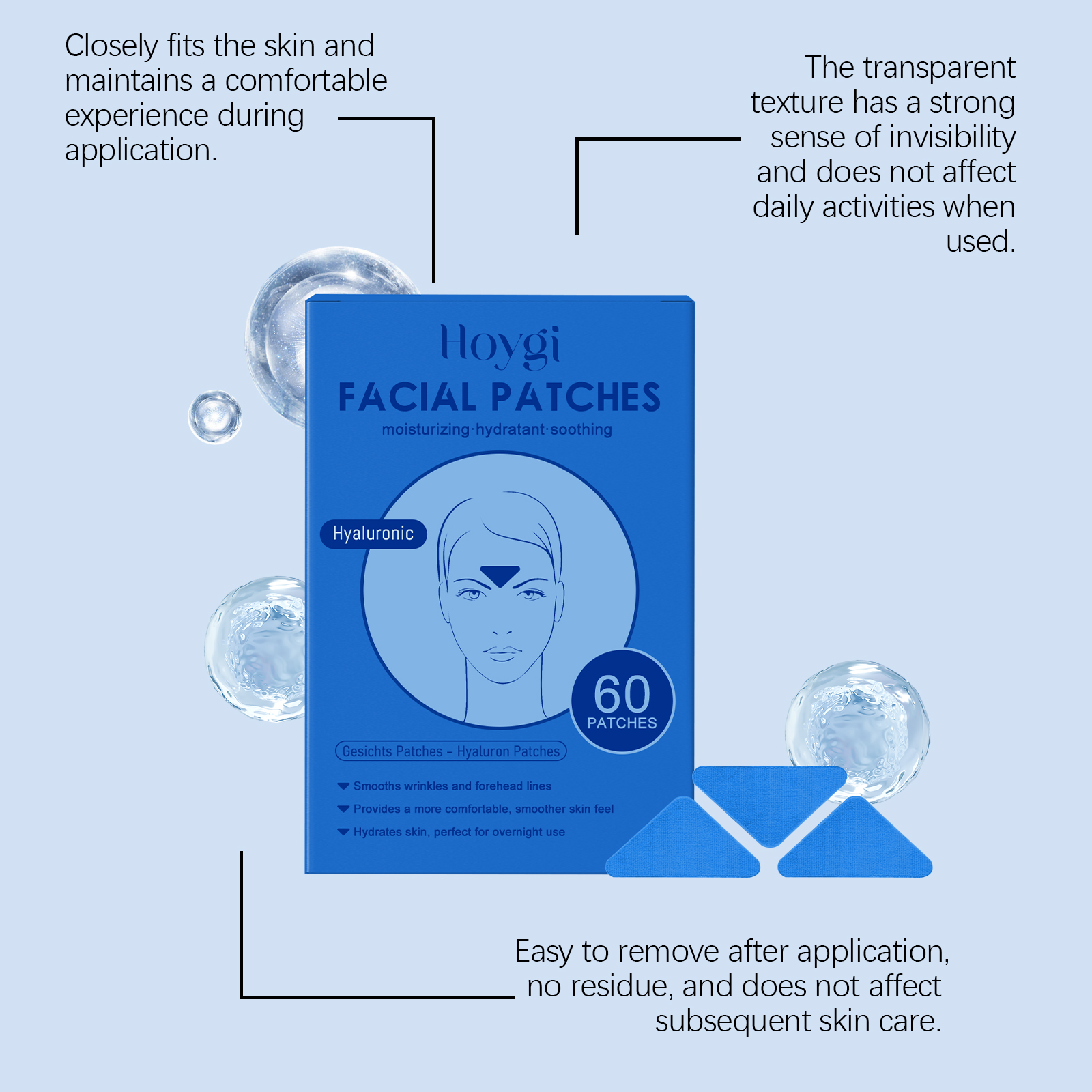 我们的透明质酸蓝色面部贴片,由甘油、卡波姆精心调配而成。专为适合前额区域,舒适轻薄且不易滑落设计。使用方法极为便捷:清洁额头周围的皮肤并保持干燥。撕掉贴片并撕掉薄膜。轻轻抚平额头上的皱纹并贴上贴片。等待1小时或一整夜后再取下贴片。并且可以使用透明质酸来滋润前额皮肤,适合多种肤质,使用后舒适且不紧绷。