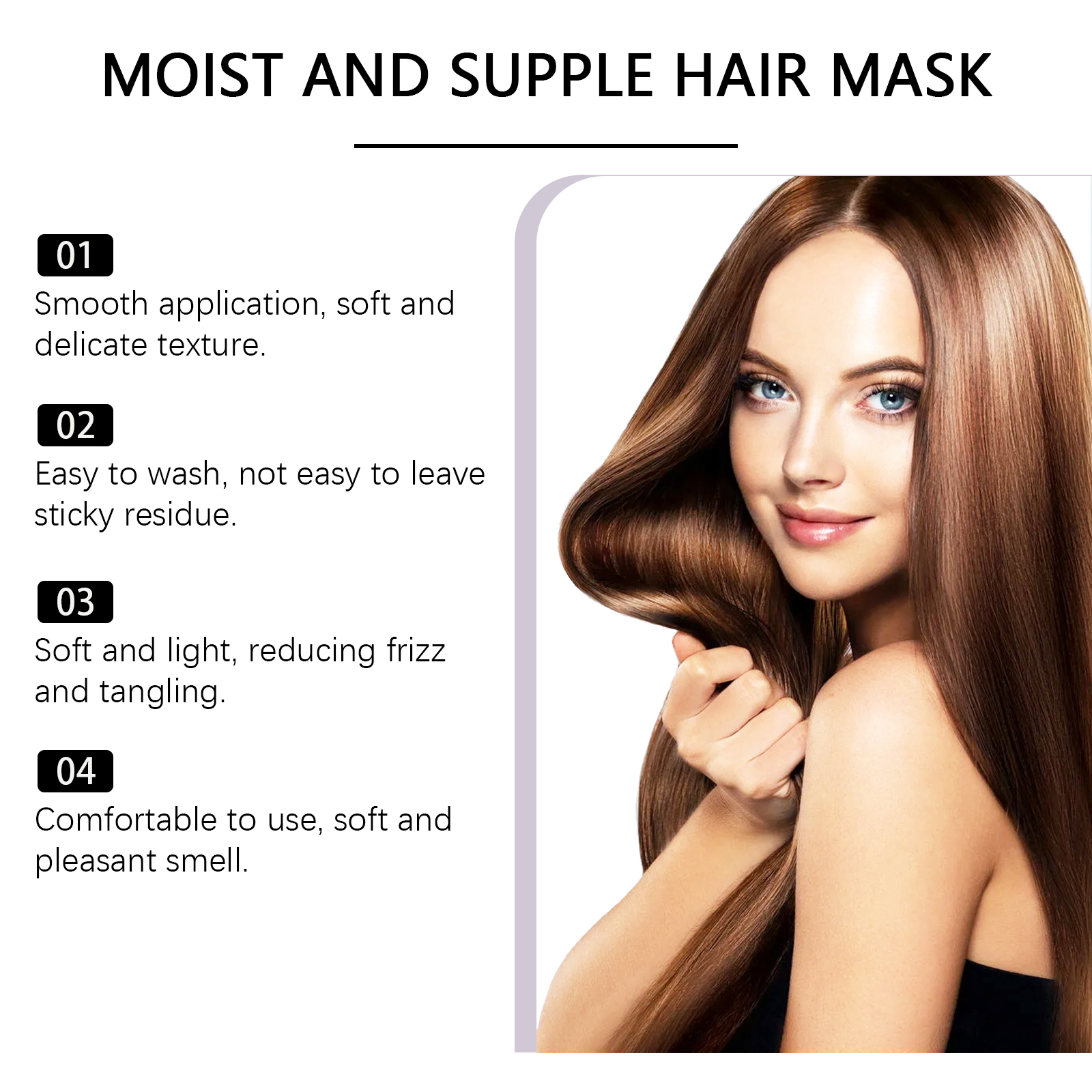 我们的温和滋润发膜,由鲸蜡硬脂醇、聚二甲基硅氧烷精心调配而成。专为使用后头发轻盈不沉重设计。使用方法极为便捷:洗头并吹干至半干。取适量本品,涂抹于头发和头皮上。用手轻轻地按摩头发和头皮。用清水冲洗。并且它具有轻盈顺滑的配方,带来顺滑的使用体验,适合各种护发需求。
