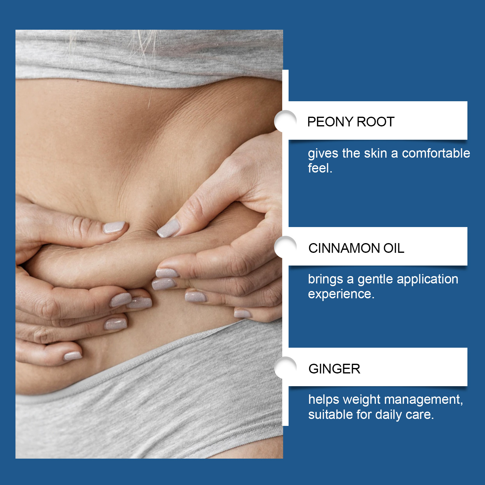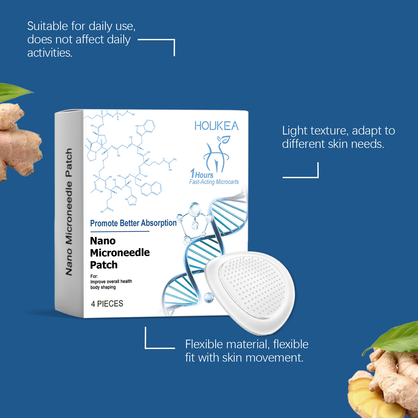 我们的身体护理贴,由芍药根、肉桂油、生姜精心调配而成。专为有助于身体形态管理,激活胶原蛋白以改善皮肤质地设计。使用方法极为便捷:小心不要触摸贴片的中心,撕下透明薄膜并取下贴片。将贴片贴在腹部并轻轻按压至少3秒。至少四小时后取下贴片(如果你在夜间使用贴片,请在第二天早上取下。)并且使用它不需要复杂的步骤,直接申请即可。贴合皮肤,稳定不易滑脱。促进循环以增强日间活力,而精致的配方可以修饰毛孔的外观。