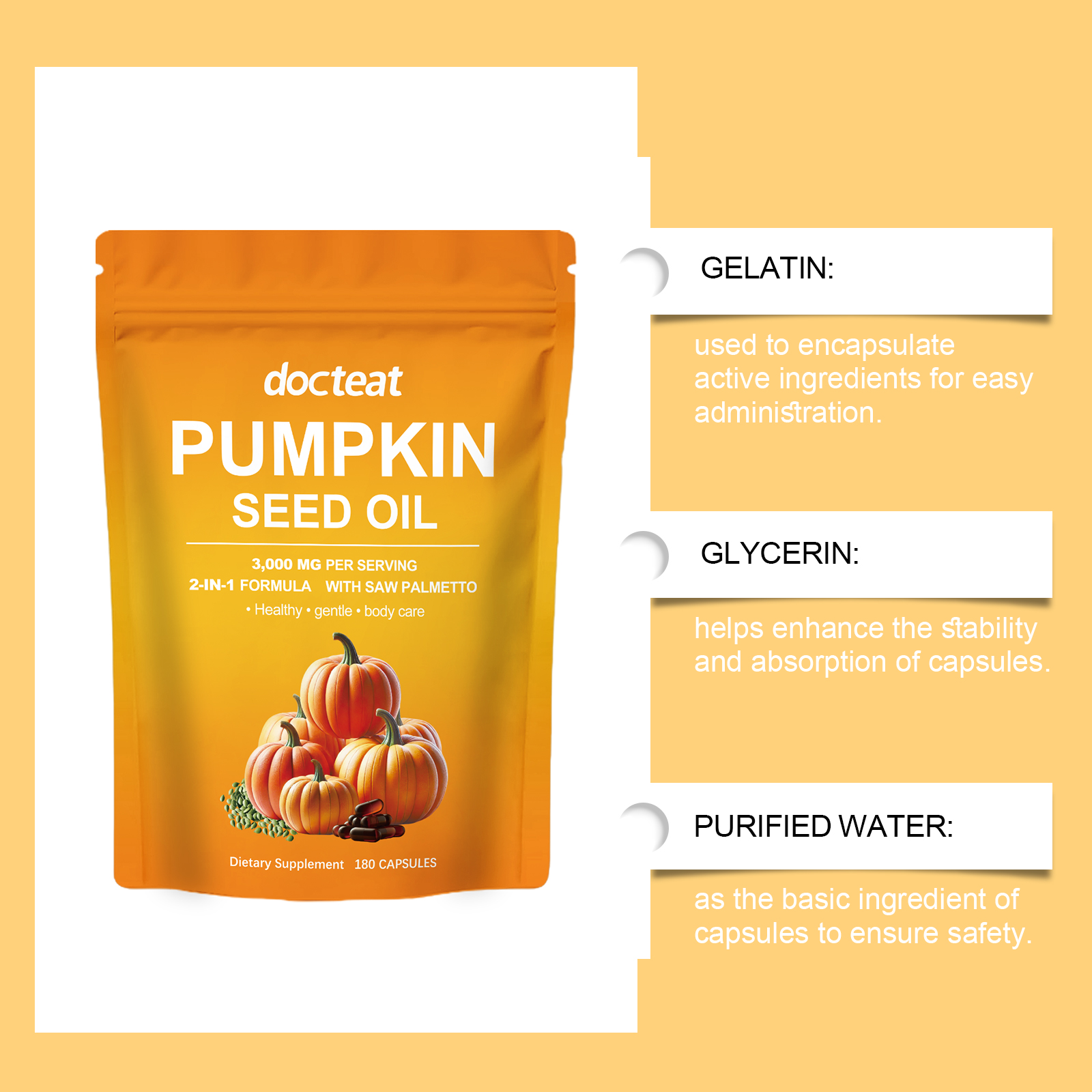 我们的南瓜籽油胶囊,由南瓜籽油、锯棕榈精心调配而成。专为前列腺、泌尿功能和其他方面提供重要支持设计。使用方法极为便捷:每天服用3粒胶囊。并且可以增强身体免疫力,保持健康。