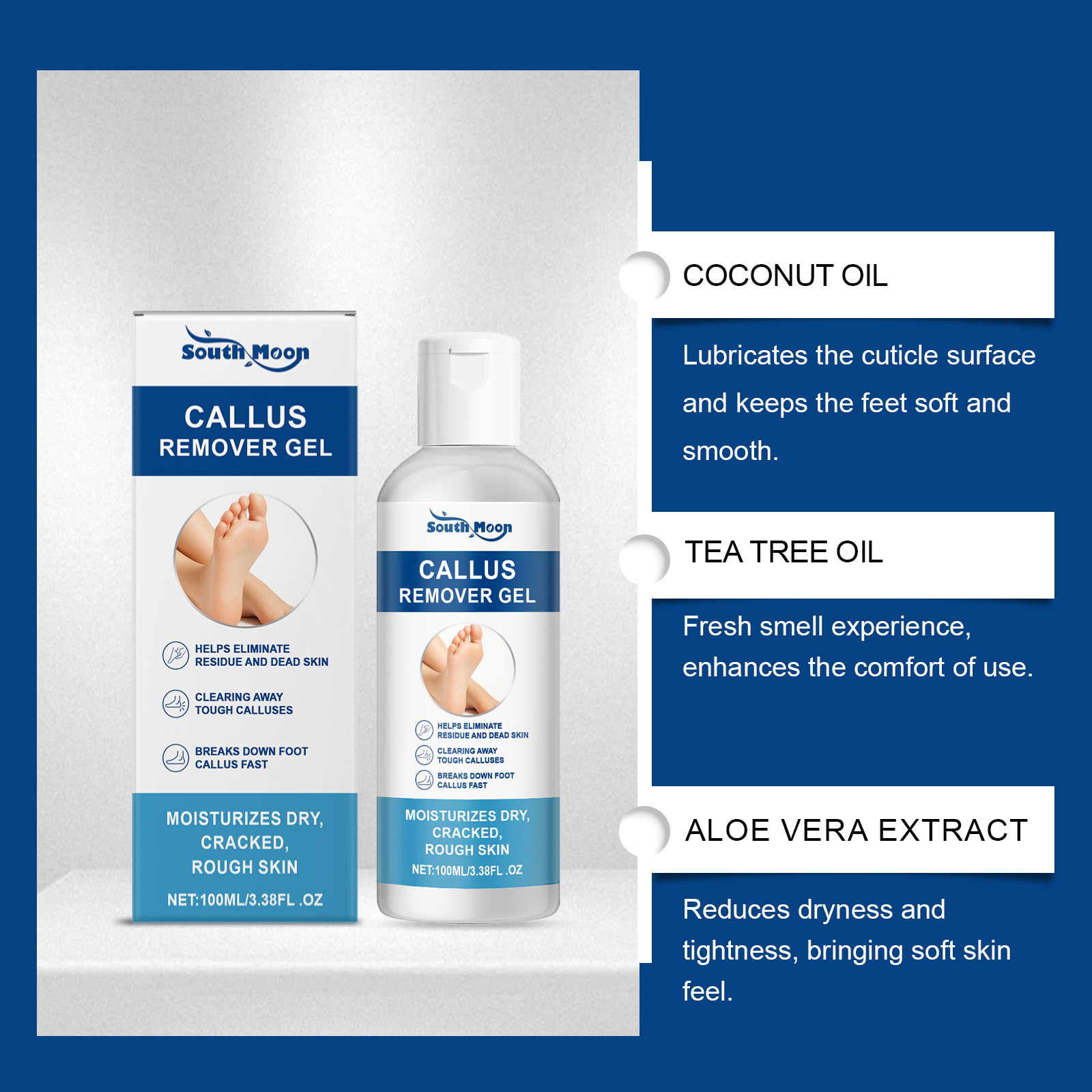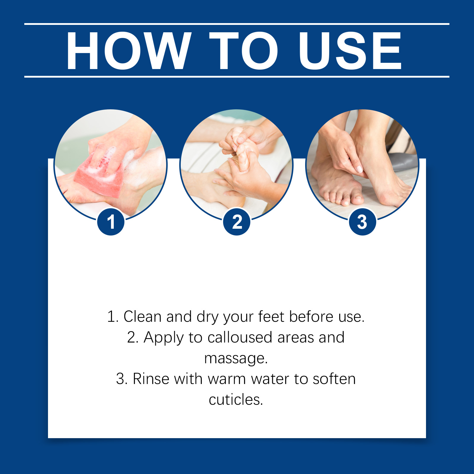 我们的足部护理凝胶,由椰子油、茶树油、芦荟提取物精心调配而成。专为软化脚部硬皮,减少老茧厚度设计。使用方法极为便捷:1.使用前请清洁并干燥您的脚。2.涂抹在有老茧的部位并按摩。3.用温水冲洗以软化指甲。并且可以深层滋润干燥区域,以改善光滑度。