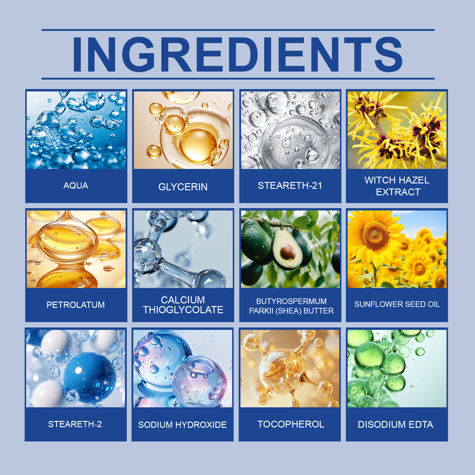 我们的2合1丝滑脱毛膏,由EDTA 二钠、生育酚(维生素E)、向日葵籽油精心调配而成。专为舒缓脱毛后的皮肤,使皮肤平静设计。使用方法极为便捷:清洁并干燥皮肤。将适量的脱毛霜均匀涂抹在需要脱毛的面部、腿部、手臂和腋下。等待5-10分钟后,用刮刀逆着毛发生长方向刮掉毛发,并清洁脱毛区域上的残留物。并且采用独特的添加成分,促进皮肤健康并增强皮肤质地。