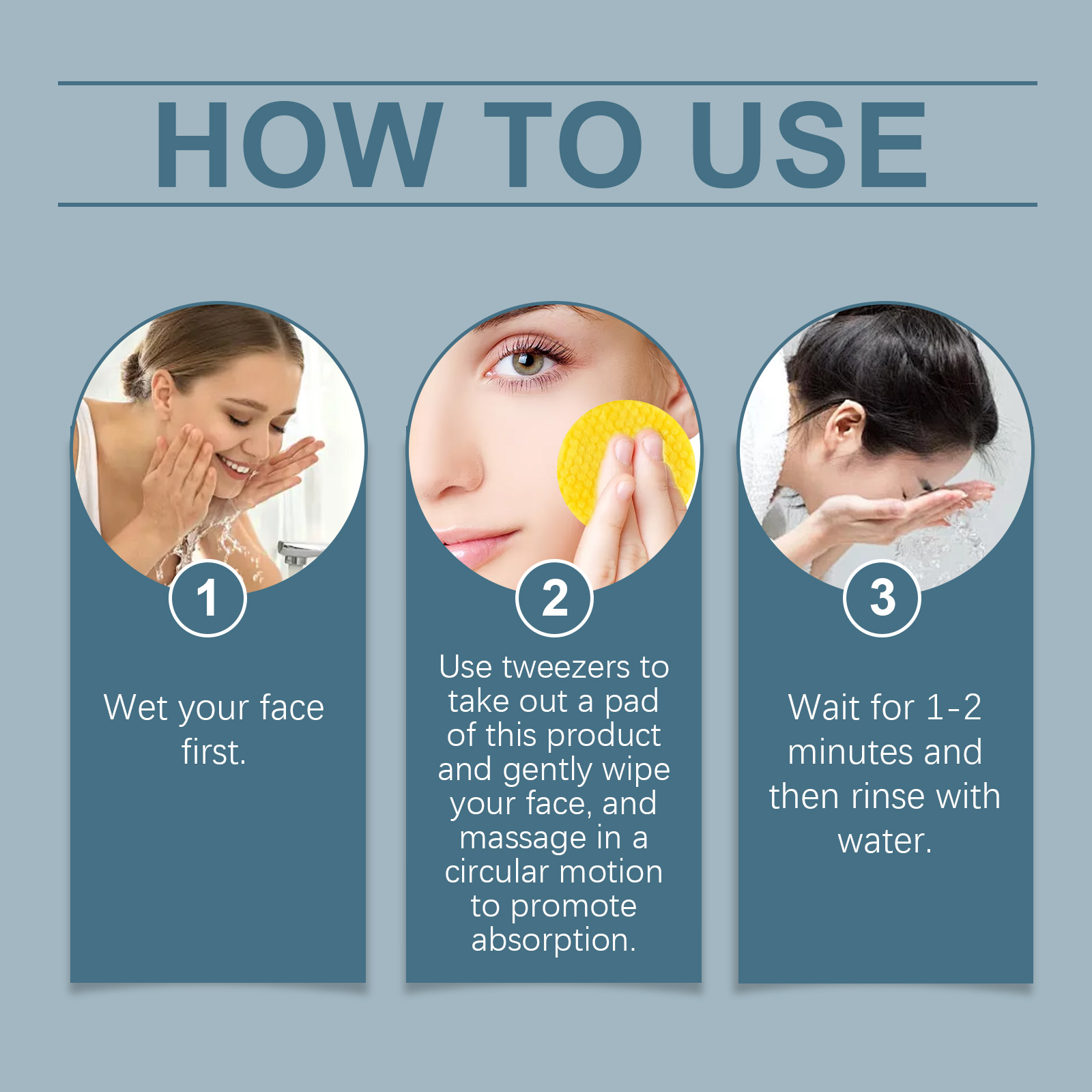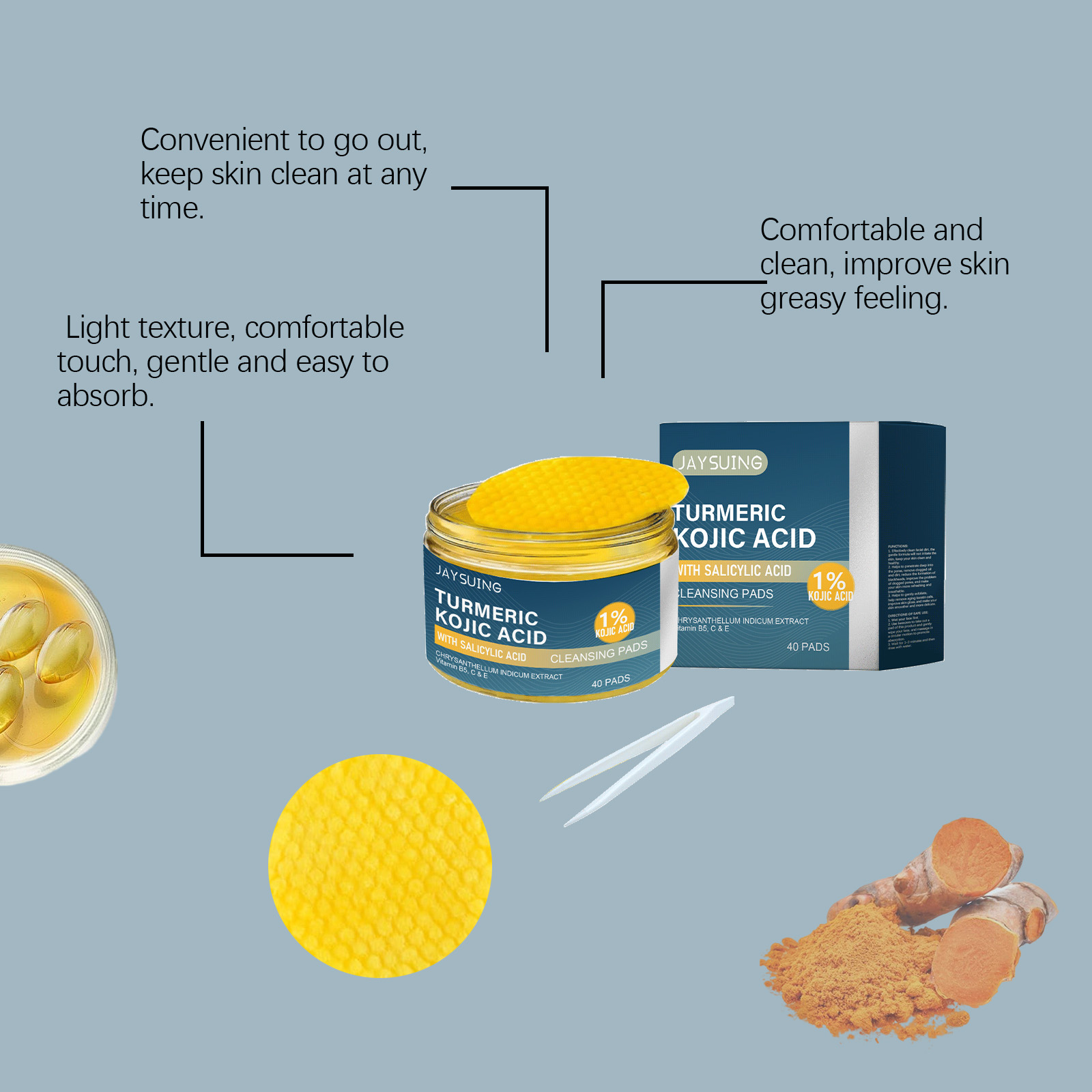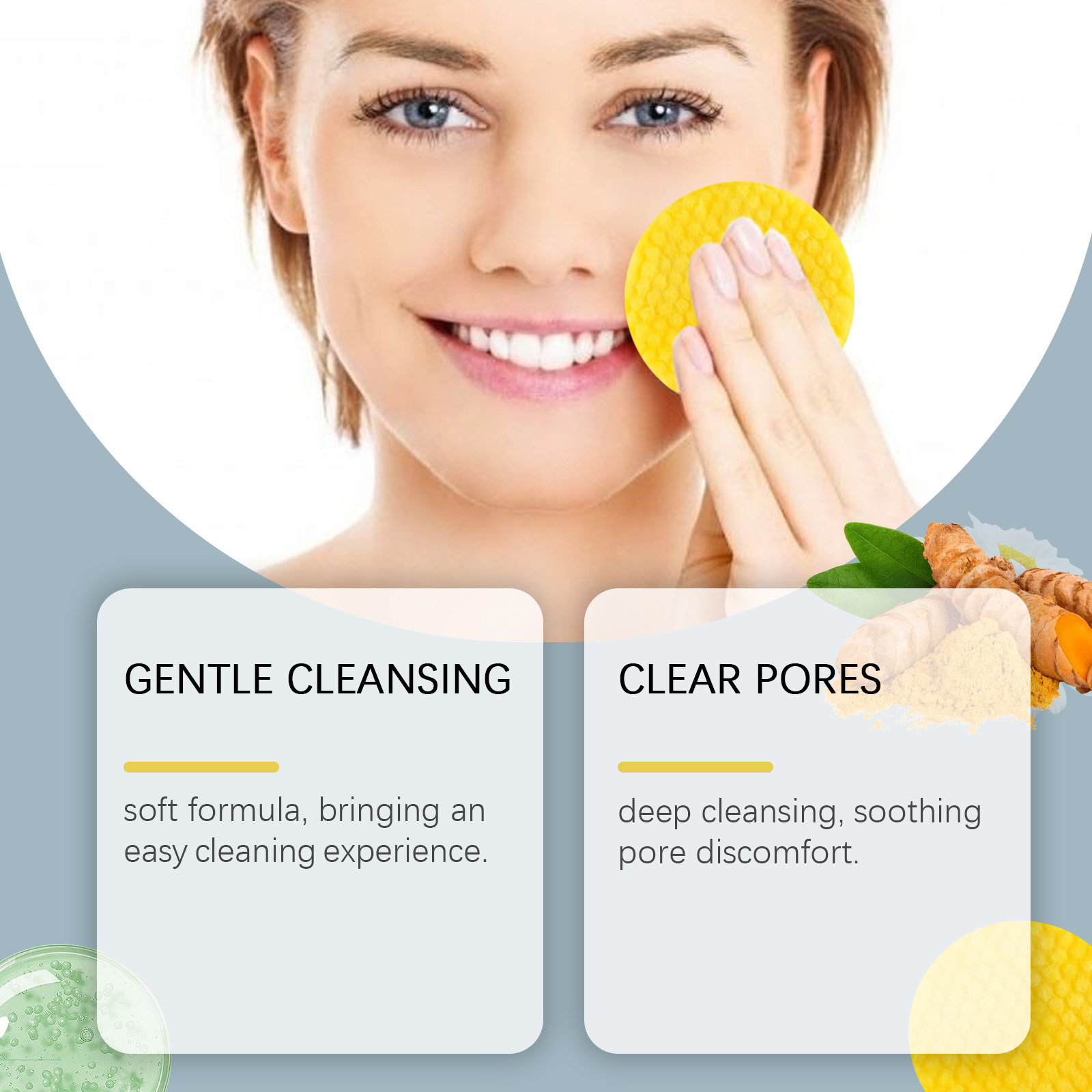 我们的姜黄曲酸洁面垫,由维生素C(抗坏血酸)、维生素E(生育酚)精心调配而成。专为深层清洁,舒缓毛孔不适设计。使用方法极为便捷:先润湿你的脸。用镊子取出一片本产品,轻轻擦拭脸部,然后以打圈方式按摩,以促进吸收,等待1-2分钟,然后用清水冲洗。并且可以有效清洁,保持皮肤清洁光滑。=