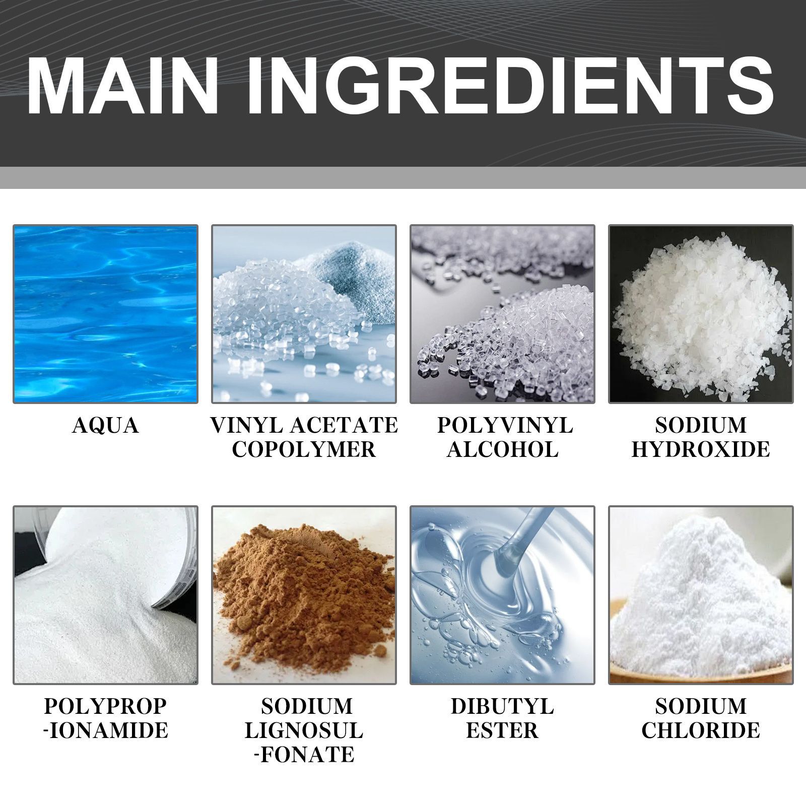 我们的补漏防水胶套装含有乙酸乙烯酯共聚物、聚乙烯醇。它可以在高温下不变形、不熔化,在低温下不开裂,具有良好的耐候性,可解决屋顶、外墙、窗台、浴室、地下室、排水沟、护墙等漏水修补问题。它的使用方法很简单:对裂缝的内外进行清洁和干燥,取适量胶水均匀涂抹在裂缝处,约12小时后,第二次均匀涂抹。并且可以防漏。