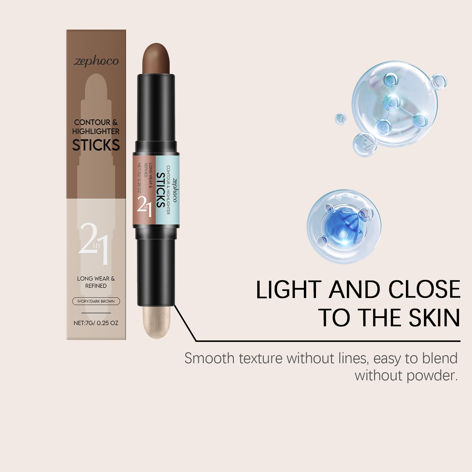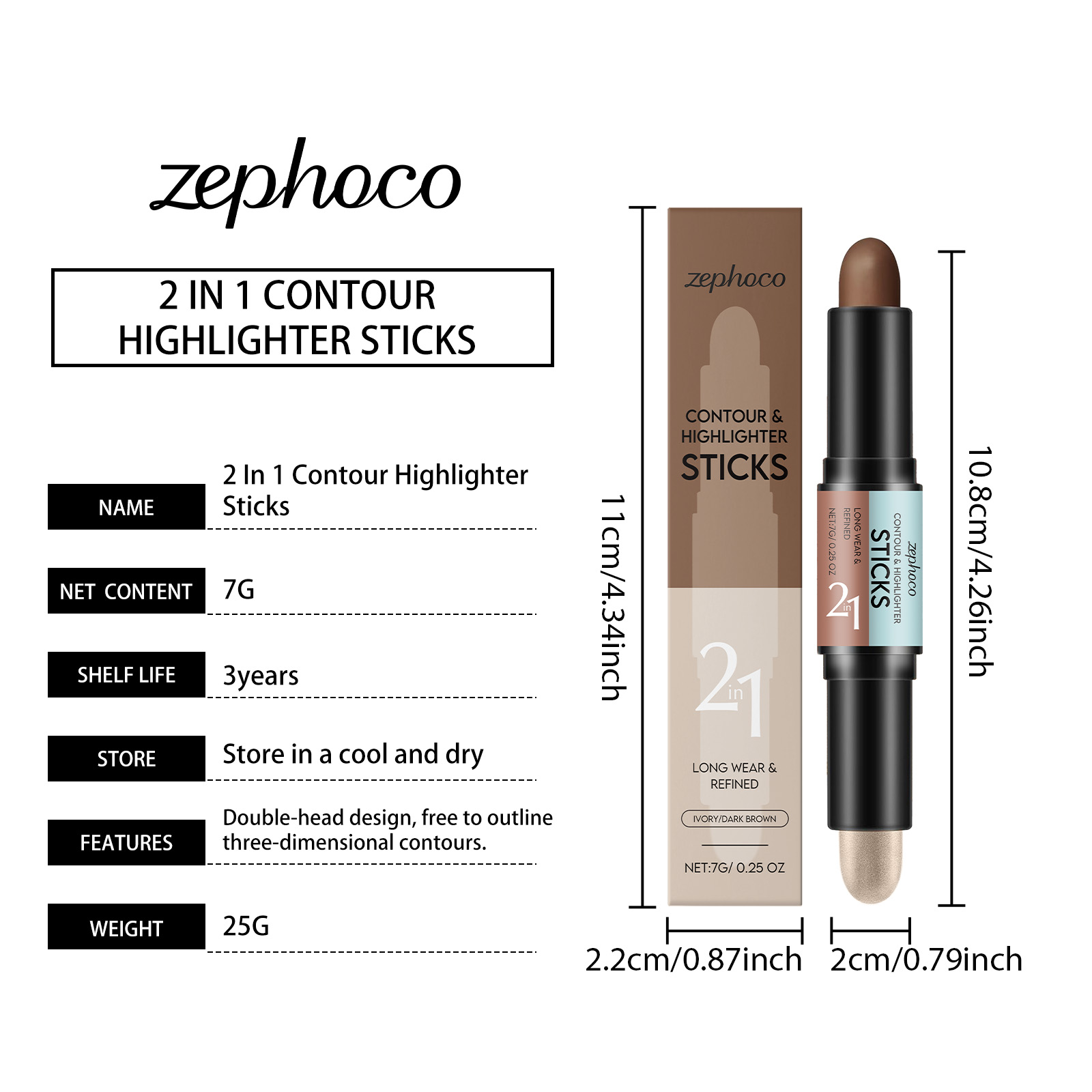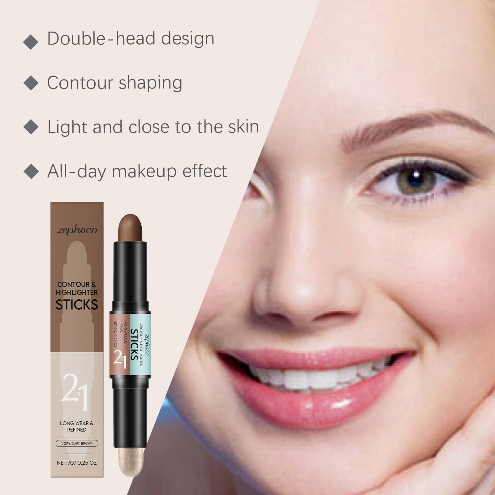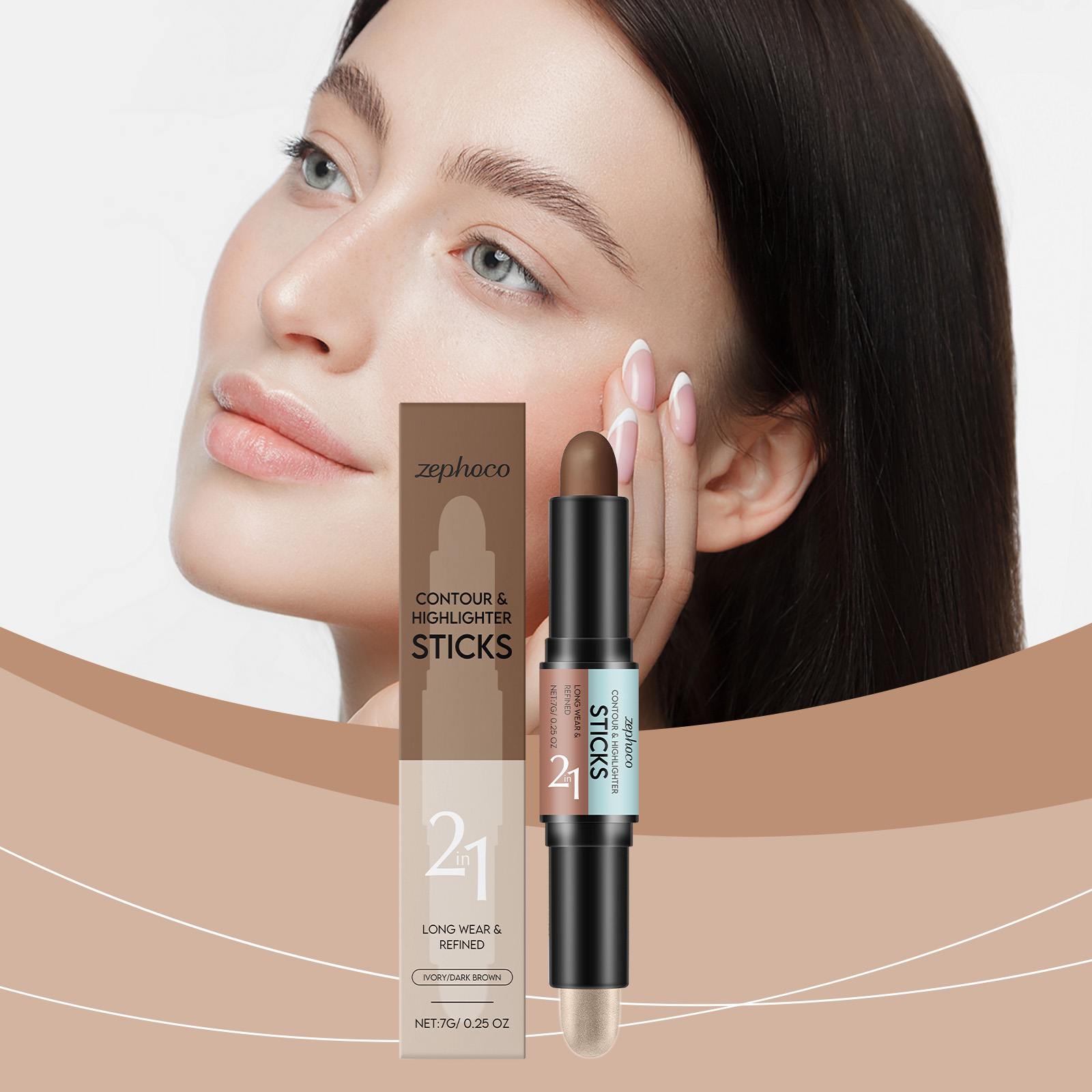 2合1轮廓和高光棒(象牙白+深咖色)