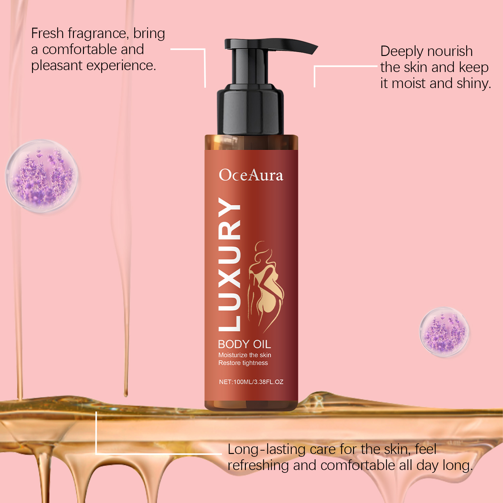 我们的保湿身体油,由玫瑰果油、咖啡籽油、薰衣草油精心调配而成。专为长时间保持皮肤湿润,避免干燥设计。使用方法极为便捷:清洁并干燥你的皮肤。取出适量的该产品,均匀涂抹在身体皮肤上。并且可以改善皮肤弹性并带来紧致感。