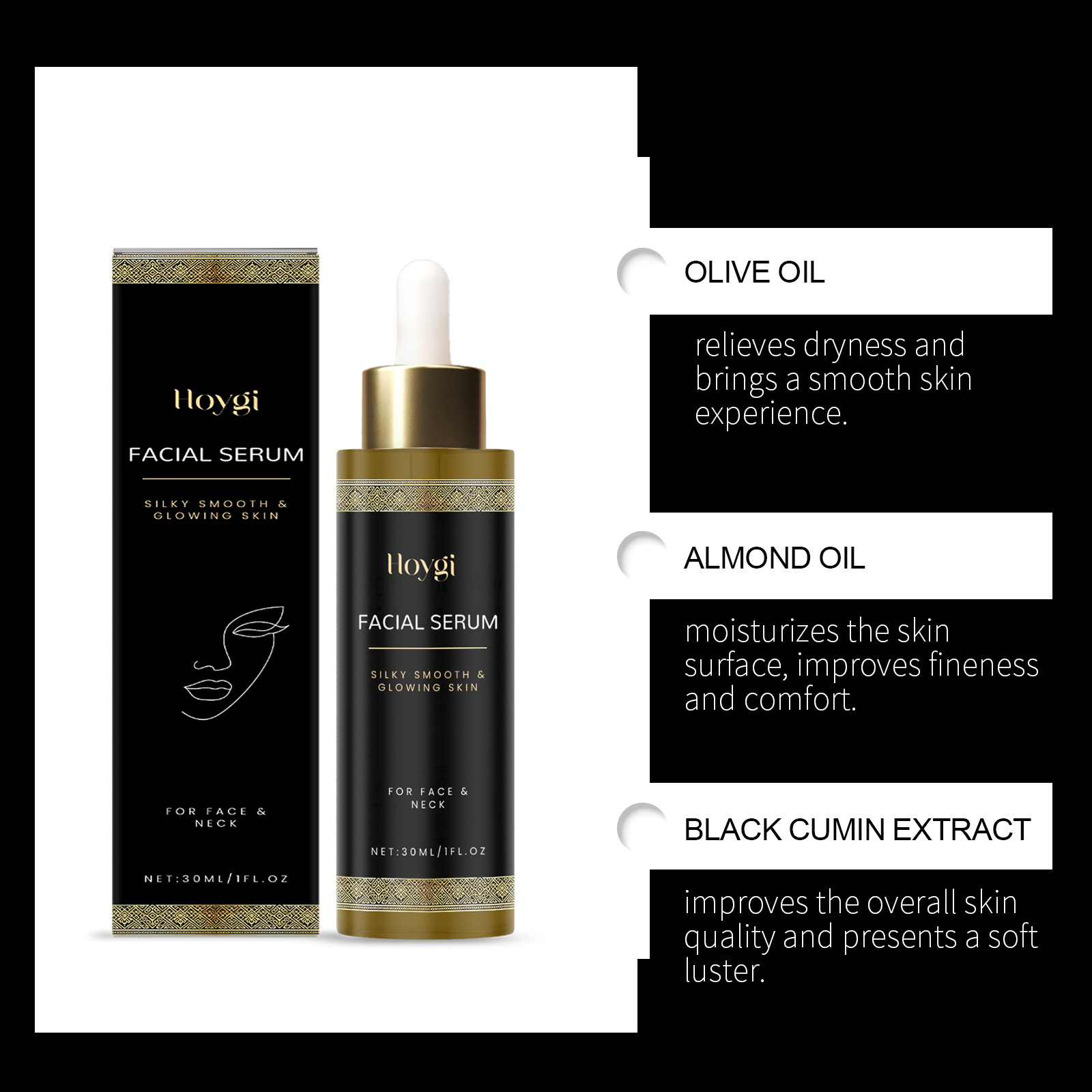 我们的面部护理精华,由乳香、维生素E、EDTA 二钠精心调配而成。专为面部保湿和护理,使皮肤更加透明和焕发光彩设计。使用方法极为便捷:清洁面部皮肤并保持干燥。取出适量本品均匀涂抹于面部和颈部。轻轻按摩,以促进吸收。持续使用可以使皮肤光滑。