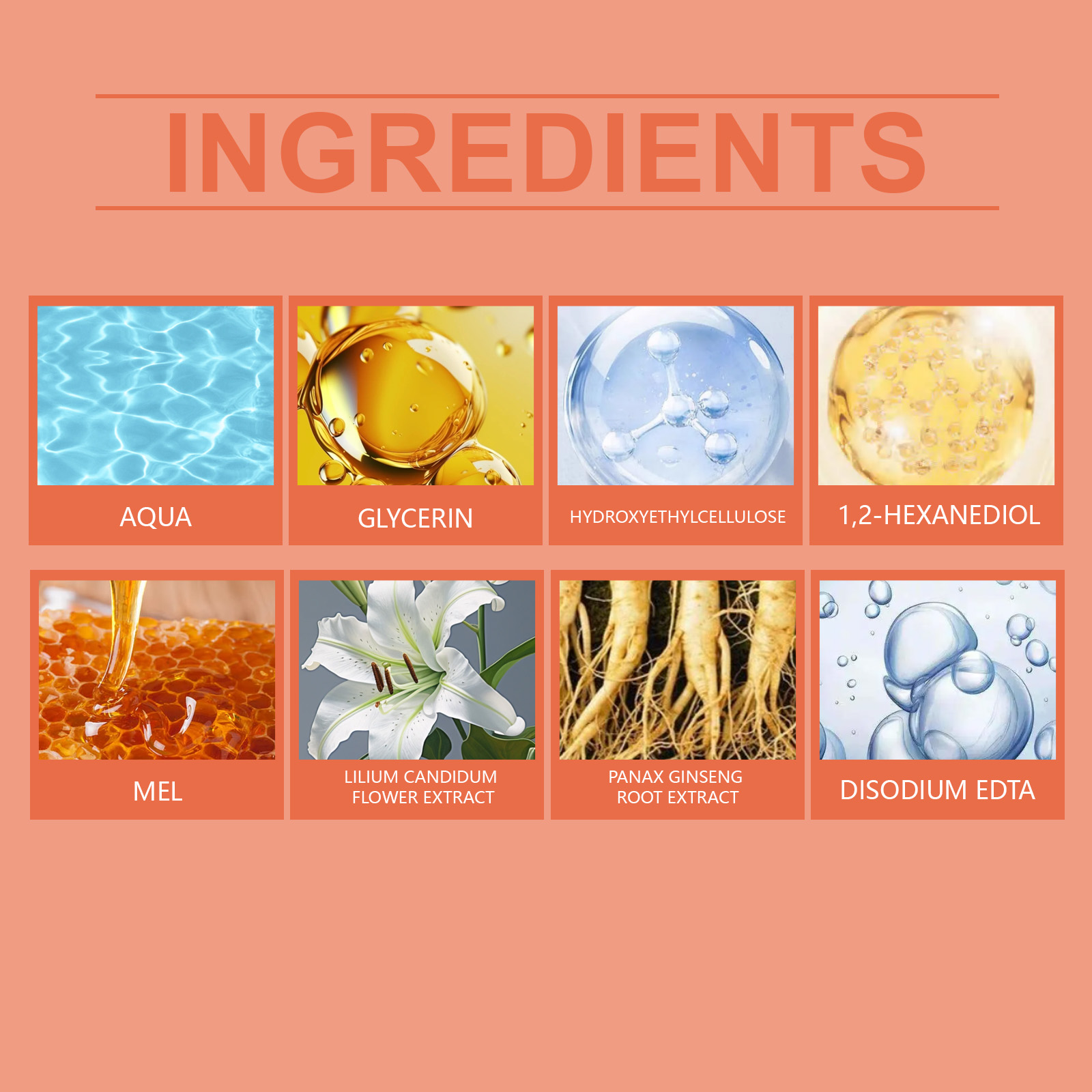 我们的蜂蜜面部护理精华,由甘油、羟乙基纤维素精心调配而成。专为展现光滑闪亮的肌肤,持续使用使皮肤感觉更加清新和明亮设计。使用方法极为便捷:清洁皮肤并保持干燥,取适量本品均匀涂抹于面部,轻轻按摩以促进吸收。并且可以显示自然和均匀的半透明状态,保持饱满、坚实、水润的光泽。