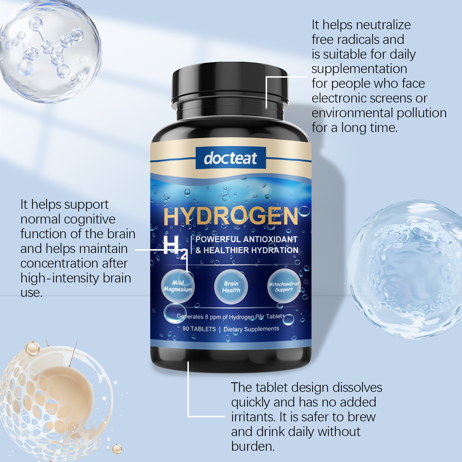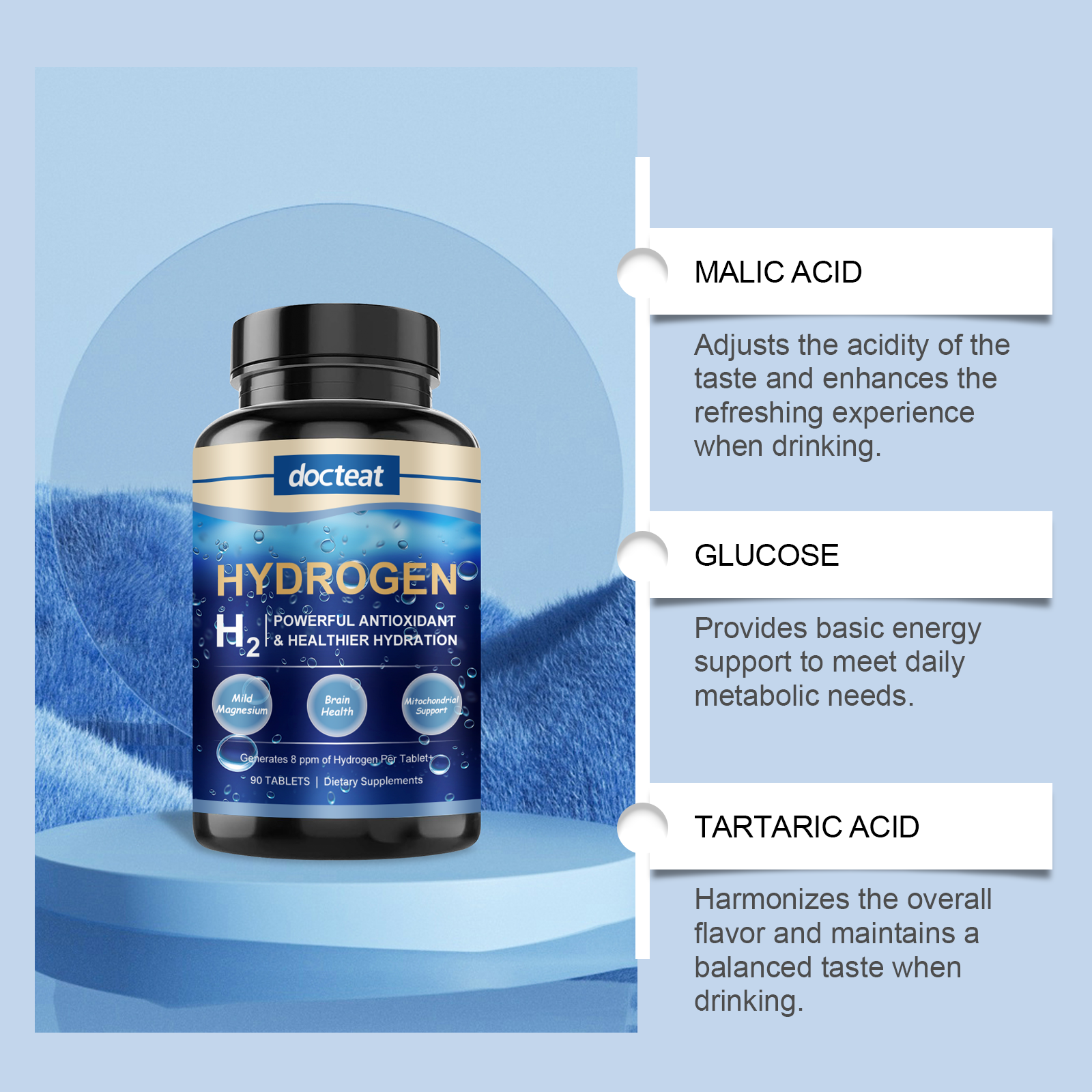 我们的氢水片,由镁、苹果酸、葡萄糖精心调配而成。专为调整口感的酸度,提升饮用时的清爽体验设计。使用方法极为便捷:每天服用2片,浸泡在水中,不要直接吞咽。并且可以随时随地使用,方便,它可以与各种饮料结合使用,增加日常变化的乐趣。