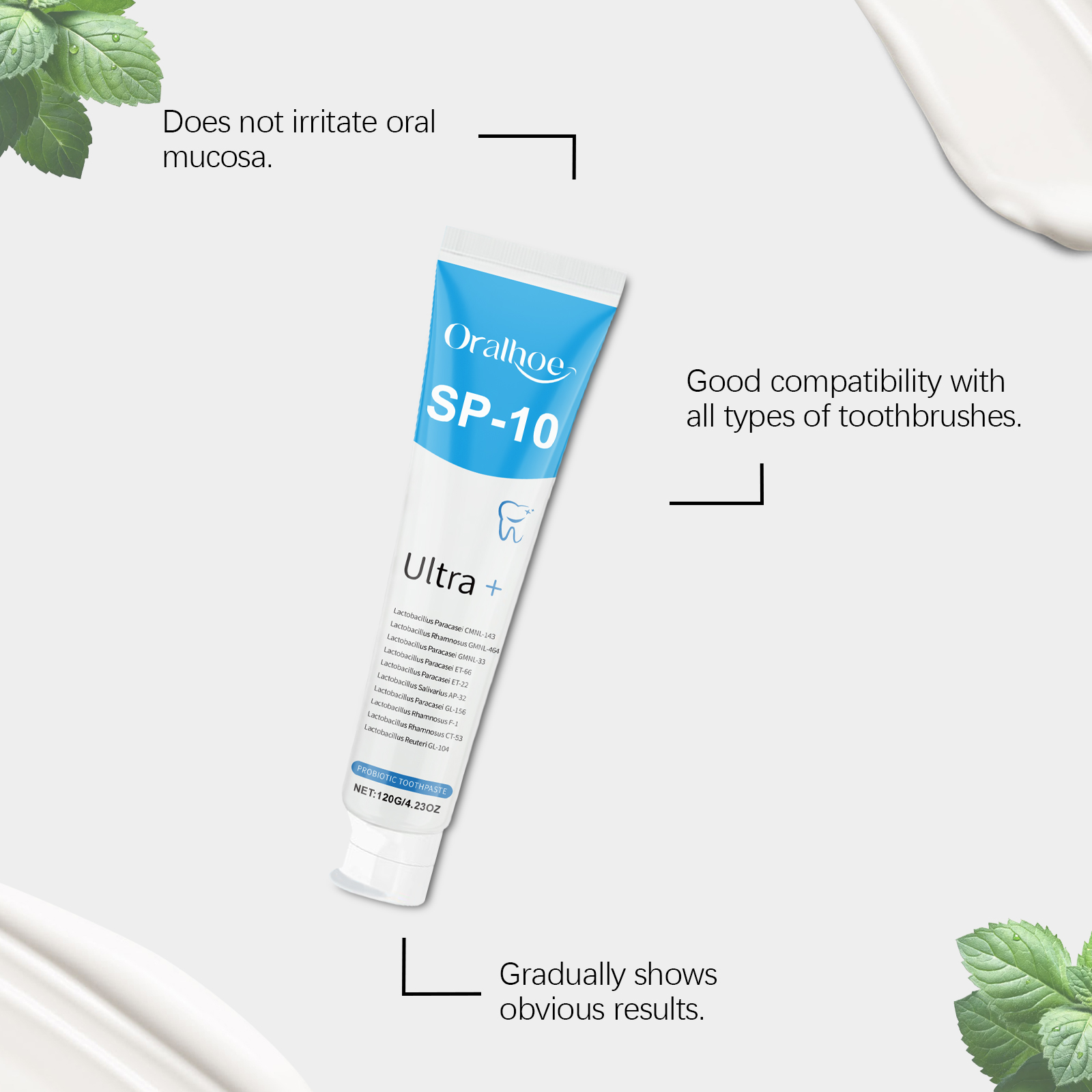 我们的护理牙膏,由山梨酸钾、乳酸菌、薄荷提取物精心调配而成。专为逐渐提亮牙齿的颜色设计。使用方法极为便捷:将适量的牙膏挤到牙刷上,刷牙2-3分钟,然后用清水漱口。每天早晚各使用一次,以获得更好的效果。并且可以长时间保持口腔清新。
