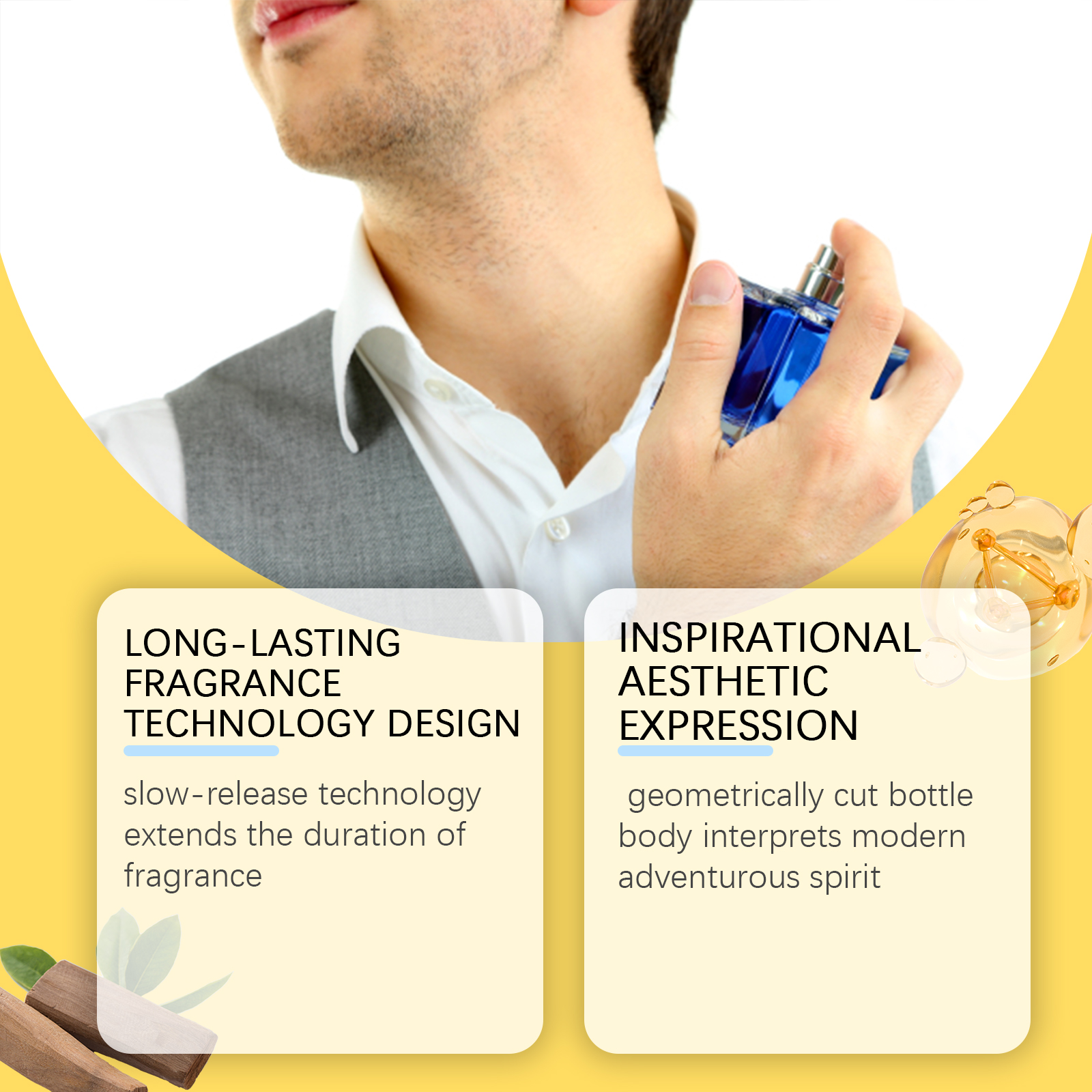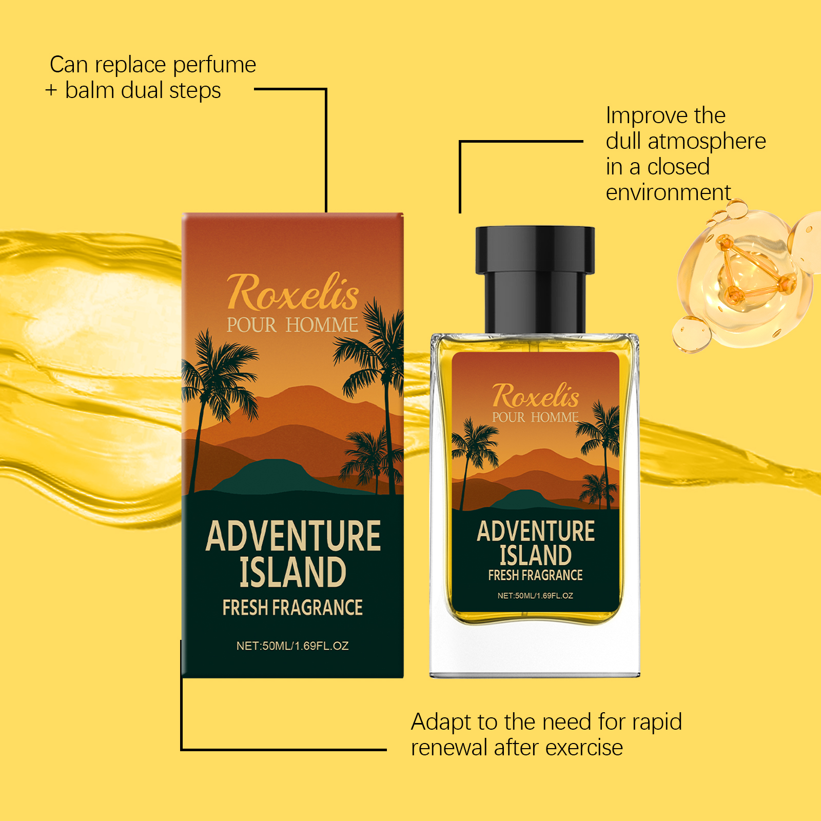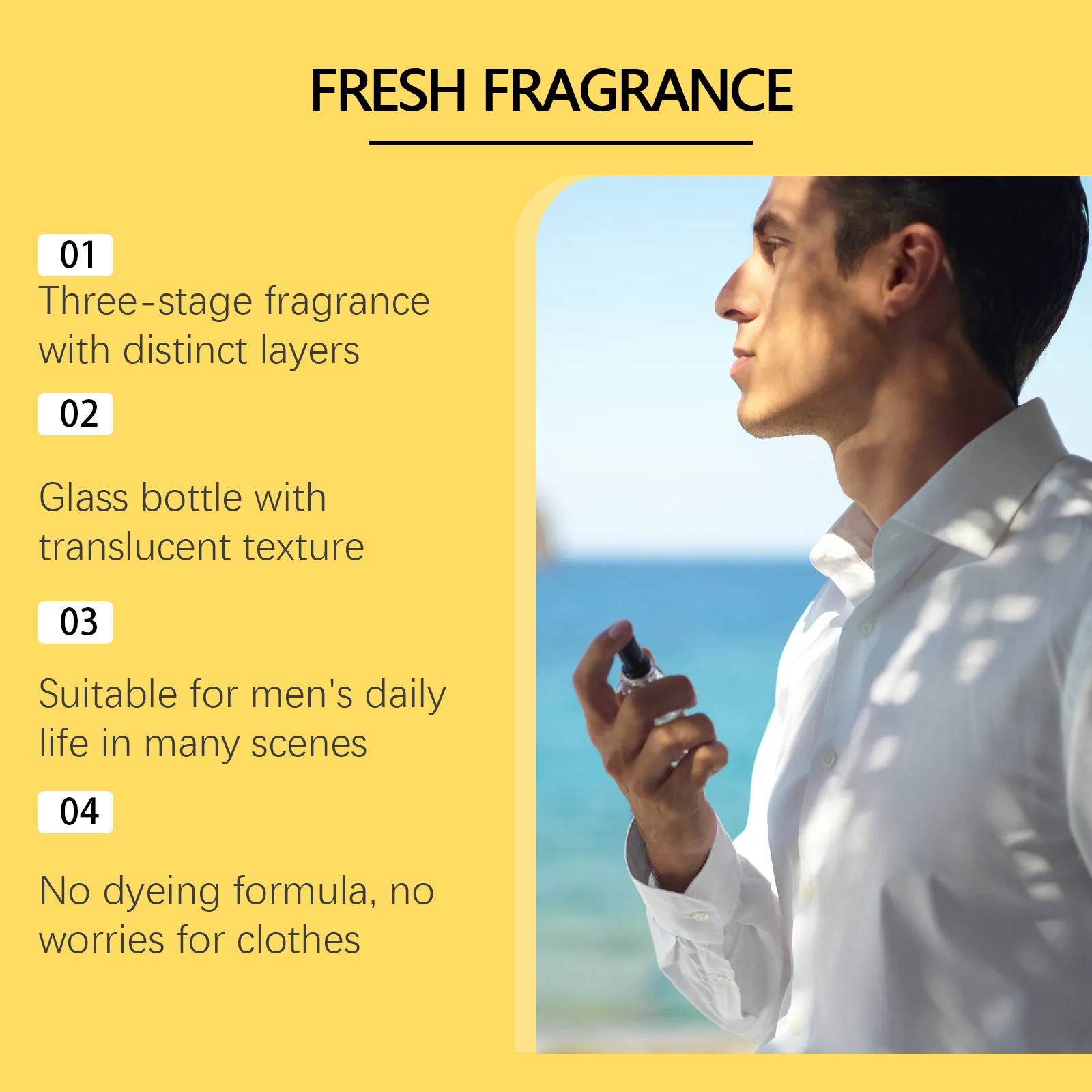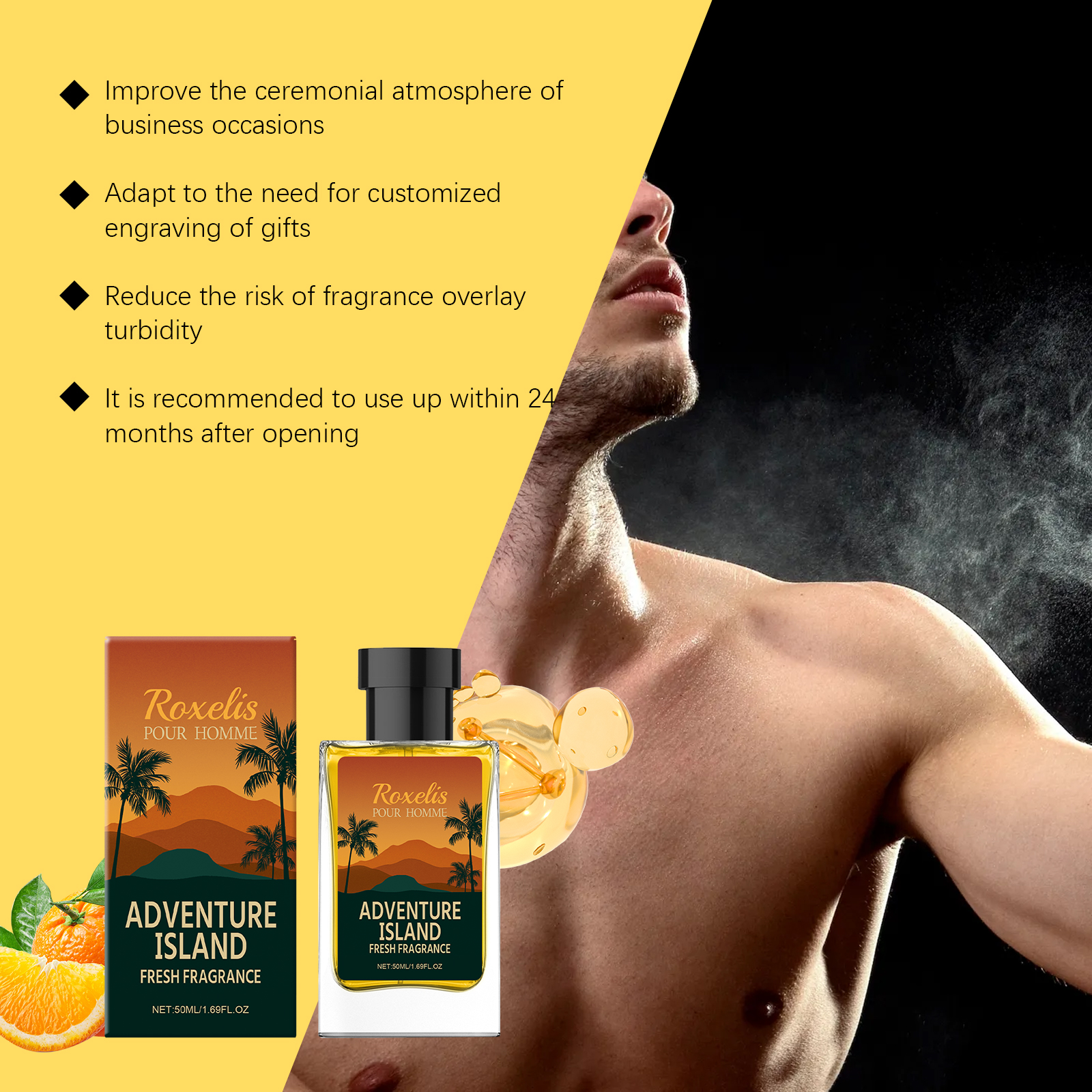 我们的岛屿清新男士香氛,由甘油、PEG-40氢化蓖麻油精心调配而成。专为改善在封闭的环境中沉闷的氛围设计。使用方法极为便捷:距离皮肤15厘米处喷雾,重点在脉搏区域。在距离衣物20厘米处喷洒,根据需要重新喷洒以延长香味。并且它的缓释技术延长了香味的持续时间,几何切割的瓶身诠释了现代冒险精神。