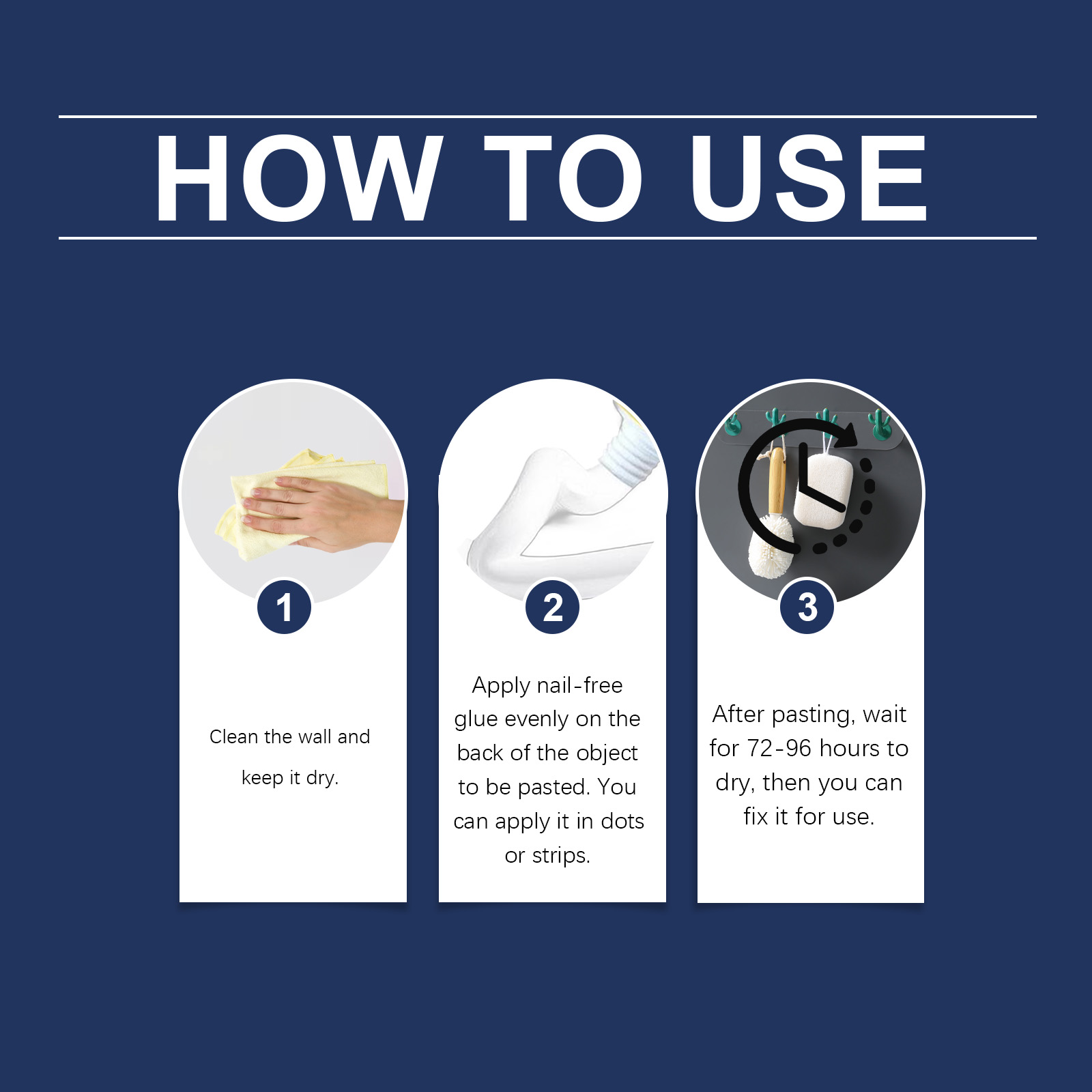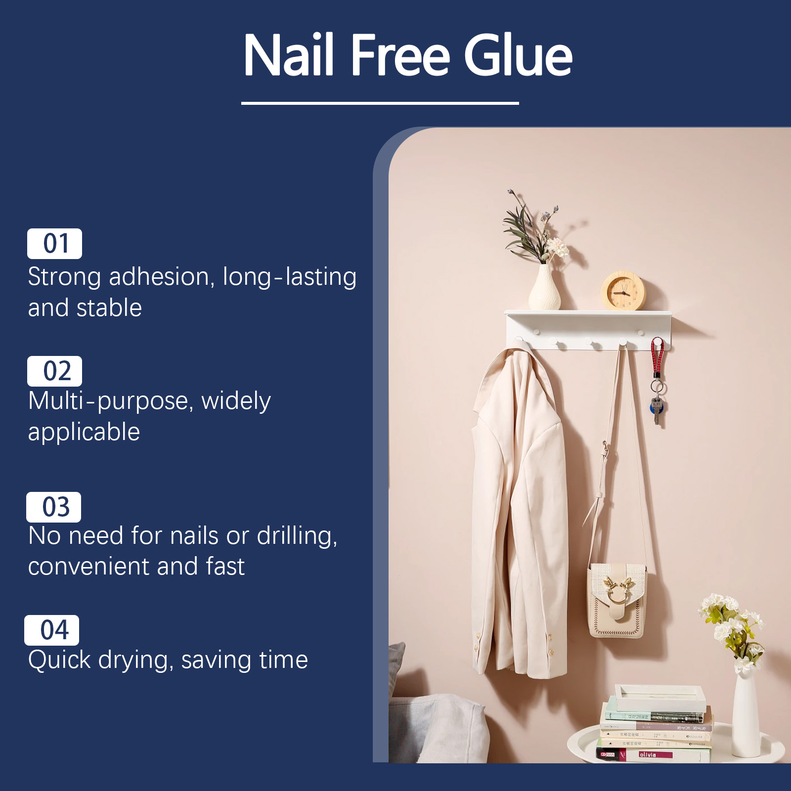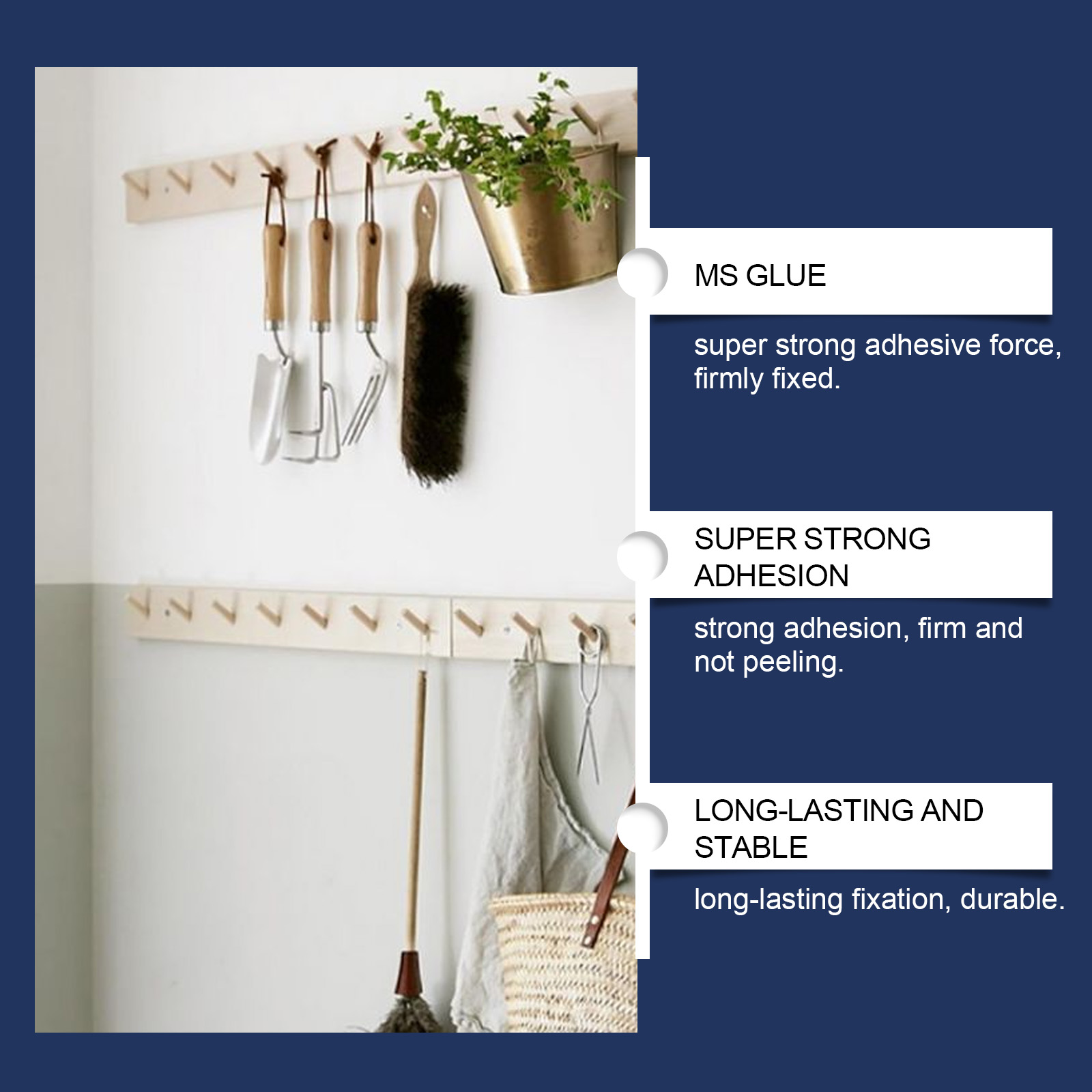 我们的免钉胶,由MS胶精心调配而成。专为在各种天气条件下保持强度和完整性,适合室内外使用设计。使用方法极为便捷:1.清洁墙面,保持干燥。2.在需要粘贴的物品背面均匀涂抹免钉胶,可以采用点状或条状的方式涂抹。3.贴上后,等待72-96小时干燥,即可固定使用。并且粘性强,持久稳定牢固固定设备装饰,不会脱落。它是特殊配方确保快速固化,允许即时定位和调整材料,以确保精确定位。