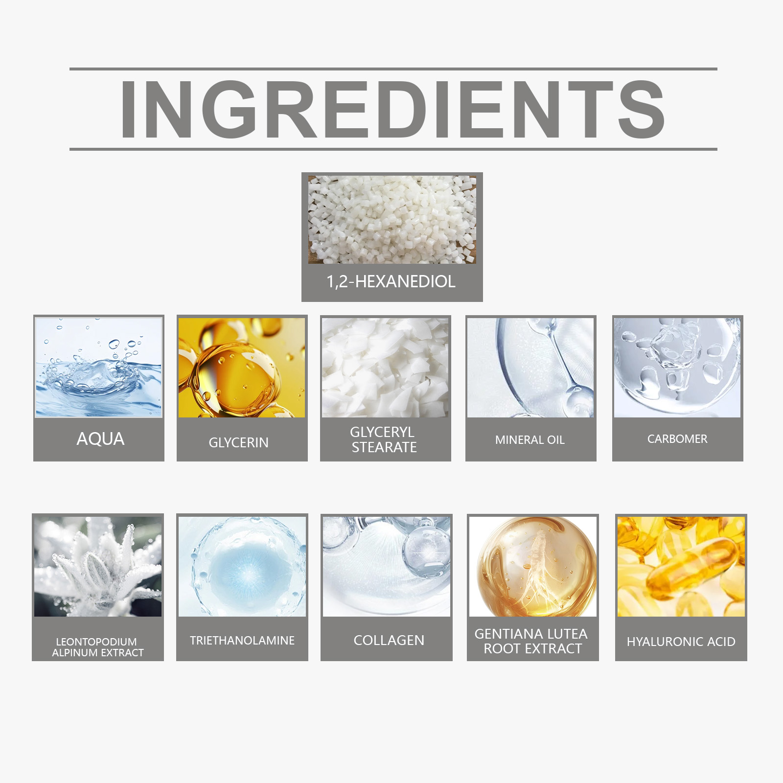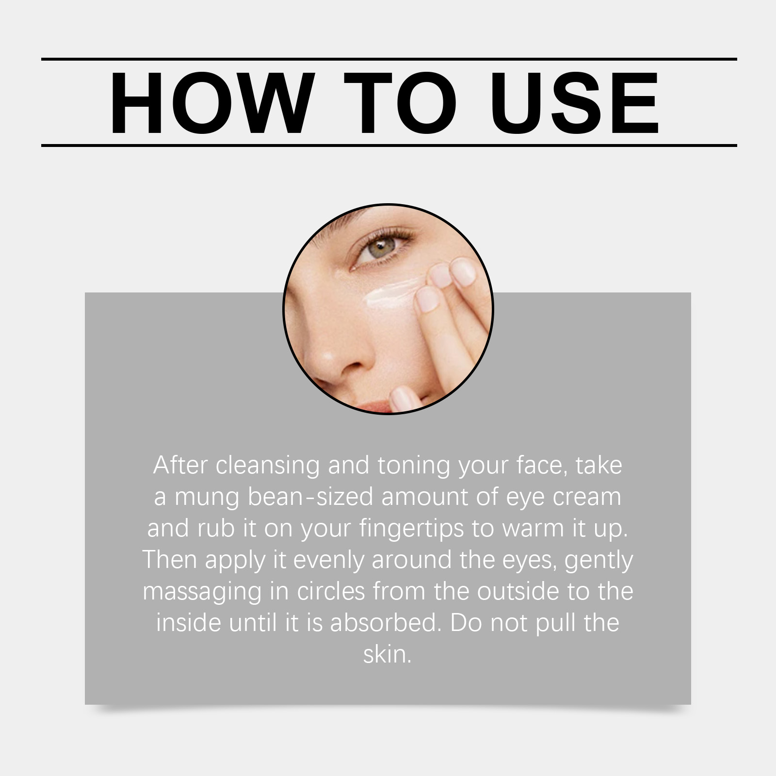 我们的眼霜,由雪绒花提取物、龙胆根提取物、透明质酸精心调配而成。专为眼部周围的皮肤设计,提供深层护理并增强光泽。使用方法极为便捷:在清洁和调理面部后,取绿豆大小的眼霜,用指尖将其温热。然后均匀涂抹在眼周,从外向内轻轻按摩,直到完全吸收。不要拉扯皮肤。并且可以易于使用,使您的护肤过程变得简单愉快。