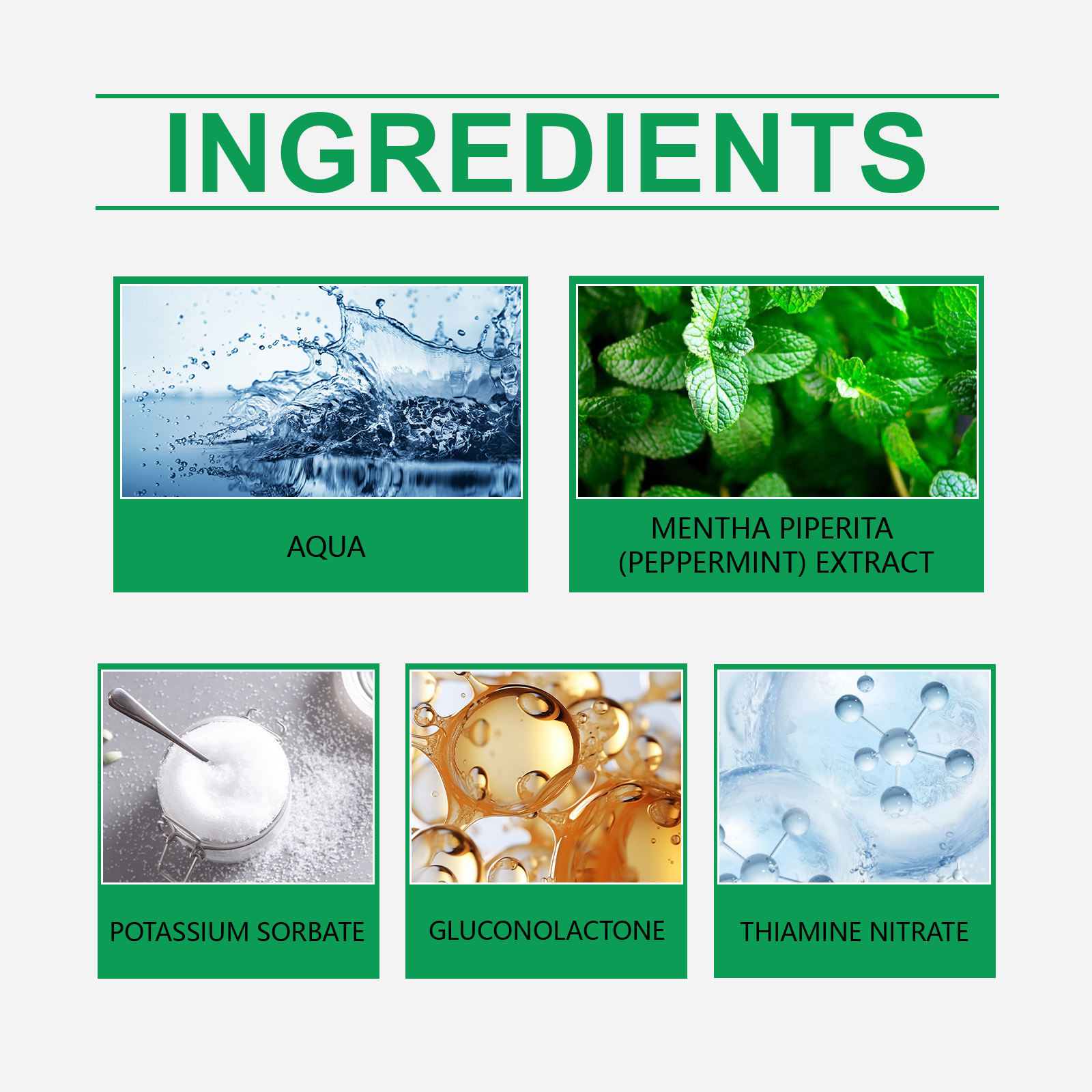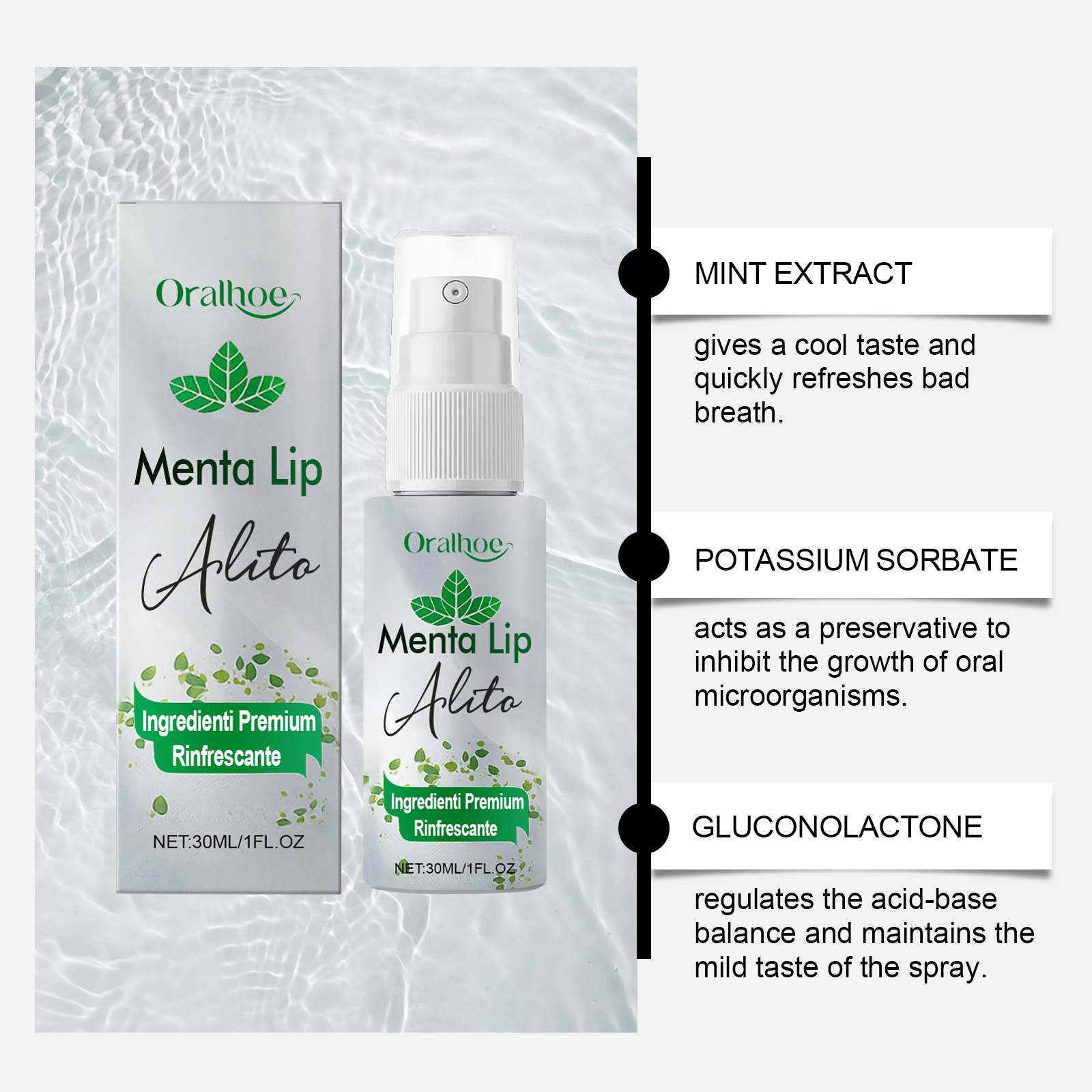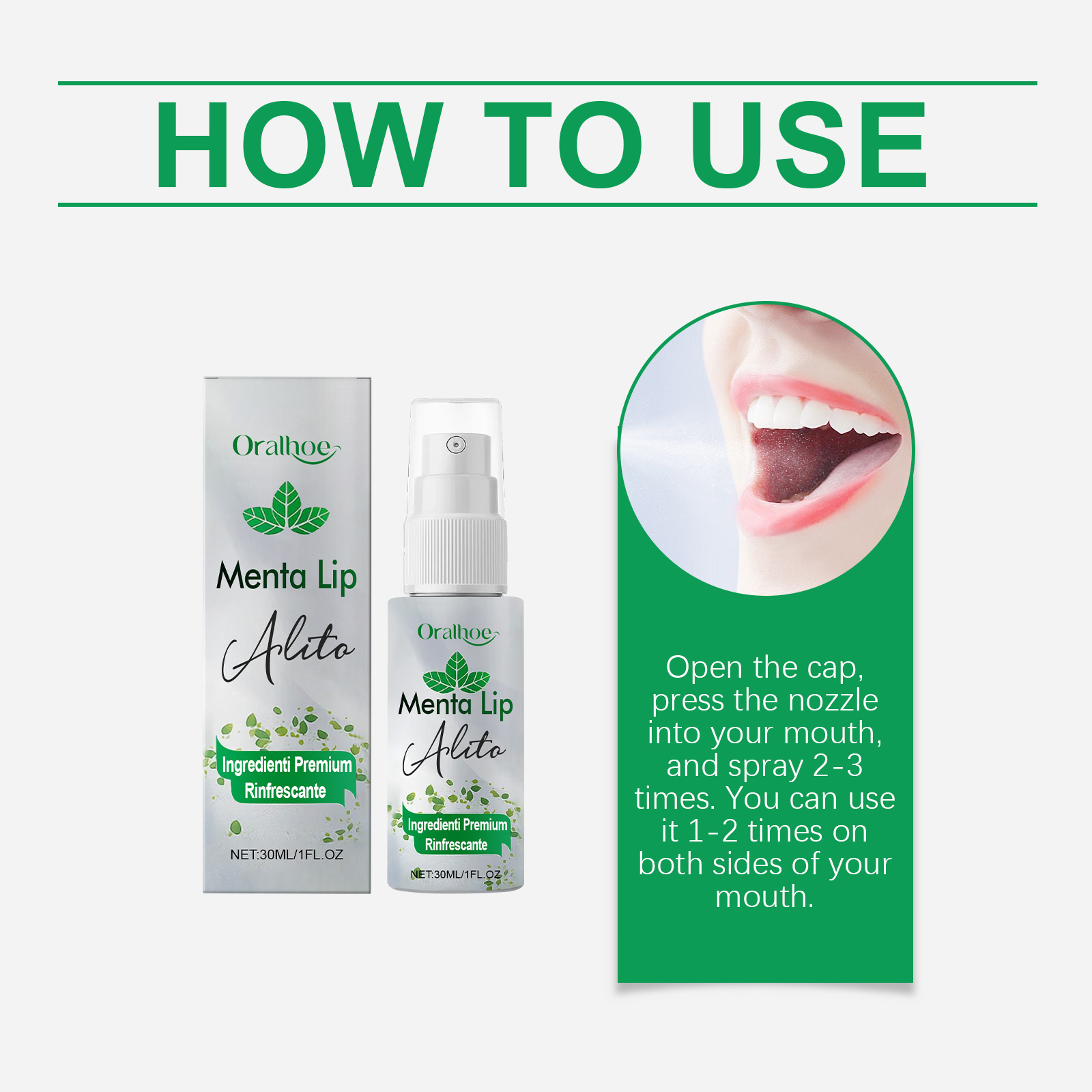 我们的口腔清新喷雾,由葡糖酸内酯、硝酸硫胺素精心调配而成。专为快速去除口臭设计。使用方法极为便捷:打开盖子,将喷嘴对准嘴中,喷2-3次。您可以在嘴的两侧各使用1-2次。并且可以全天保持愉悦的呼吸。