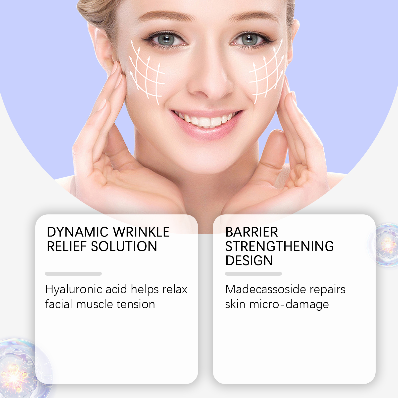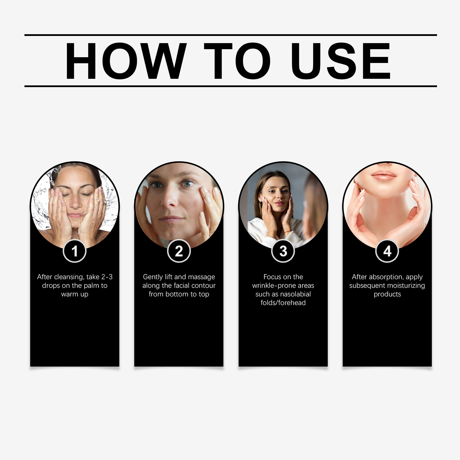 我们的面部精华液,由甘油、羟乙基纤维素精心调配而成。专为放松面部肌肉紧张,修复皮肤微损伤设计。使用方法极为便捷:清洁后,取2-3滴在手掌上加热,轻轻提拉并按摩面部轮廓,从下往上,重点针对易产生皱纹的区域,如鼻唇沟和额头。吸收后,使用后续保湿产品。并且它含有泛醇和五倍透明质酸,可以构建保湿支持。