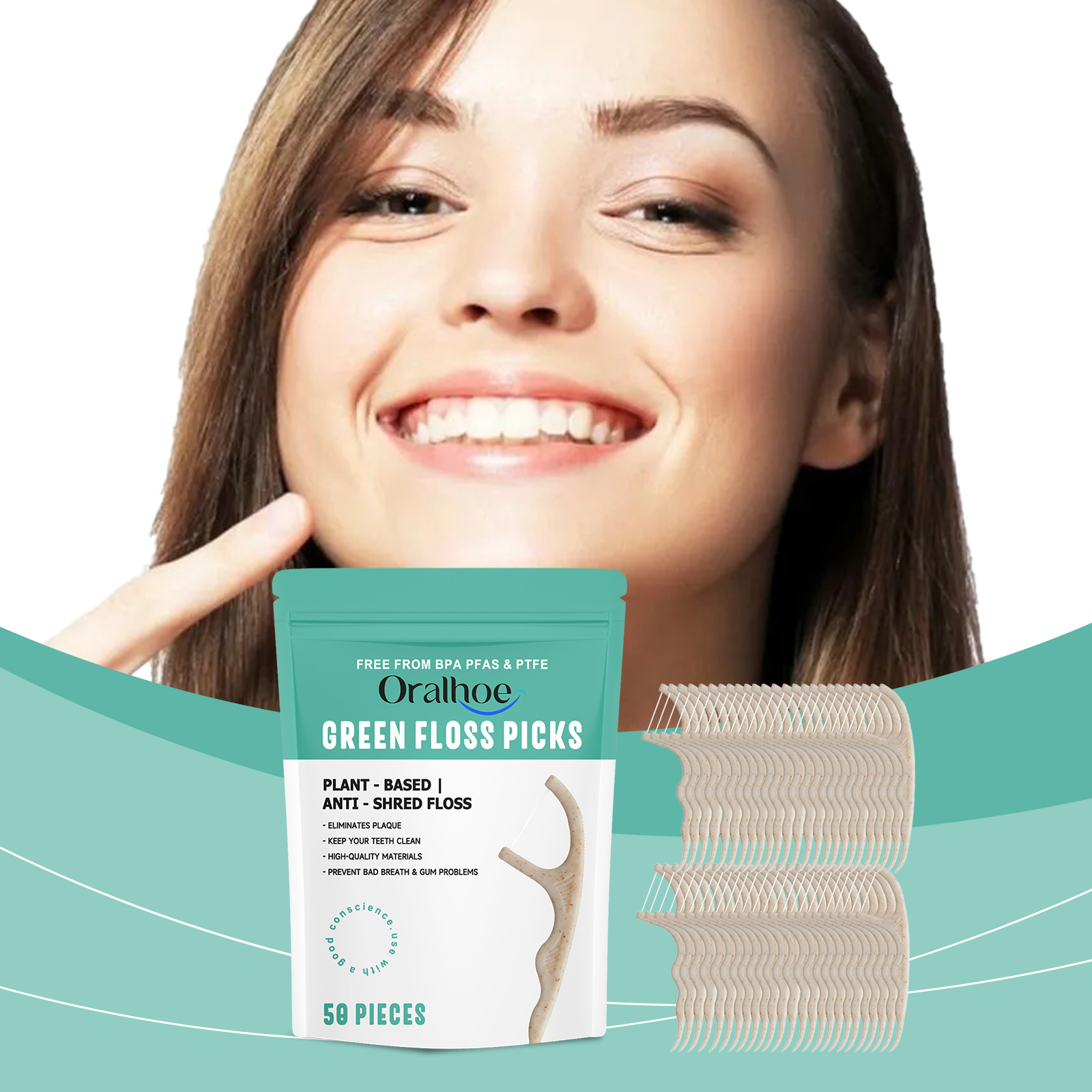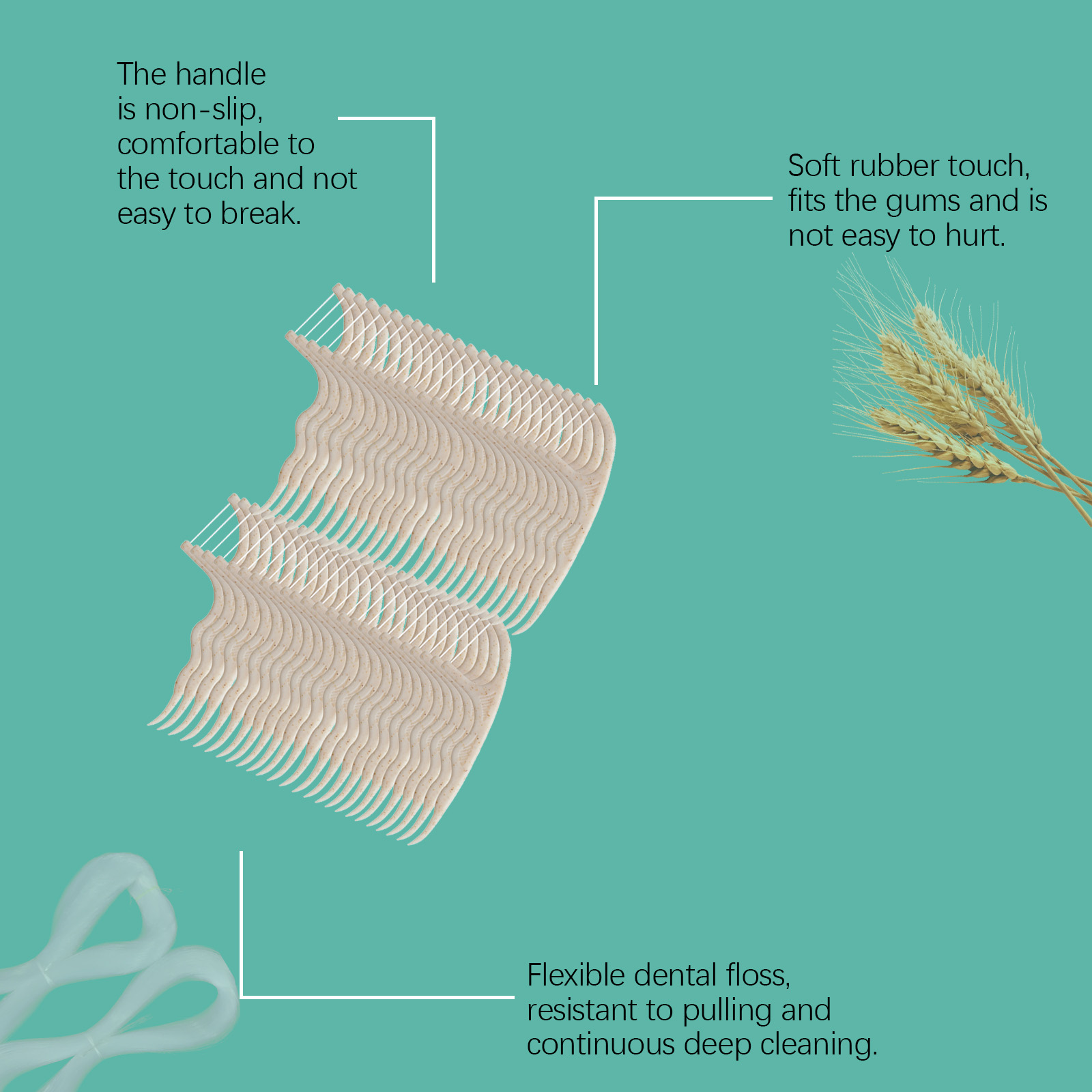 我们的清洁牙线棒,由小麦秸秆、高强线精心调配而成。专为保护牙龈设计。使用方法极为便捷:轻轻地将牙线滑进牙缝,避免用力过猛。用牙线擦拭牙齿侧面,轻轻上下移动,清除牙菌斑和碎屑。每颗牙齿重复以上步骤,确保彻底清洁。并且可以有效去除牙菌斑,并防止牙菌斑积累。