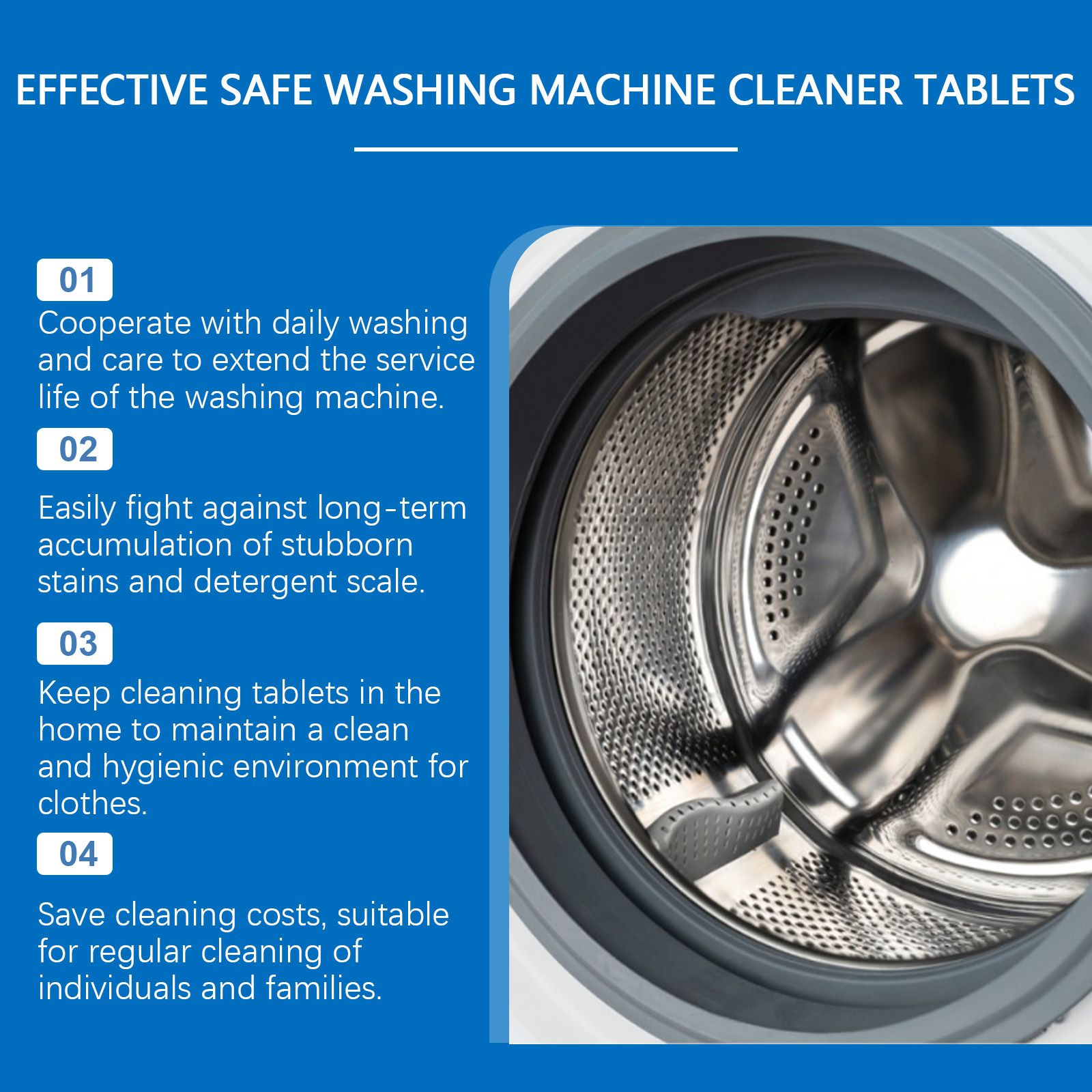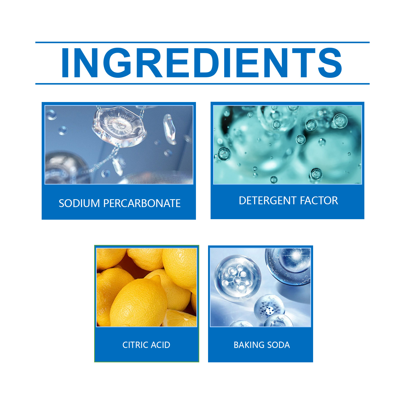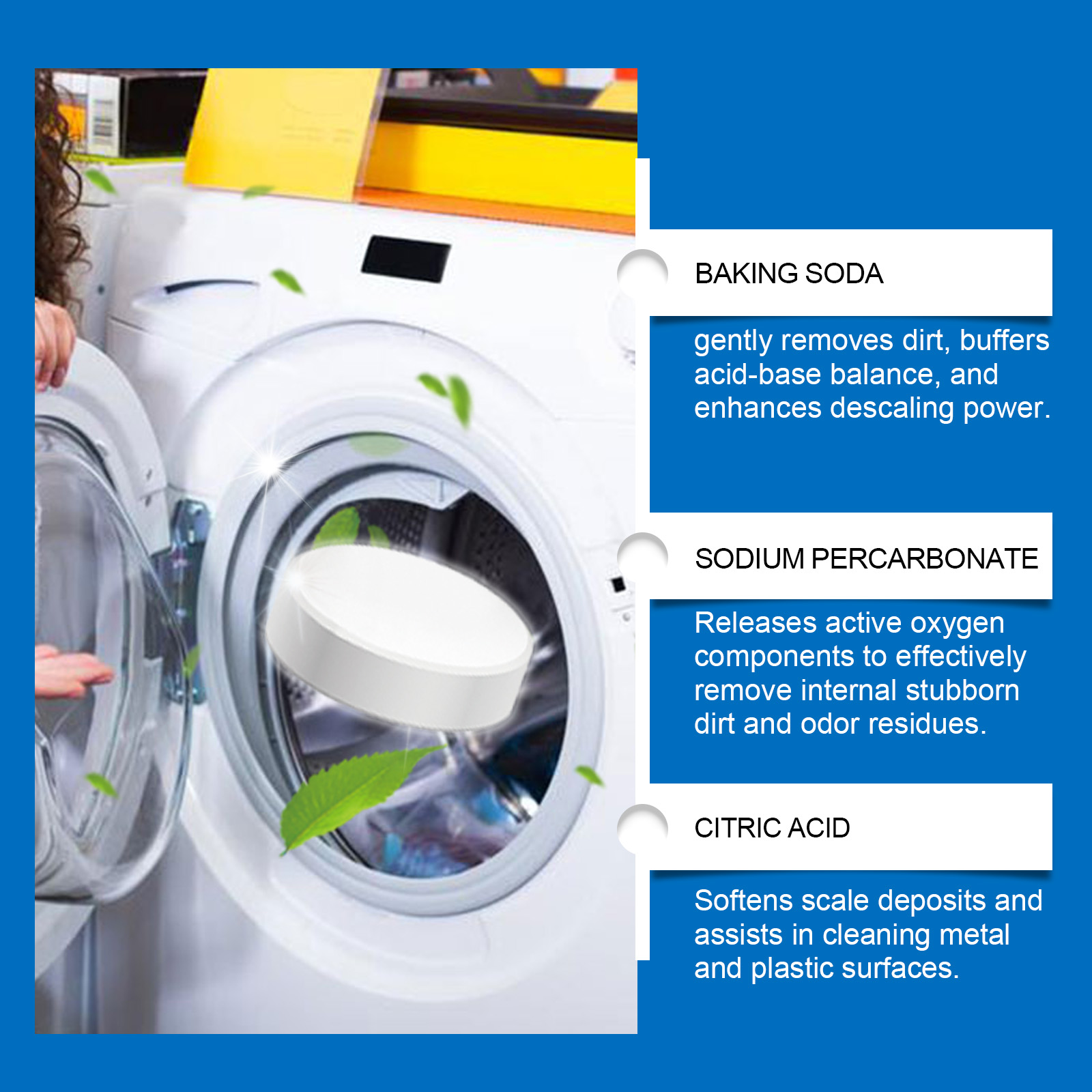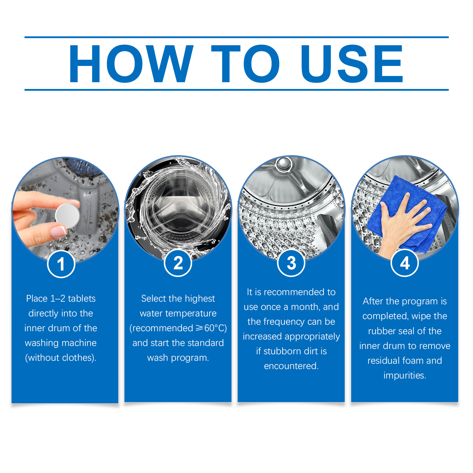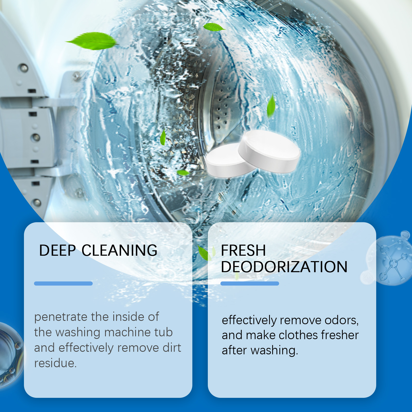 我们的洗衣机清洁片,由过碳酸钠、柠檬酸、小苏打精心调配而成。专为深入洗衣机内部,有效去除顽固污垢和洗涤残留物设计。使用方法极为便捷:将1-2片直接放入洗衣机的内筒(不放衣物)。选择最高水温(建议>60°C)并启动标准洗涤程序。建议每月使用一次如果遇到顽固污渍可以适当增加频率。程序完成后,擦拭内筒的橡胶密封圈以去除残留泡沫和杂质。并且它可以渗透洗衣机桶内部并有效去除污垢残留,有效去除异味,并使衣物在洗涤后更清新。