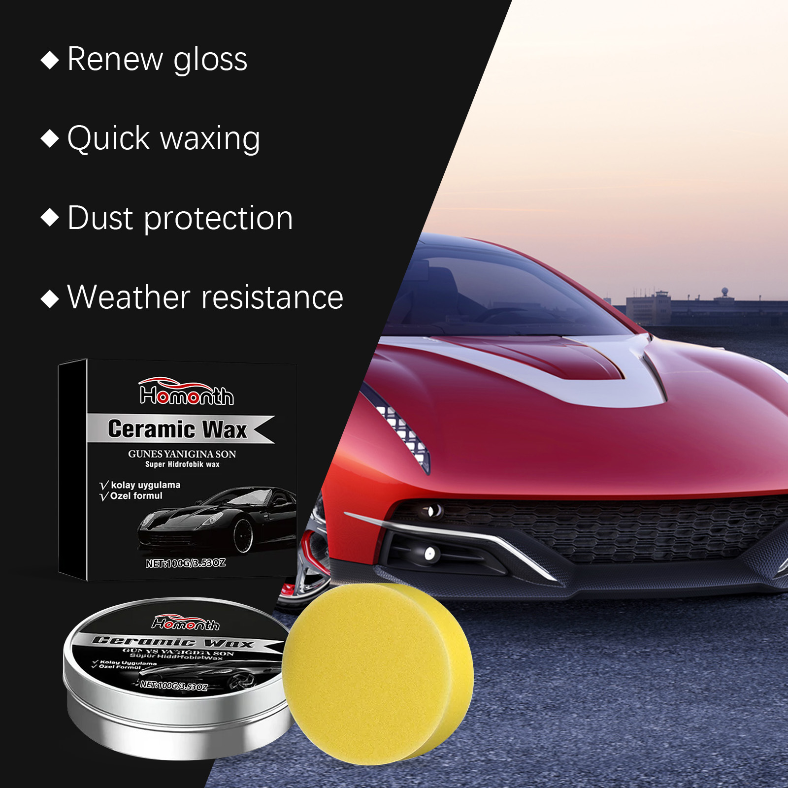 我们的汽车护理蜡,由碳酸钙、甘油精心调配而成。专为形成保护层以减少灰尘和污渍的附着,抵抗雨水侵蚀并帮助延缓油漆表面的老化设计。使用方法极为便捷:清洁并擦去汽车表面的灰尘。使用海绵取适量本产品,然后在车身表面来回均匀擦拭,直到表面抛光。并且可以保持油漆如新,改善整体外观。使用方便,涂抹顺滑,节省时间和精力。