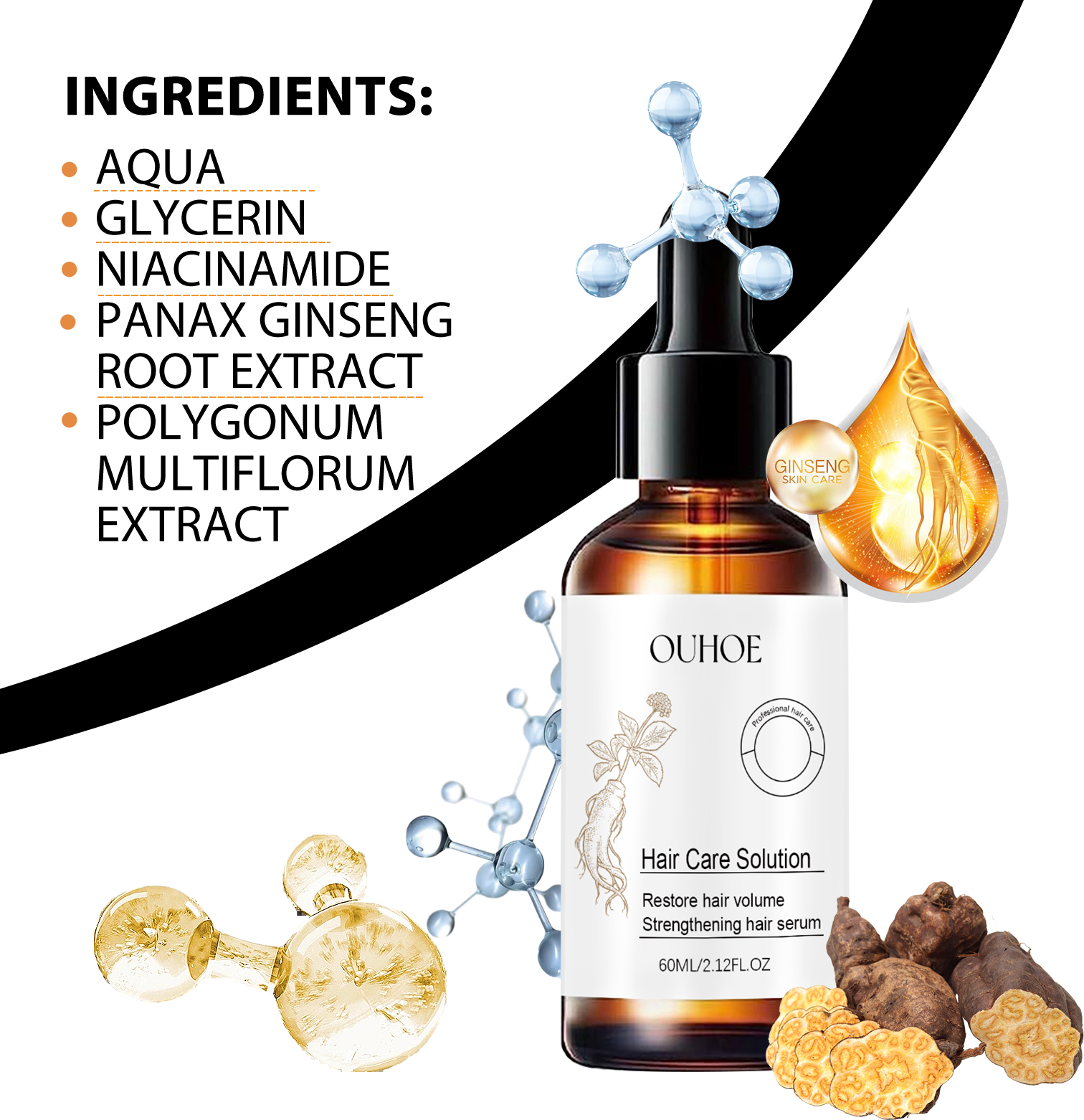 我们的头发密发液含有甘油、烟酰胺、人参根提取物。它可以清洁头皮,预防掉发,防脱落,固定发质,滋润柔顺头发。它的使用方法很简单:清洁头皮和头发,保持头皮干燥;取适量本品涂抹于头皮;用指尖轻轻按摩,直至吸收。头发密发液使头发蓬松浓密,长出更多头发。