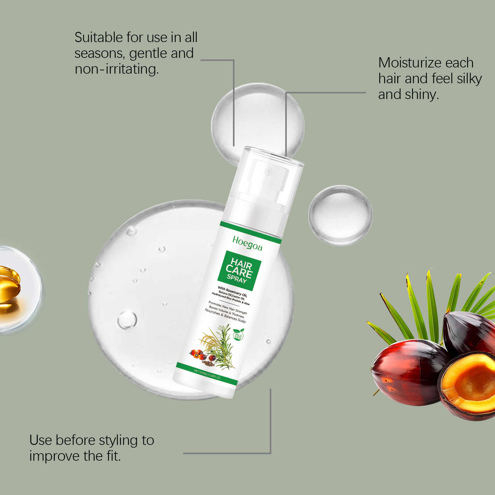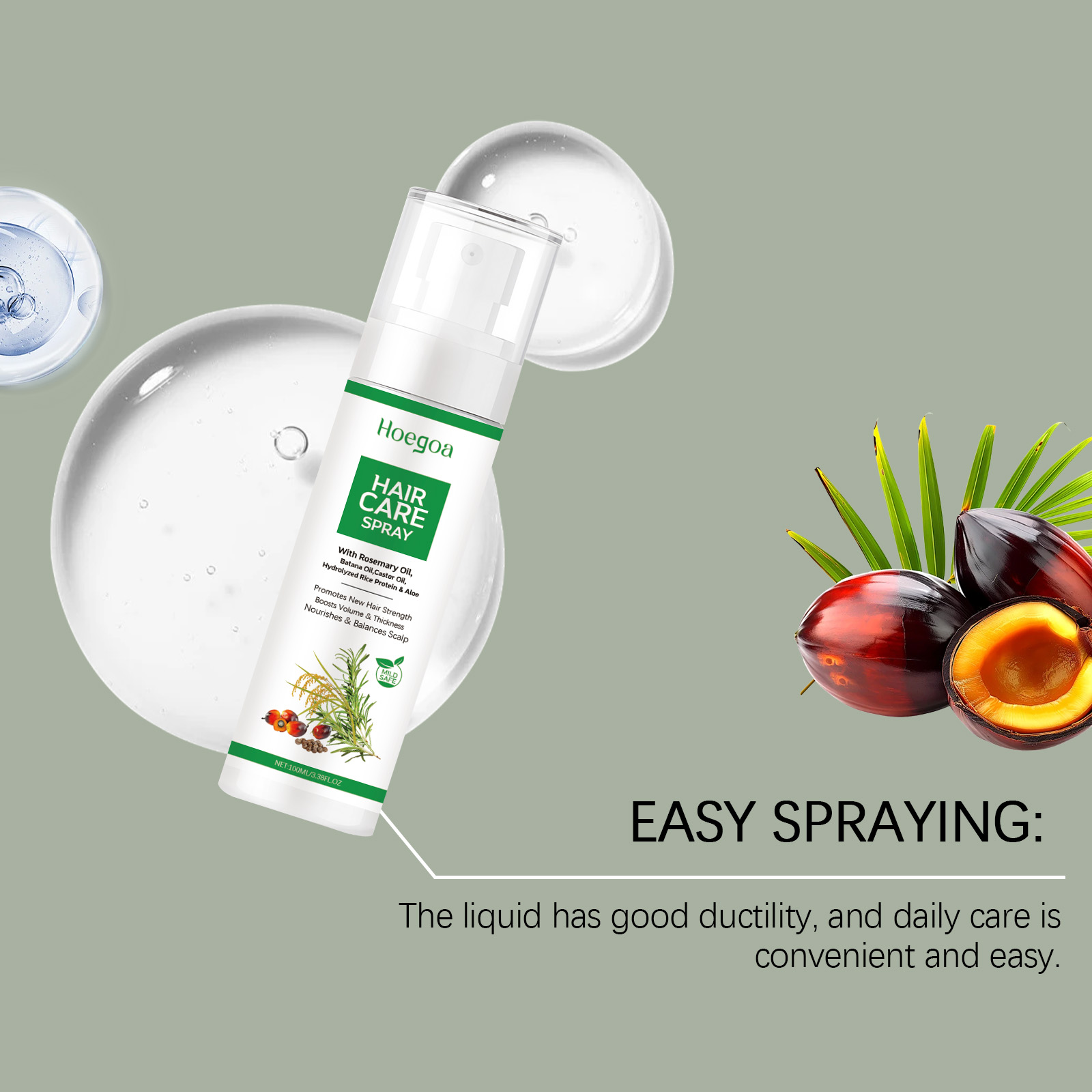 我们的头皮护理精华喷雾,由巴塔纳油、蓖麻油、水解大米蛋白精心调配而成。专为滋养头皮,提升日常护理的舒适度设计。使用方法极为便捷:清洁头皮并保持干燥。在头皮上喷适量的本产品。轻轻按摩直至吸收。并且可以保持头发的强韧结构并增强日常护理的效果。