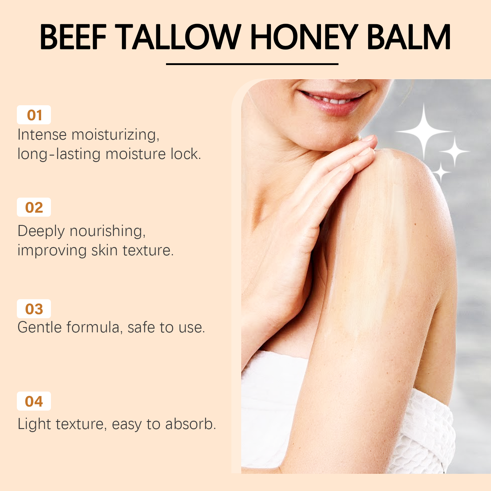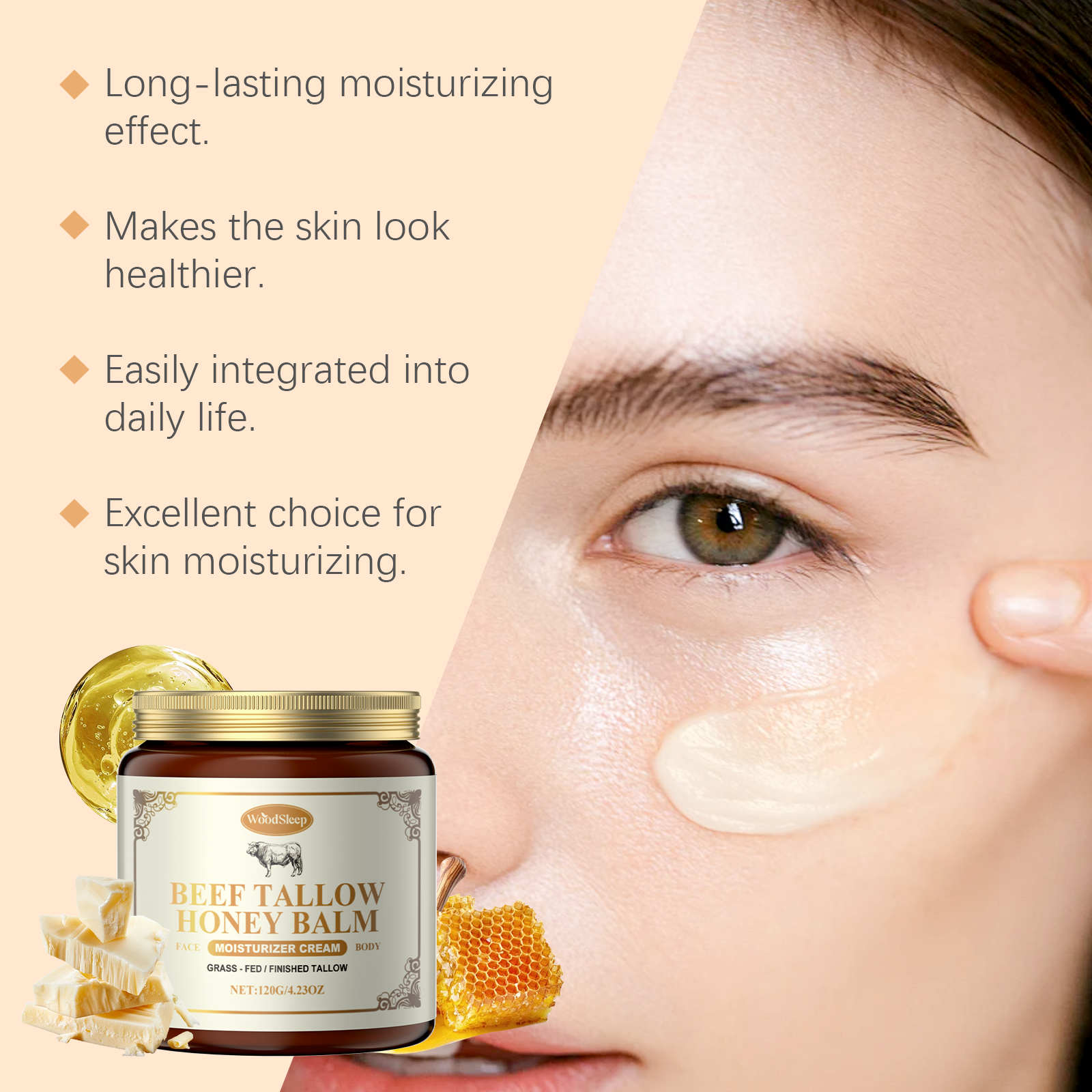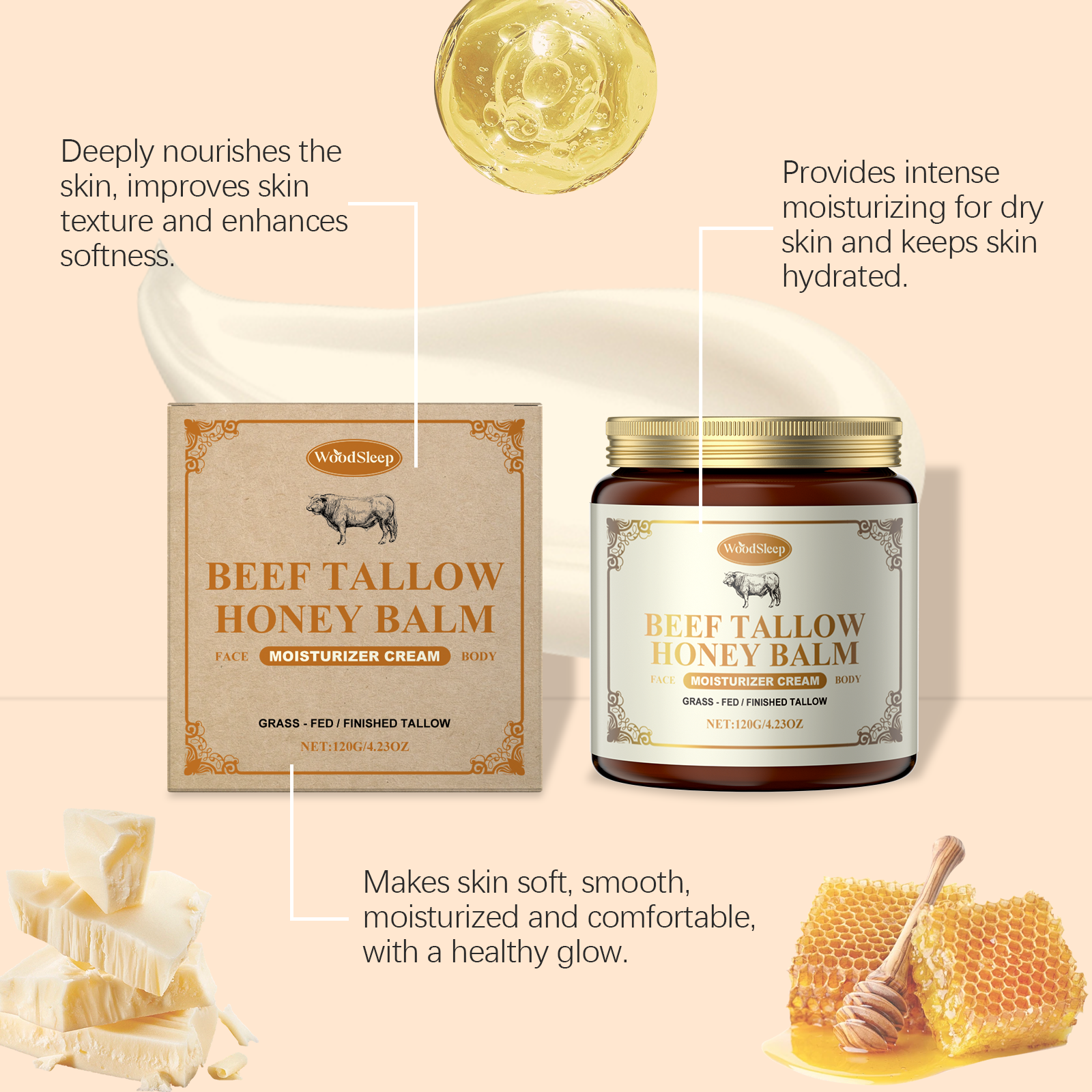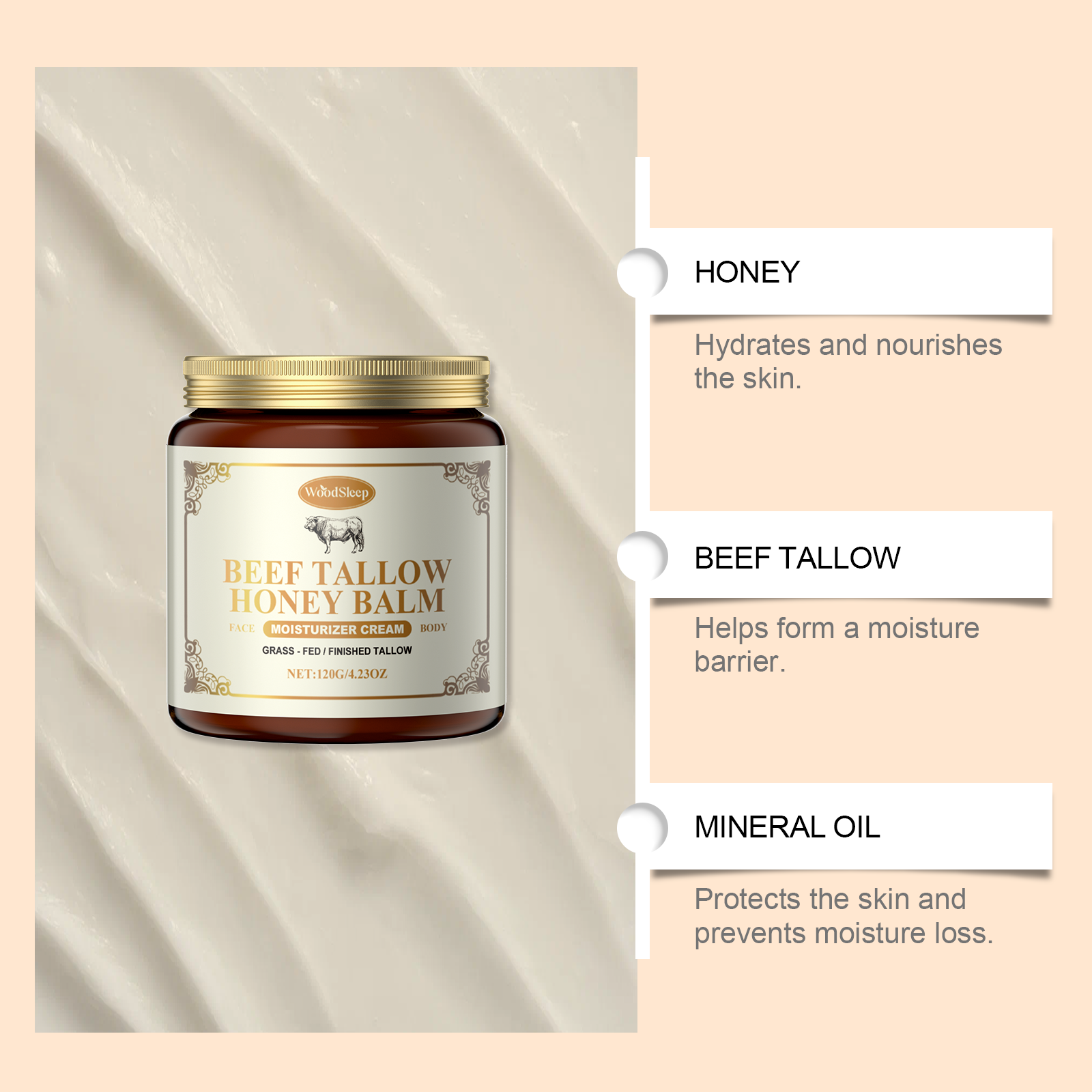 我们的牛脂蜂蜜润肤膏,由甘油、矿油、甘油硬脂酸酯精心调配而成。专为滋润肌肤设计。使用方法极为便捷:清洁面部和身体,并保持干燥,取适量本品均匀涂抹于面部和身体,轻轻按摩直至完全吸收。并且可以改善粗糙的皮肤质地。