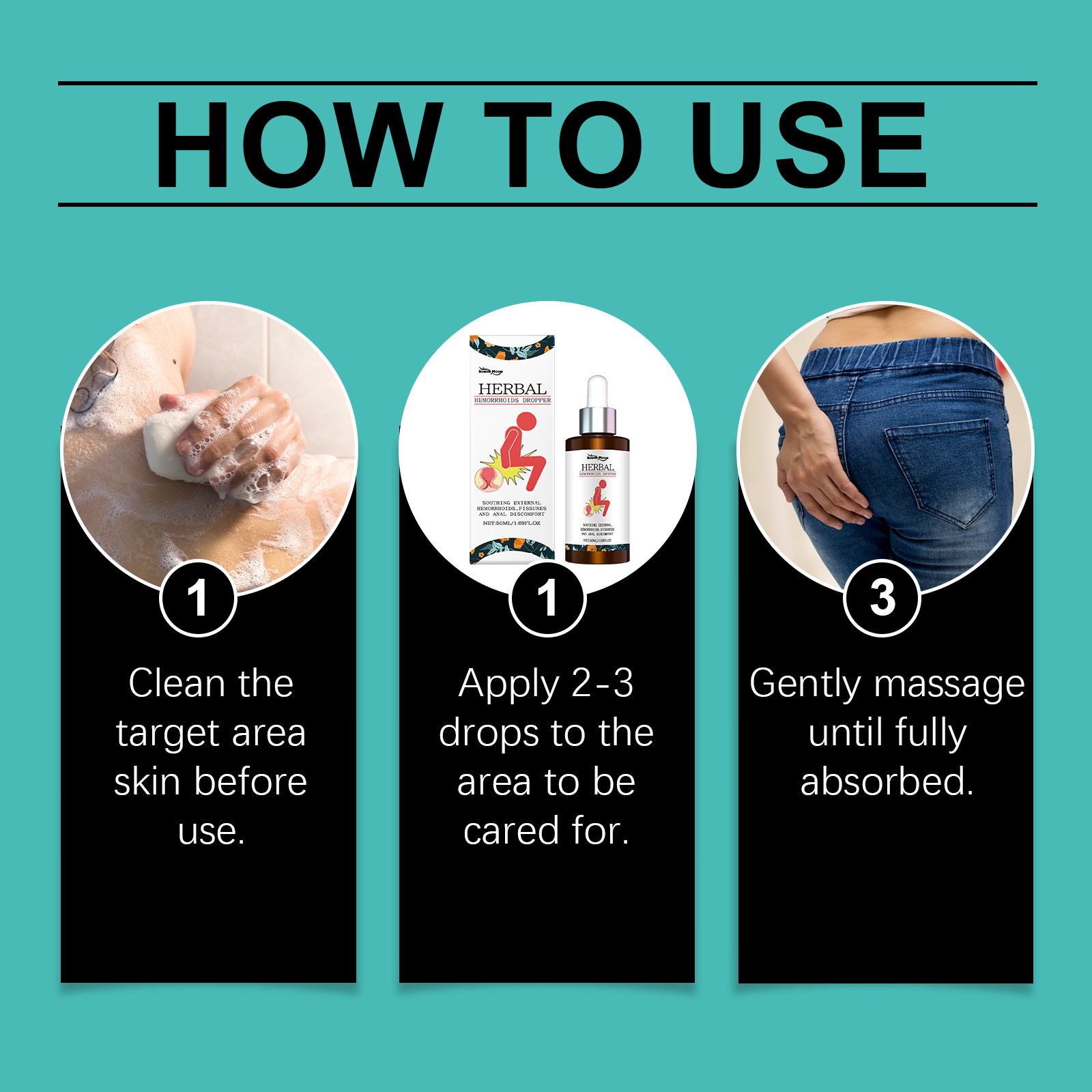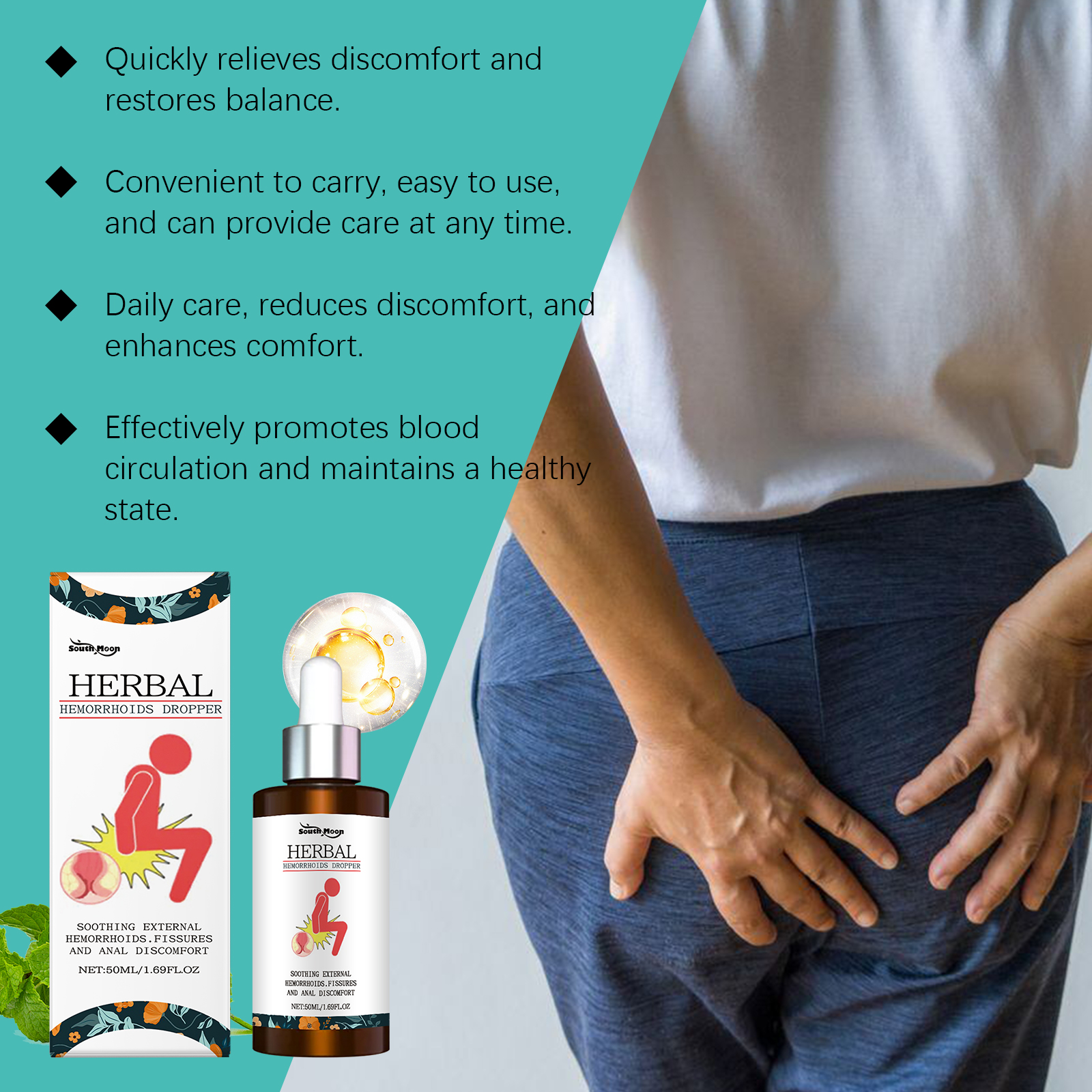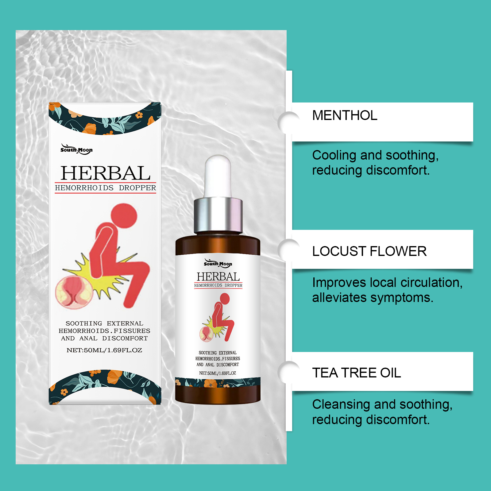 我们的草本身体护理滴剂,由薄荷脑、槐花精心调配而成。专为改善盆腔血液循环,防止痔疮复发设计。使用方法极为便捷:1. 使用前清洁目标区域皮肤。2. 涂抹2-3滴于需护理部位。3. 轻柔按摩至完全吸收。并且可以快速缓解瘙痒、灼热和不适 ,快速治愈肛裂,收缩肿胀的痔疮组织。