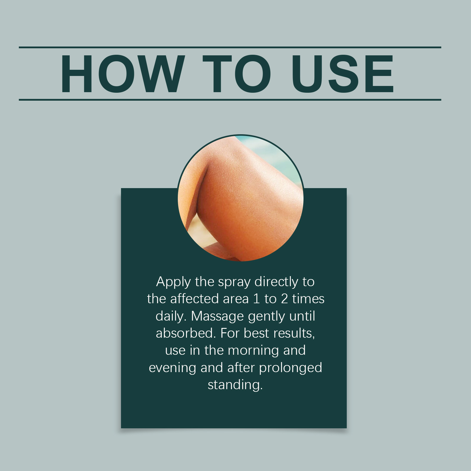 我们的身体护理喷雾,由1,2-己二醇、氢化蓖麻油精心调配而成。专为舒缓腿部不适,有助于促进血液循环,帮助减轻肿胀,提升腿部舒适感设计。使用方法极为便捷:每日1至2次,将喷雾直接喷于患处肌肤。轻轻按摩直至肌肤吸收。为了达到最佳效果,建议在早晚以及长时间站立后使用。并且坚持使用可支持更健康的静脉状态,改善皮肤整体外观。