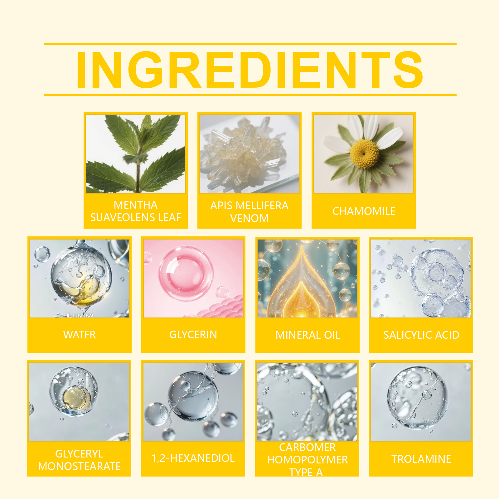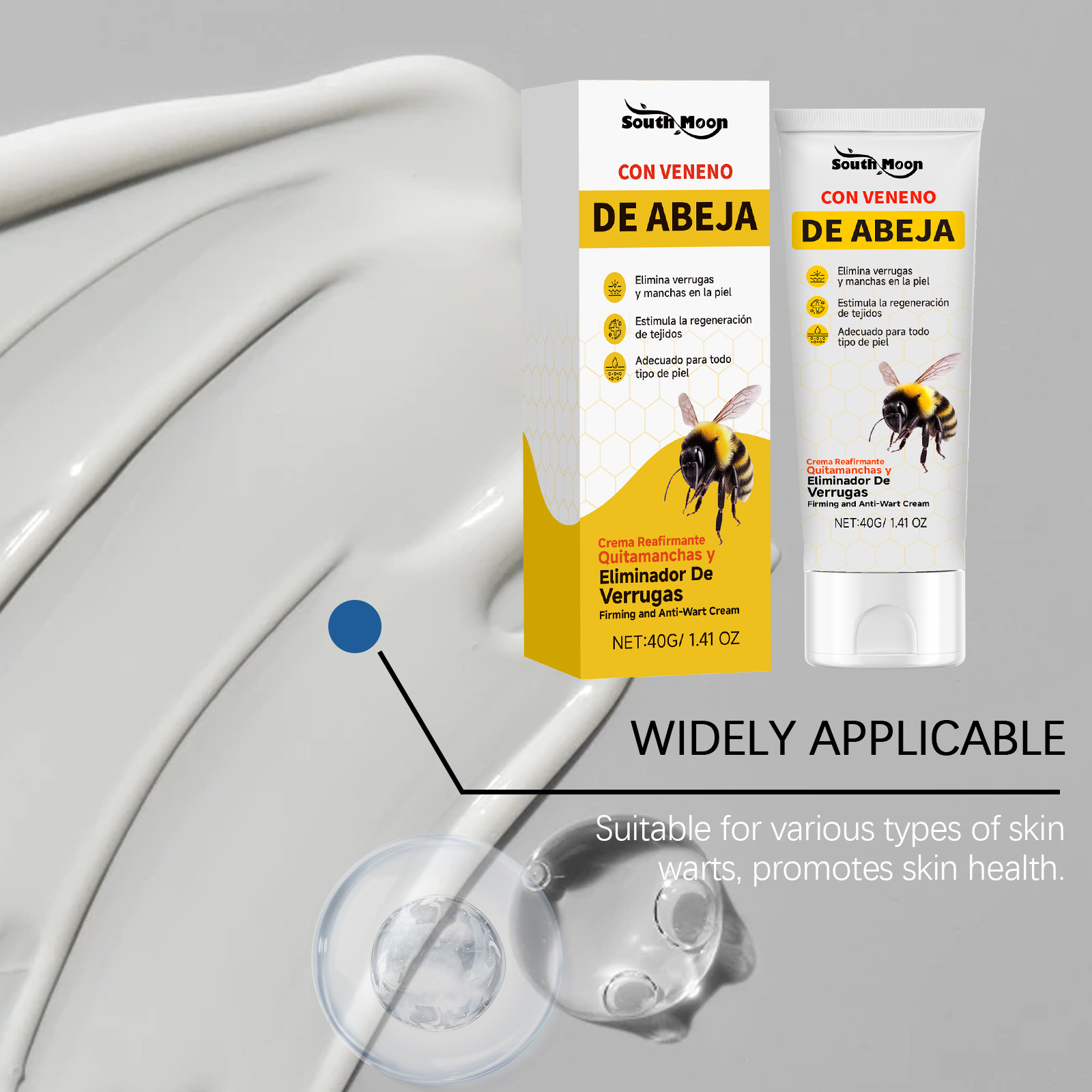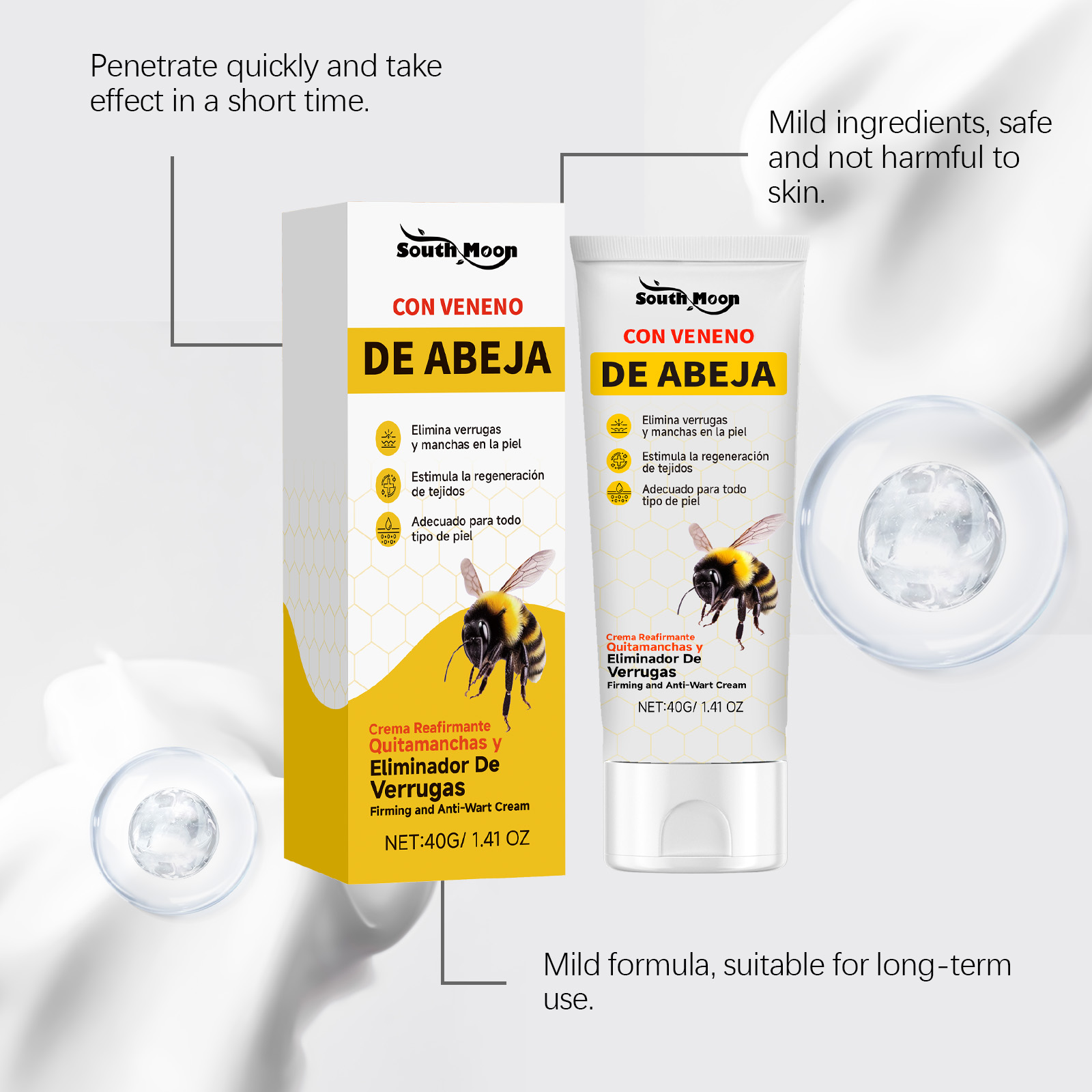 我们的蜂毒皮肤护理霜,由三乙醇胺、水杨酸精心调配而成。专为快速去除痣和疣设计。使用方法极为便捷:清洁并干燥皮肤后。取适量本产品涂抹于疣或痣上,并轻轻按摩以促进吸收。并且可以提供清凉感并舒缓皮肤不适。