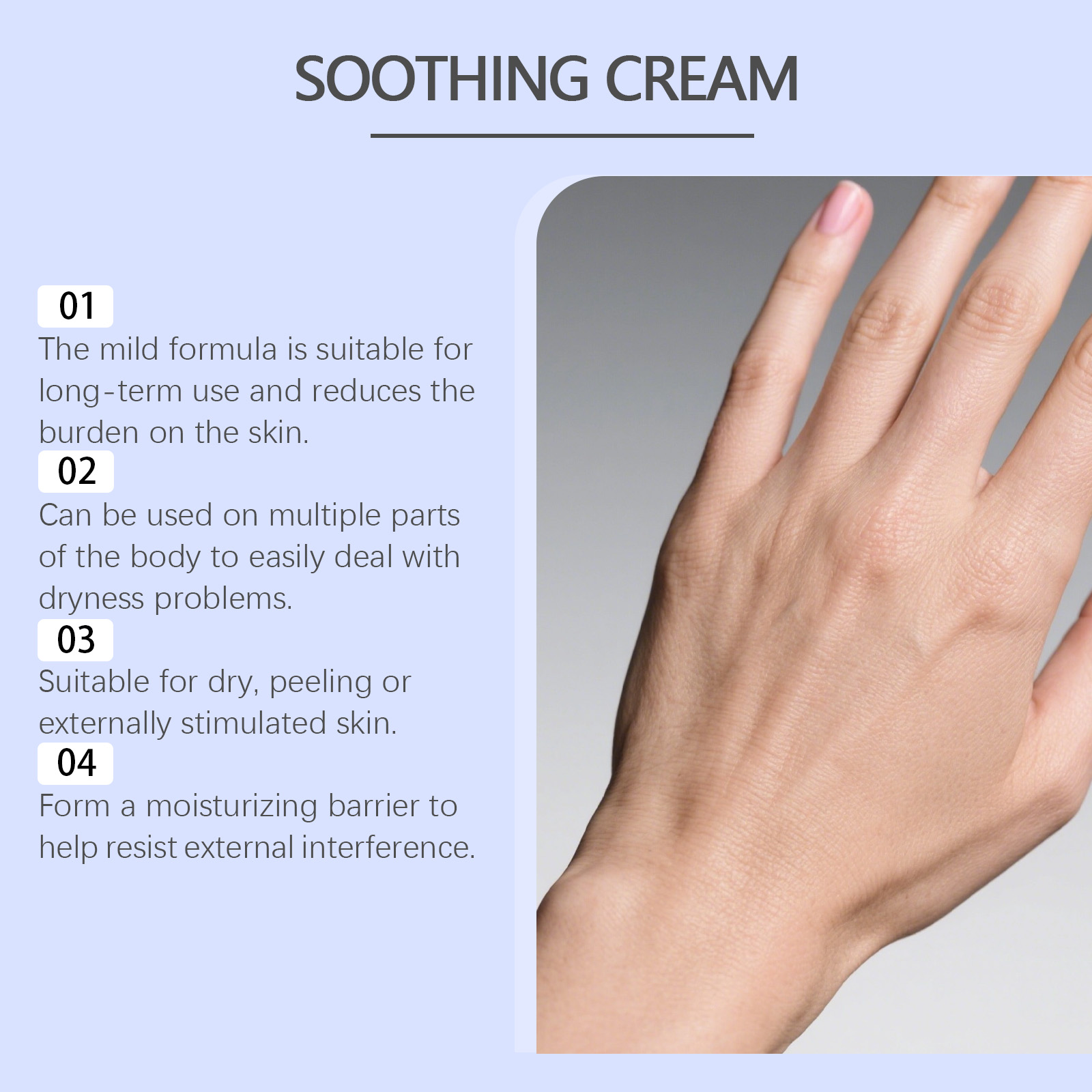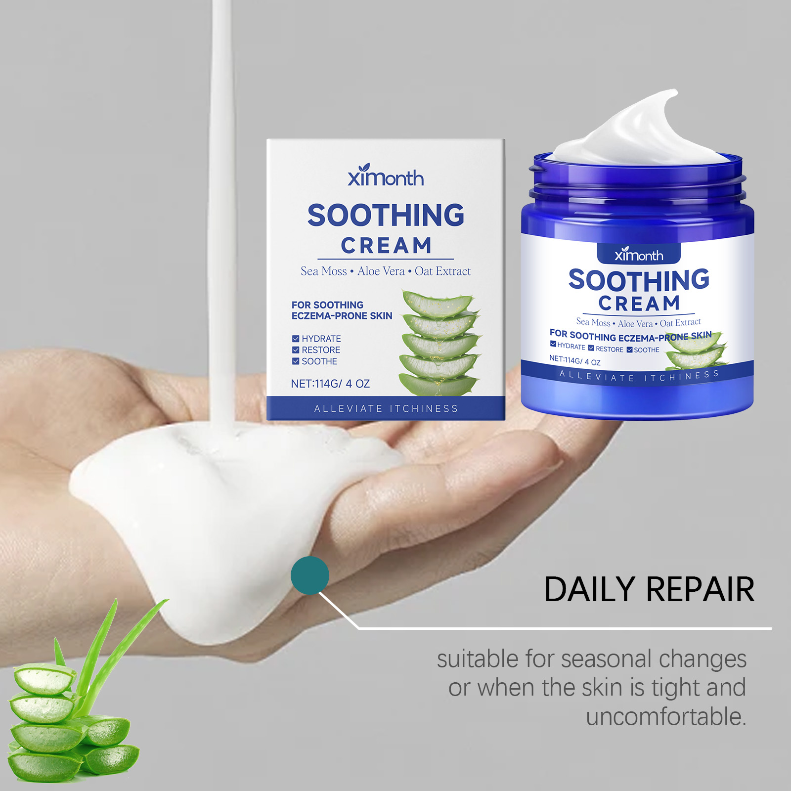 我们的皮肤舒润保湿霜,由甘油、矿油、甘油硬脂酸酯精心调配而成。专为减少湿疹引起的瘙痒和皮肤刺激设计。使用方法极为便捷:清洁肌肤并干燥,取适量本品涂抹在湿疹肌肤上并轻轻按摩促进吸收。并且它可以缓解皮肤红肿和刺激,滋养和保湿皮肤,改善皮肤纹理和光泽。