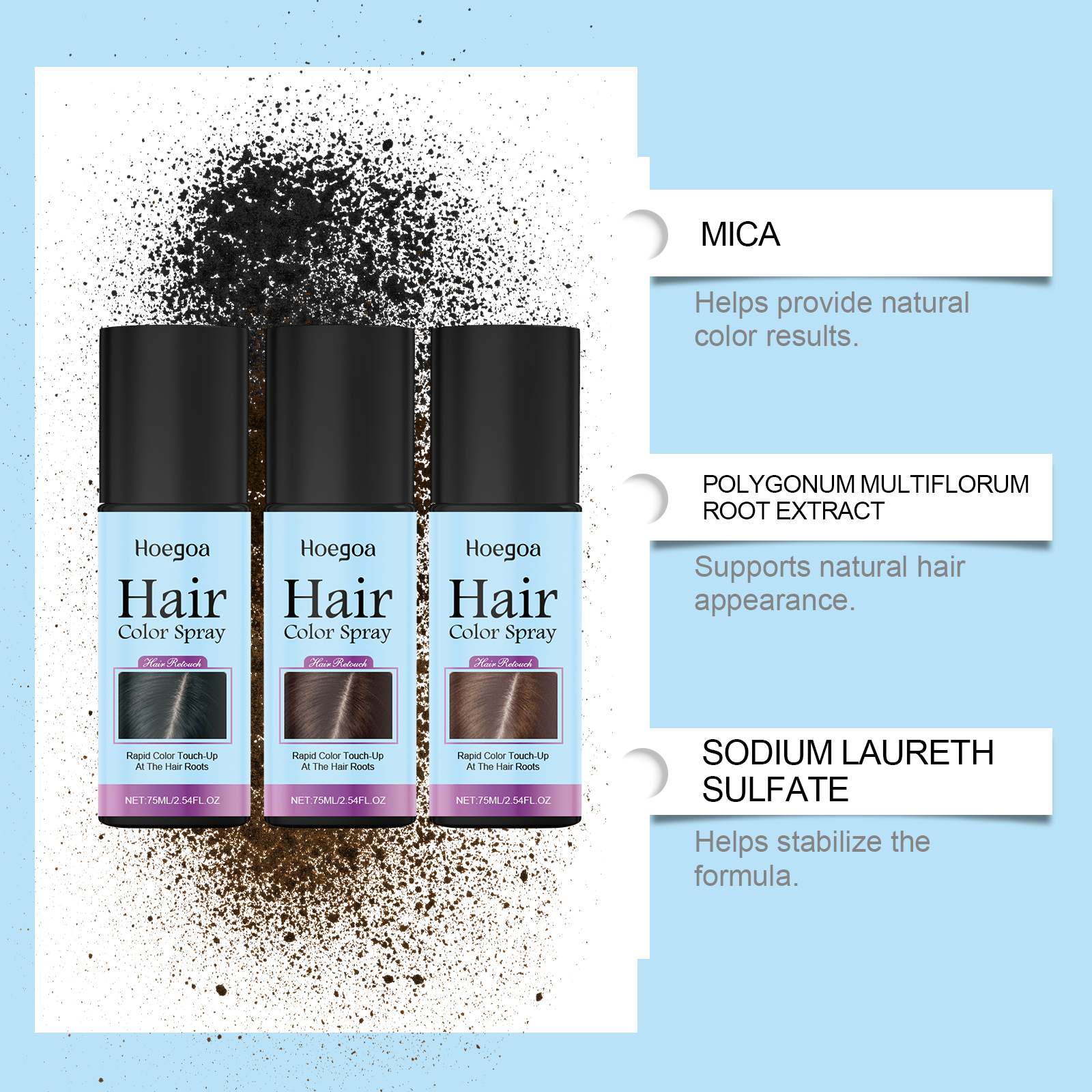 我们的一次性补色喷雾(黑色),由云母、羟乙基纤维素、何首乌根提取物精心调配而成。专为有效帮助暂时遮盖发根处的颜色差异设计。使用方法极为便捷:使用前摇匀,并涂抹在干发的根部。使用时与发根保持约10厘米的距离。在小区域喷少量。不要在整个头部或一个地方长时间喷,以免液体滴到衣服上。并且有助于在发根处混合颜色,使发型更加均匀。