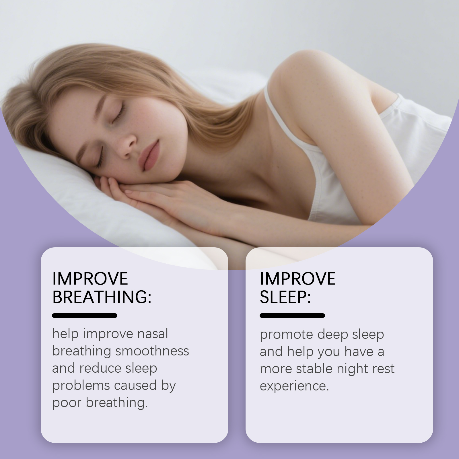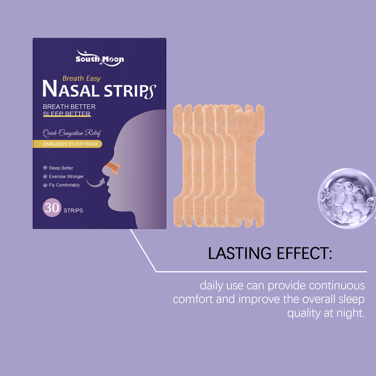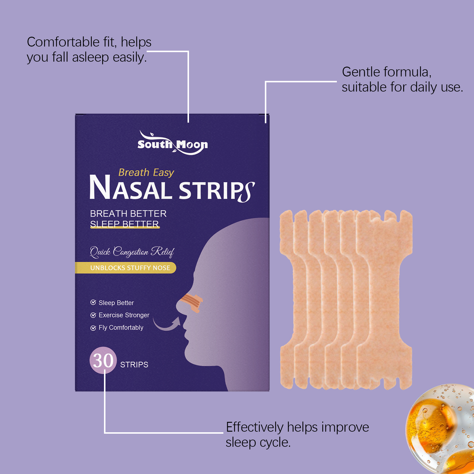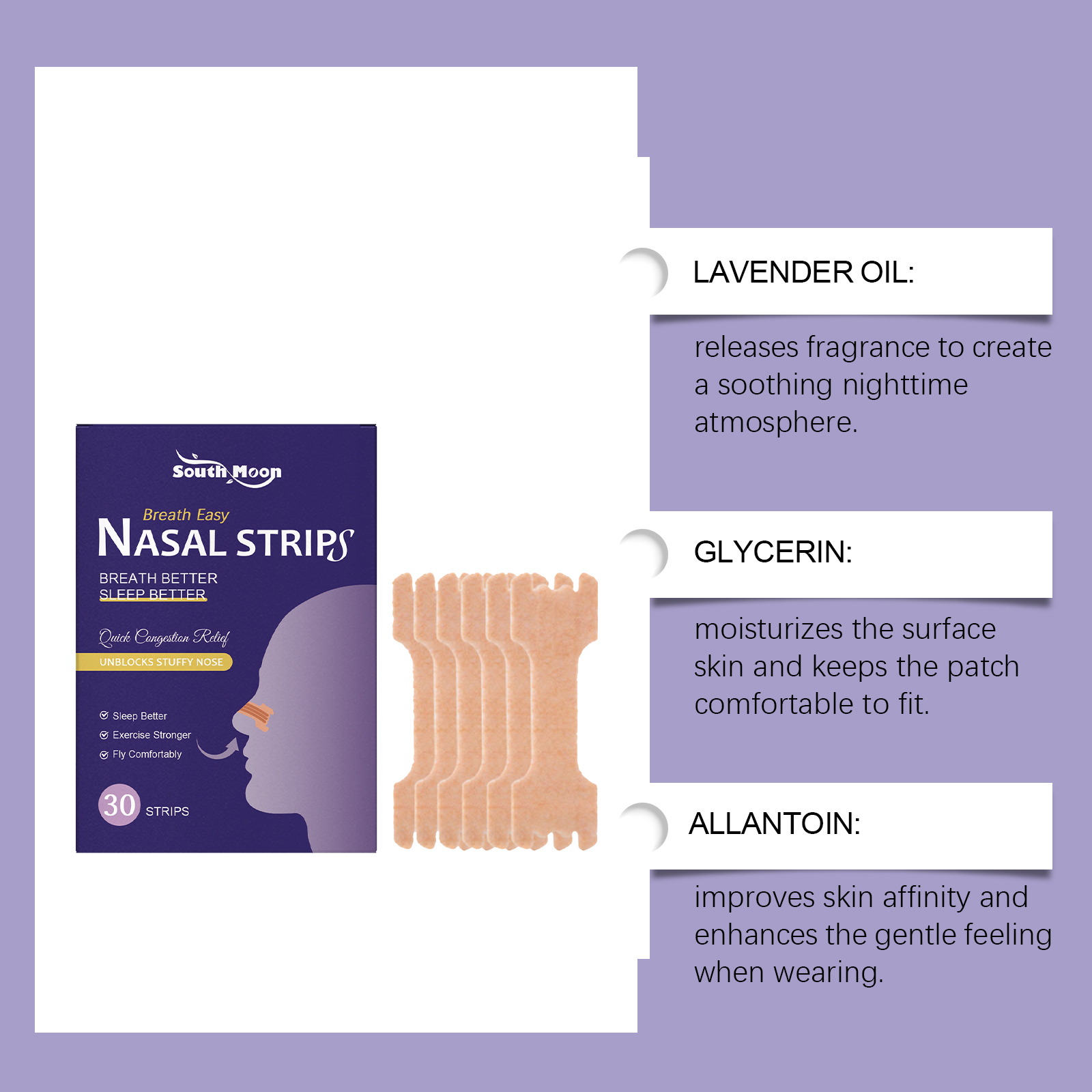 我们的睡眠护理鼻贴,由尿囊素、乙二胺四乙酸二钠精心调配而成。专为帮助改善鼻腔呼吸顺畅度设计。使用方法极便捷:在睡前清洁鼻子周围的皮肤并确保其干燥。将贴纸从中间撕开并贴到鼻子上。醒来后将其取下。并且可以促进深度睡眠,帮助你获得更稳定夜间休息体验。
