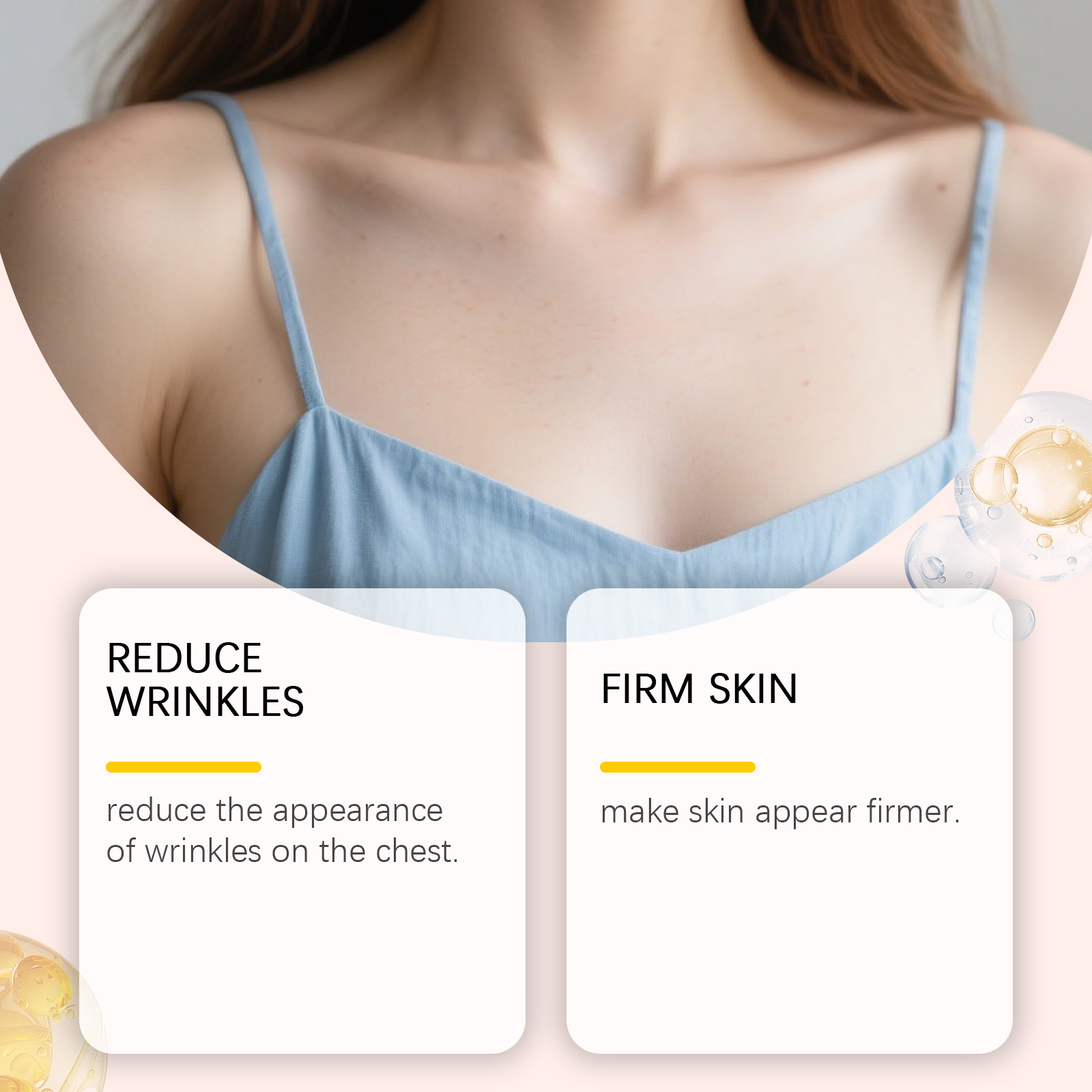 我们的胸部护理垫,由甘油、羟乙基纤维素精心调配而成。专为帮助减少胸部区域皱纹的外观,助力紧致肌肤,呈现更紧实光滑的外观设计。使用方法极为便捷:将垫子涂抹在清洁后的胸部区域至少 1 小时。收紧皮肤并抚平它以避免皱纹。您应该佩戴护垫过夜。若要清洁本品,可用温和的无油肥皂在温水中冲洗。并且它可以补充肌肤水分,保持水润柔滑,协助维持肌肤滋养清新的状态。