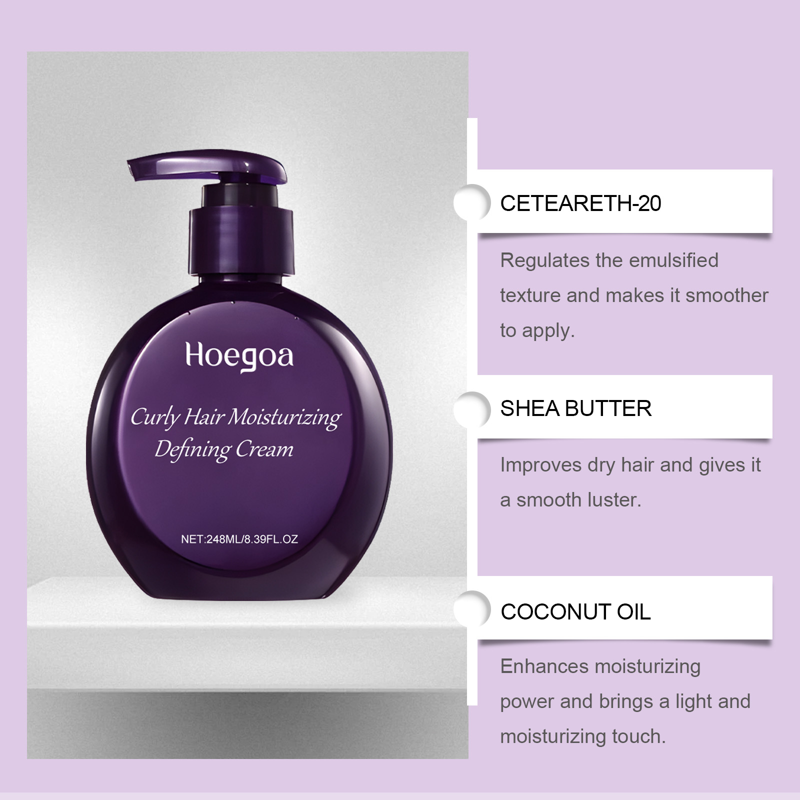 我们的卷发保湿定型霜,由鲸蜡硬脂醇聚醚-20、甘油精心调配而成。专为瞬间提升秀发光泽,让发丝闪耀动人,焕发健康光彩设计。使用方法极为便捷:1.洗发后,将湿发吹至半干,使其蓬松。2.取适量本品涂抹在手掌上,从头发中间到头发顶部,均匀涂抹在头发上。3.双手插入头发的尖端,向上抓紧,直到头发轻轻地向尖端扭动,再次向上抓紧。并且它可以有效抵御高温伤害,保护秀发免受吹风机、卷发棒等热工具损伤,赋予头发适度造型能力,同时易于打理,保持发丝弹性与韧性,轻松拥有顺滑秀发。