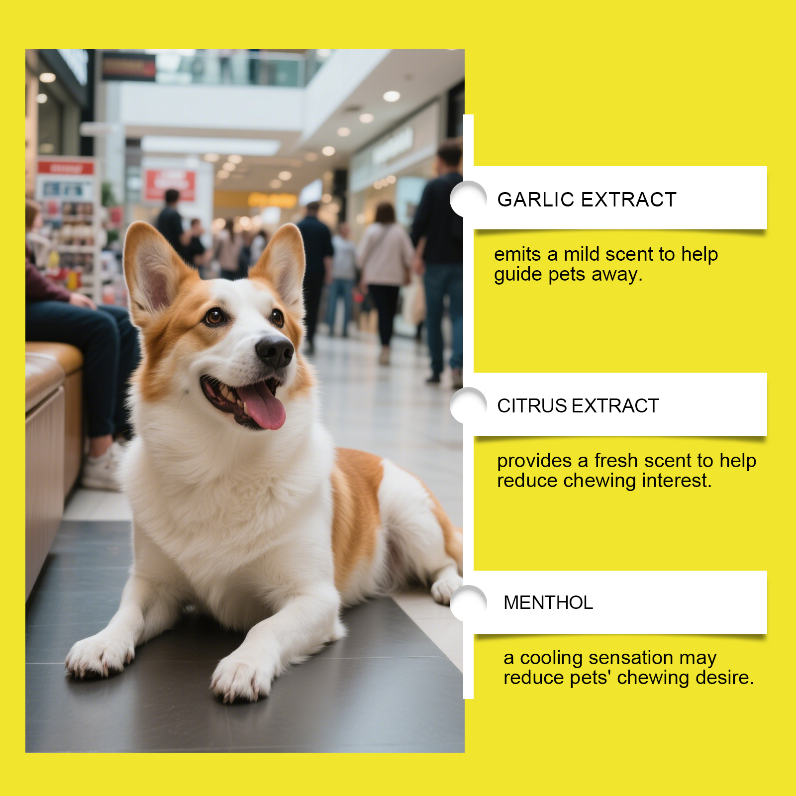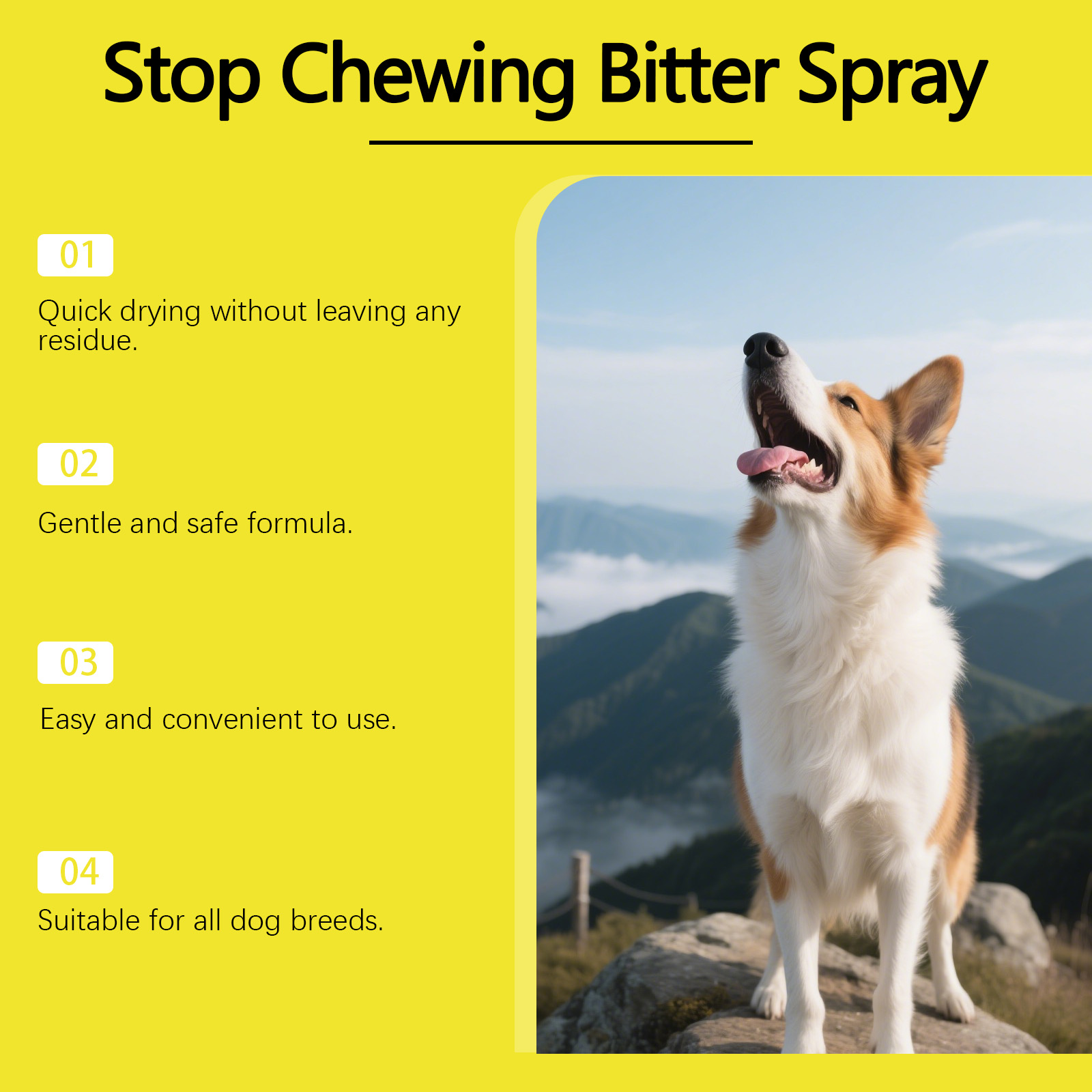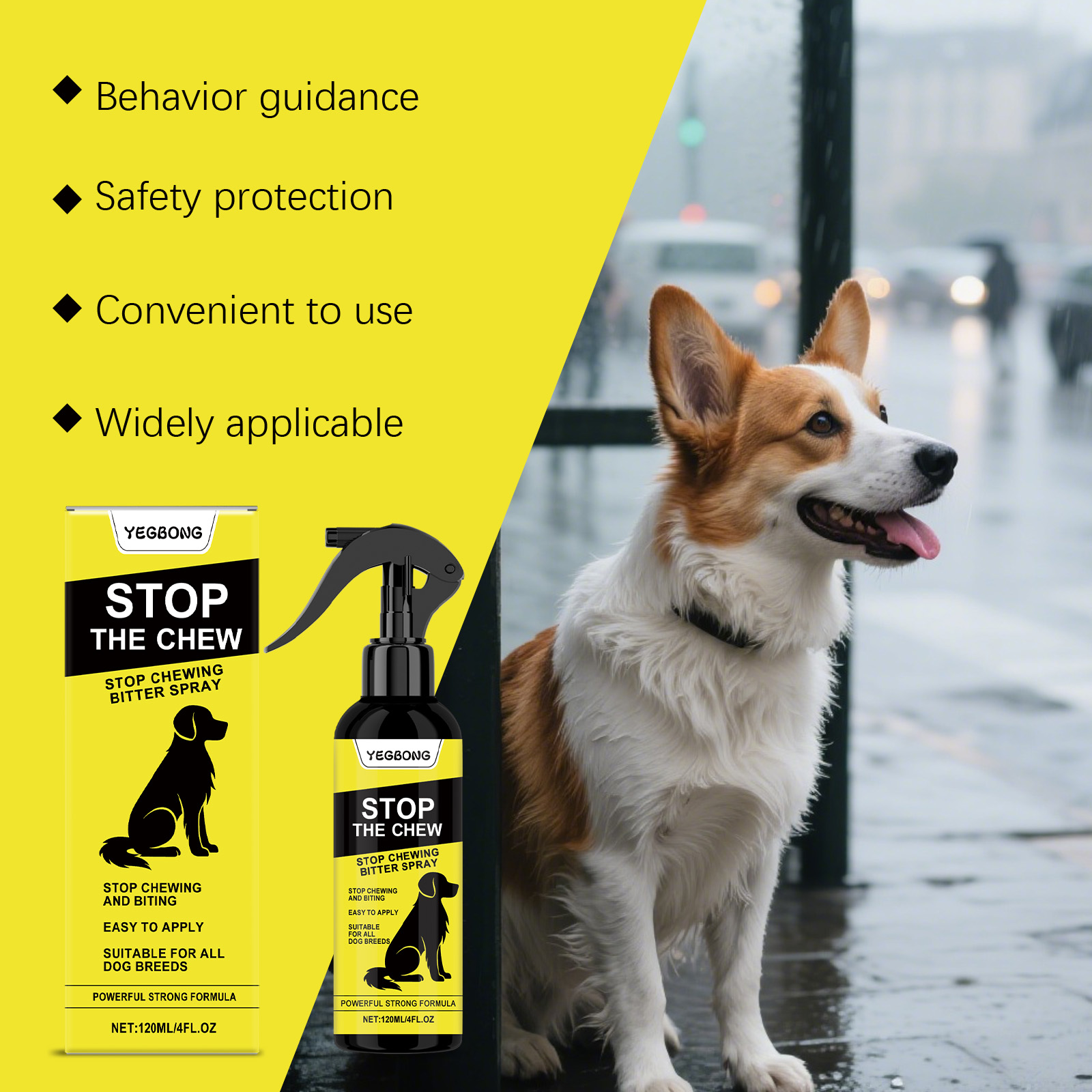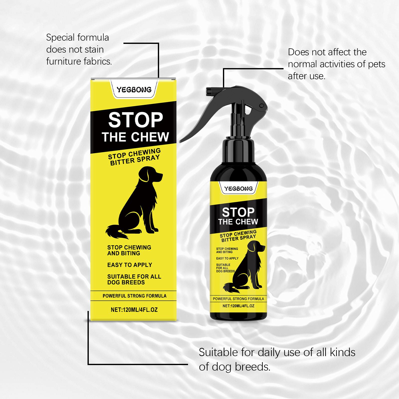 我们的狗狗防咬喷雾,由去离子水、乙醇精心调配而成。专为帮助减少狗狗啃咬行为,温和配方不刺激宠物设计。使用方法极为便捷:1.使用前摇匀。2.直接喷洒在您的狗容易咀嚼的物品或区域上。3.为了获得最佳效果,请结合积极强化训练。并且它可以有助于防止舔伤口,帮助宠物养成良好习惯。