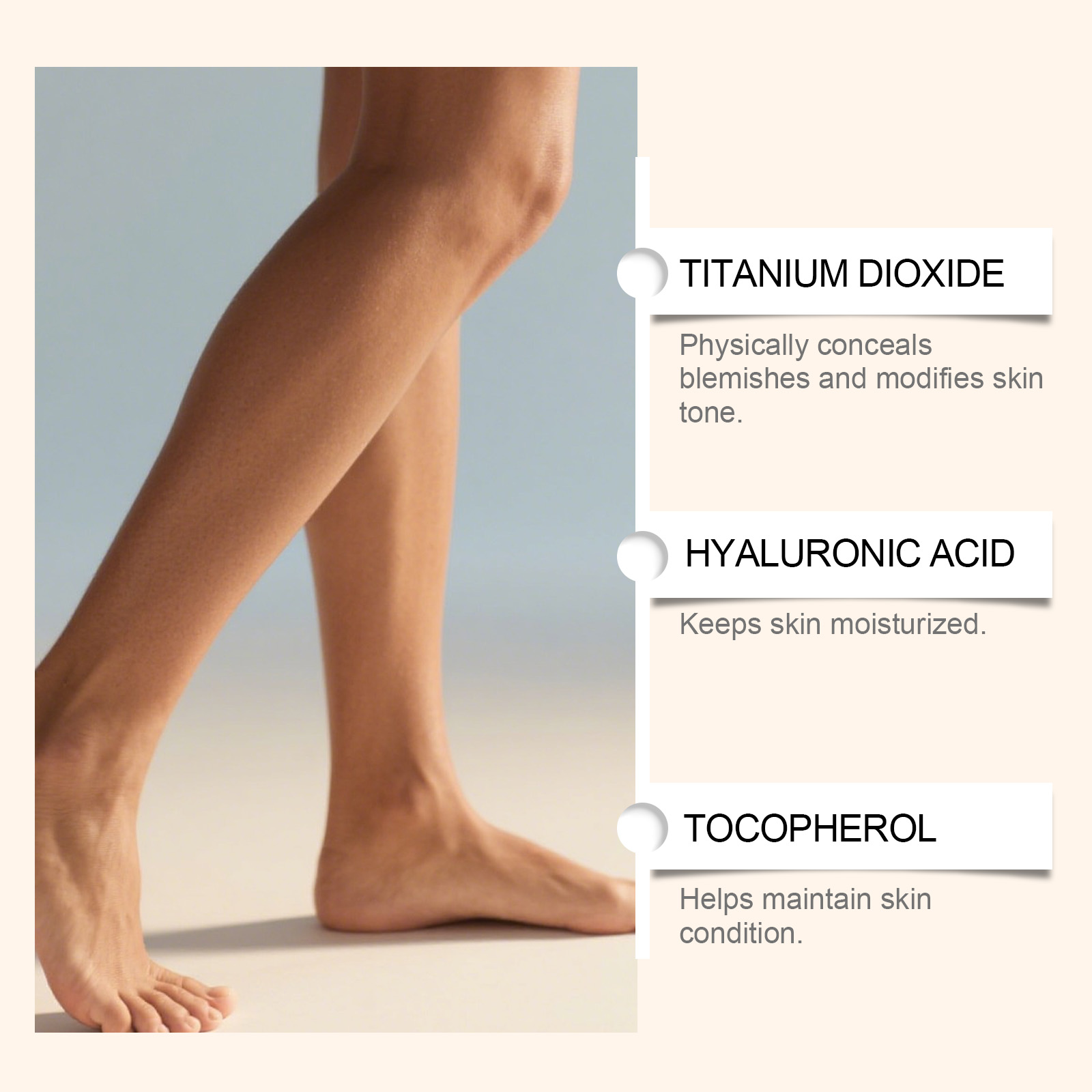 我们的腿部遮瑕粉底霜,由聚二甲基硅氧烷、二氧化钛精心调配而成。专为均匀修饰腿部肤色,遮盖肌肤细小瑕疵设计。使用方法极为便捷:1.清洁并干燥腿部肌肤。2.取适量本品点涂在腿部肌肤上,均匀推开涂抹。3.可搭配工具使用。并且它可以提升腿部肌肤光泽感,保持肌肤水润状态。