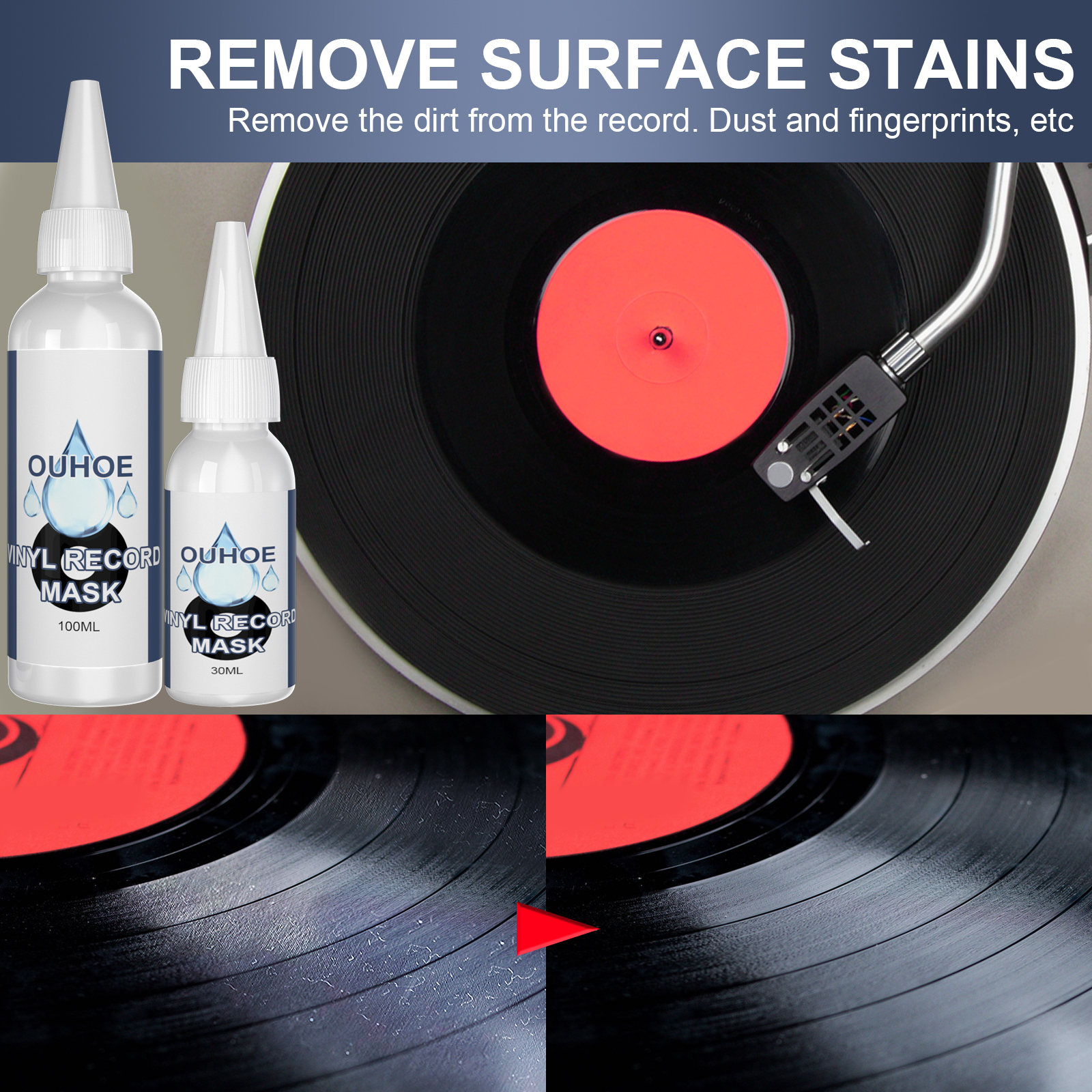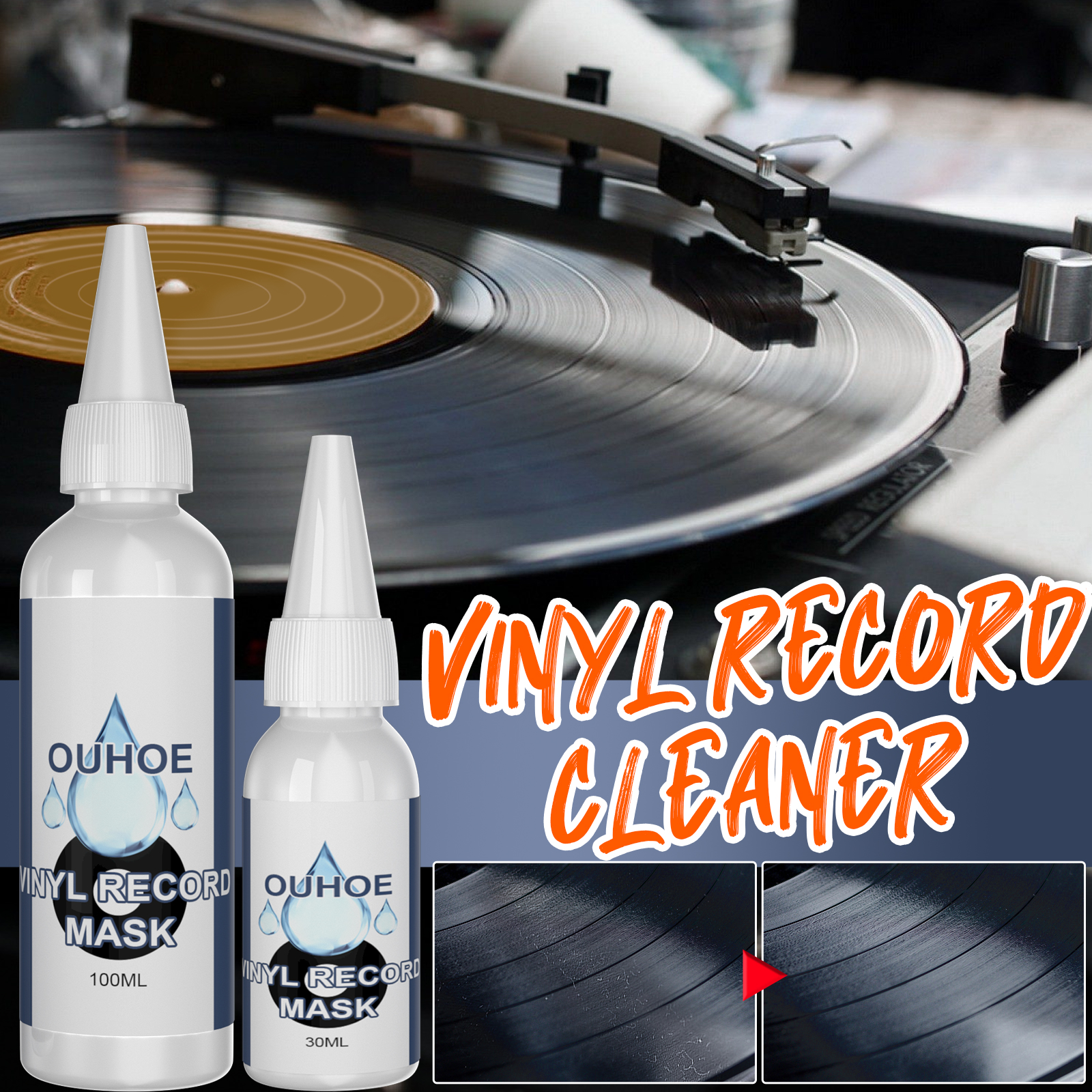 我们的黑胶唱片清洁剂含有椰子油,甘油。它可以高效清洁唱片,清除唱片上的污渍,让你的唱片变得焕然一新。它的使用方法很简单:首先把清洁剂挤在黑胶唱片上,形成一层覆盖膜,在放清洁剂时,把黑胶唱片放在唱机上并旋转。清洁器沿着唱片旋转,均匀地落在黑胶唱片上,注意不要洒出来,之后用工具压平清洁并形成薄膜,小心地从黑胶唱片上去掉由清洗机形成的薄膜即可。使用后可以高效去除唱片表面污渍,清除唱片上的污垢。灰尘、指纹等,是清洁唱片的最好帮手。