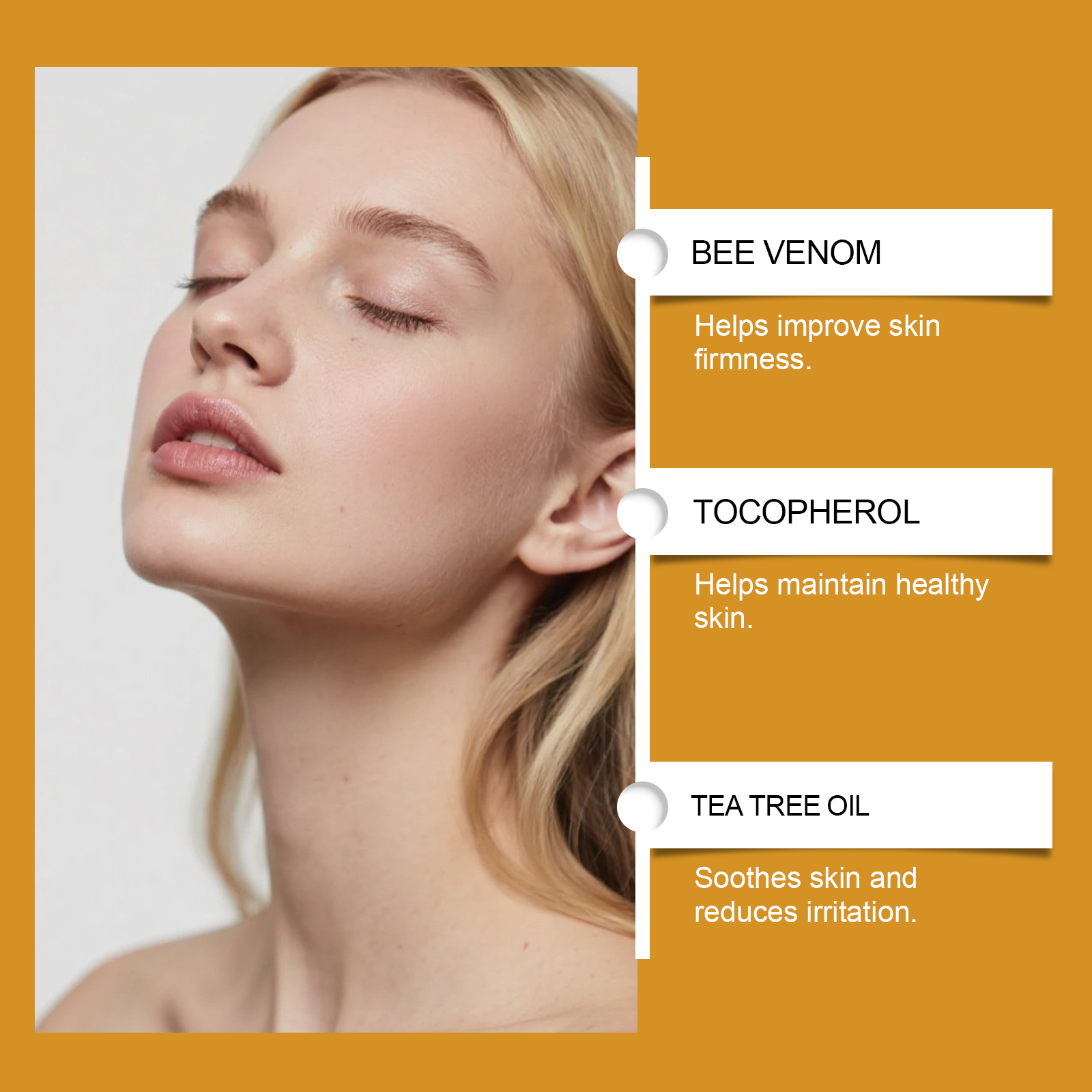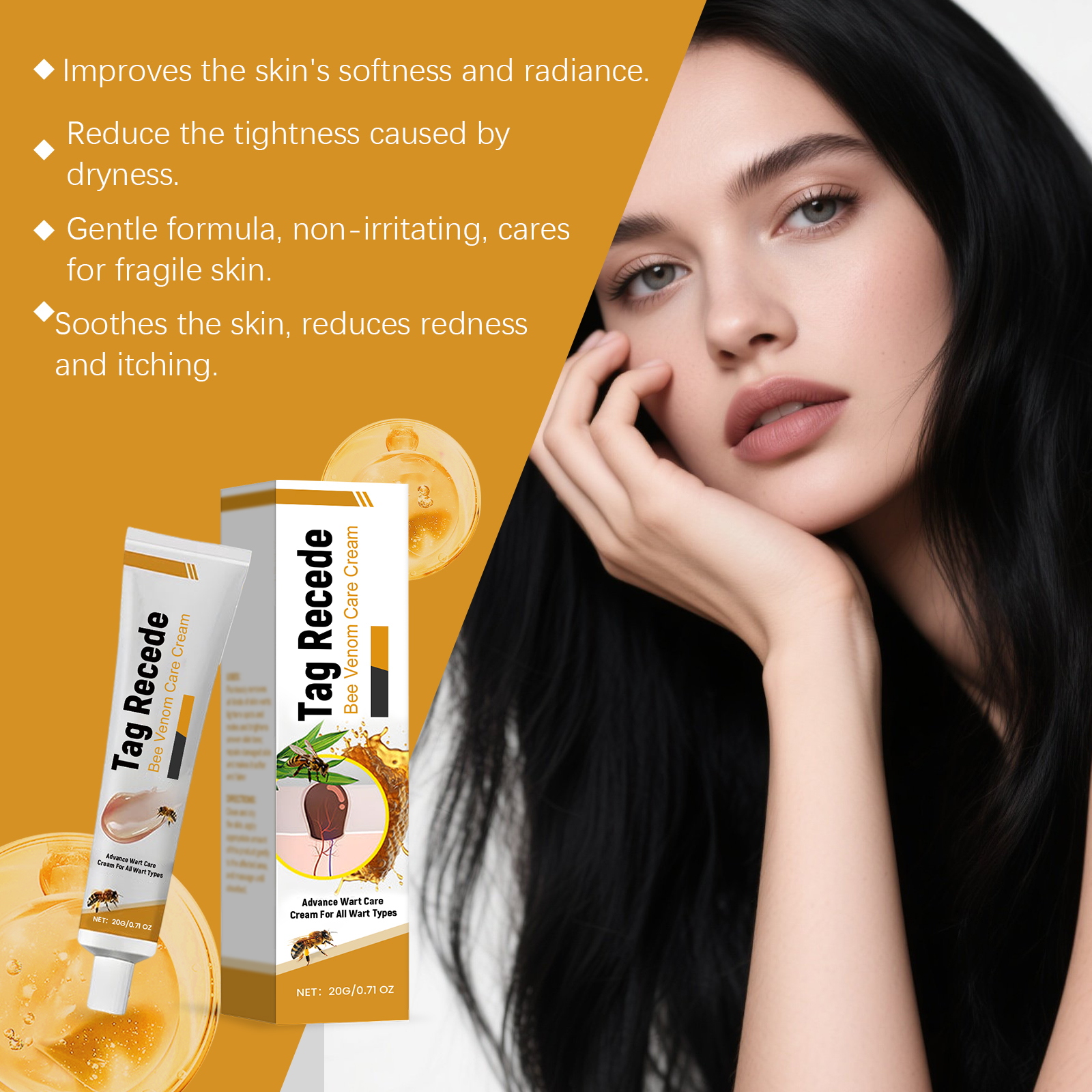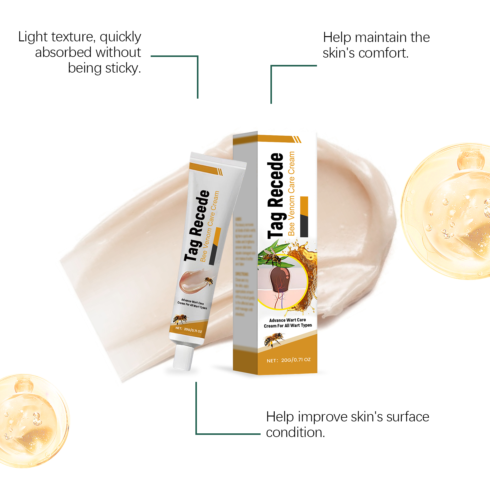 我们的蜂毒护理膏,由甘油、矿油、甘油硬脂酸酯精心调配而成。专为无痛去除各种皮肤疣,淡化斑点和痣提亮肤色不均设计。使用方法极为便捷:清洁并干燥肌肤,取适量本品轻柔涂抹于患处肌肤,按摩至吸收即可。并且它可以修复受损皮肤并使皮肤更柔软白皙。
