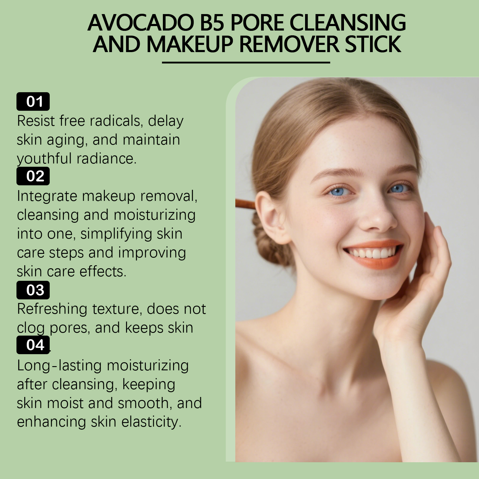 我们的牛油果B5润养卸妆棒,由高岭土、硬脂酸精心调配而成。专为温和卸除彩妆及防晒残留,洁净不紧绷,清洁毛孔污垢,帮助减少堵塞与暗沉设计。使用方法极为便捷:1.用卸妆棒均匀涂抹在干燥的面部,特别是有彩妆的部位,如眼睛、嘴唇和脸颊。2.用指尖以打圈的方式轻柔按摩,充分乳化,溶解彩妆和污垢。3.用温水彻底冲洗脸部。并且它可以改善肤质状态,令肌肤触感更细滑柔软, 补充肌肤水分,提升水润度与清透感。