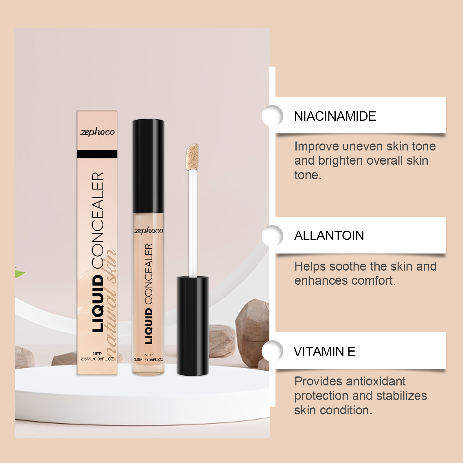 我们的自然色液体遮瑕膏,由聚二甲基硅氧烷、二氧化钛精心调配而成。专为精准覆盖瑕疵,让肌肤表面更显均匀细腻设计。使用方法极为便捷:1. 完全清洁肌肤并干燥。2. 用自带刷头取适量遮瑕膏,点涂在瑕疵处。3. 用手或者粉扑轻拍,让遮瑕边缘与肌肤自然过渡。并且它可以具备防水防汗特性,持妆状态稳定,不易脱妆花妆,帮助提亮肤色,同时调节肌肤油脂分泌,保持清爽平衡。