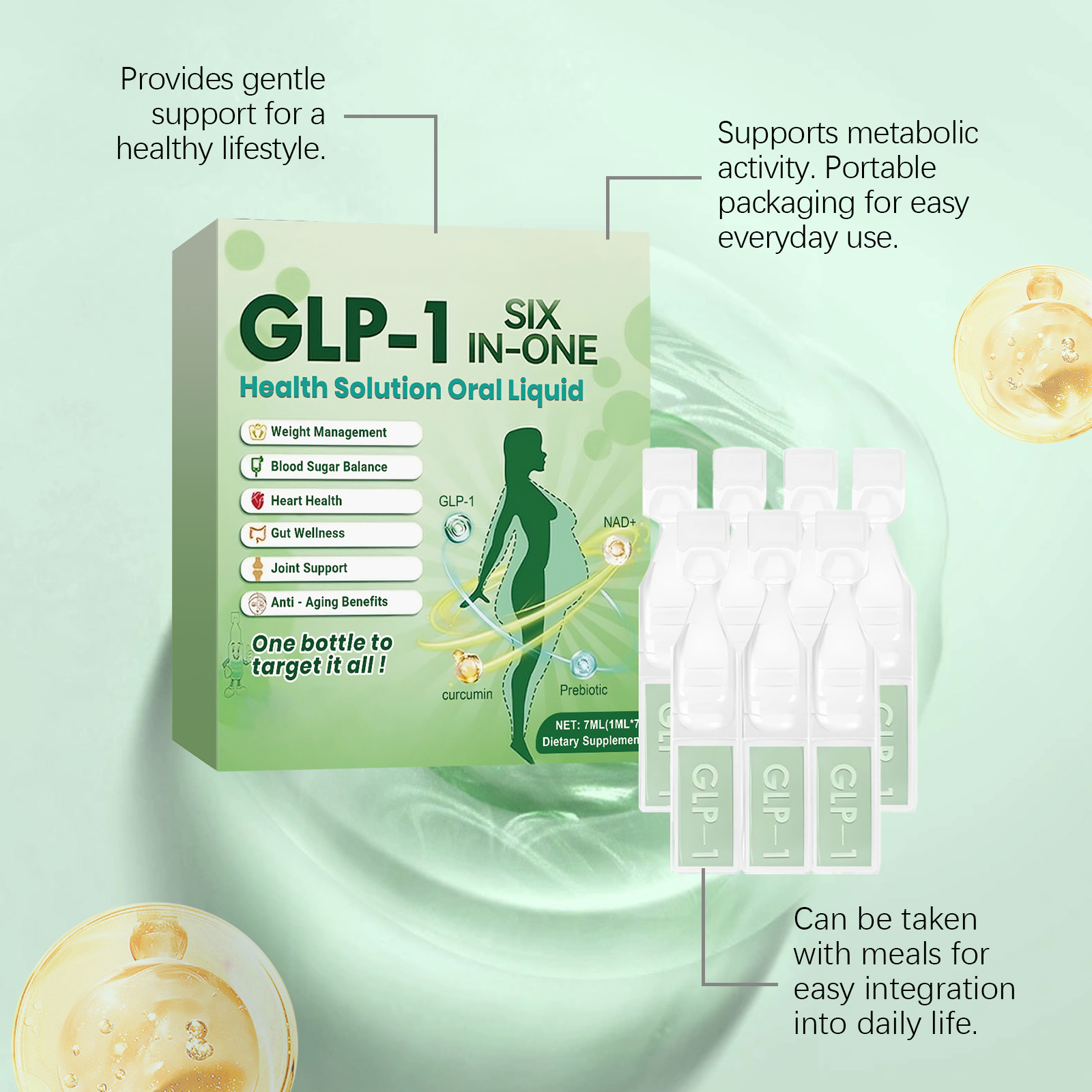 我们的身体护理滴剂 ,由绿茶提取物、辣木叶提取物、姜黄精心头而成。专为支持肠道健康设计。使用方法极为便捷:每次服用一安瓿,可以直接服用或与食物混合。并且有助于体重管理,适用于各种饮食情况。