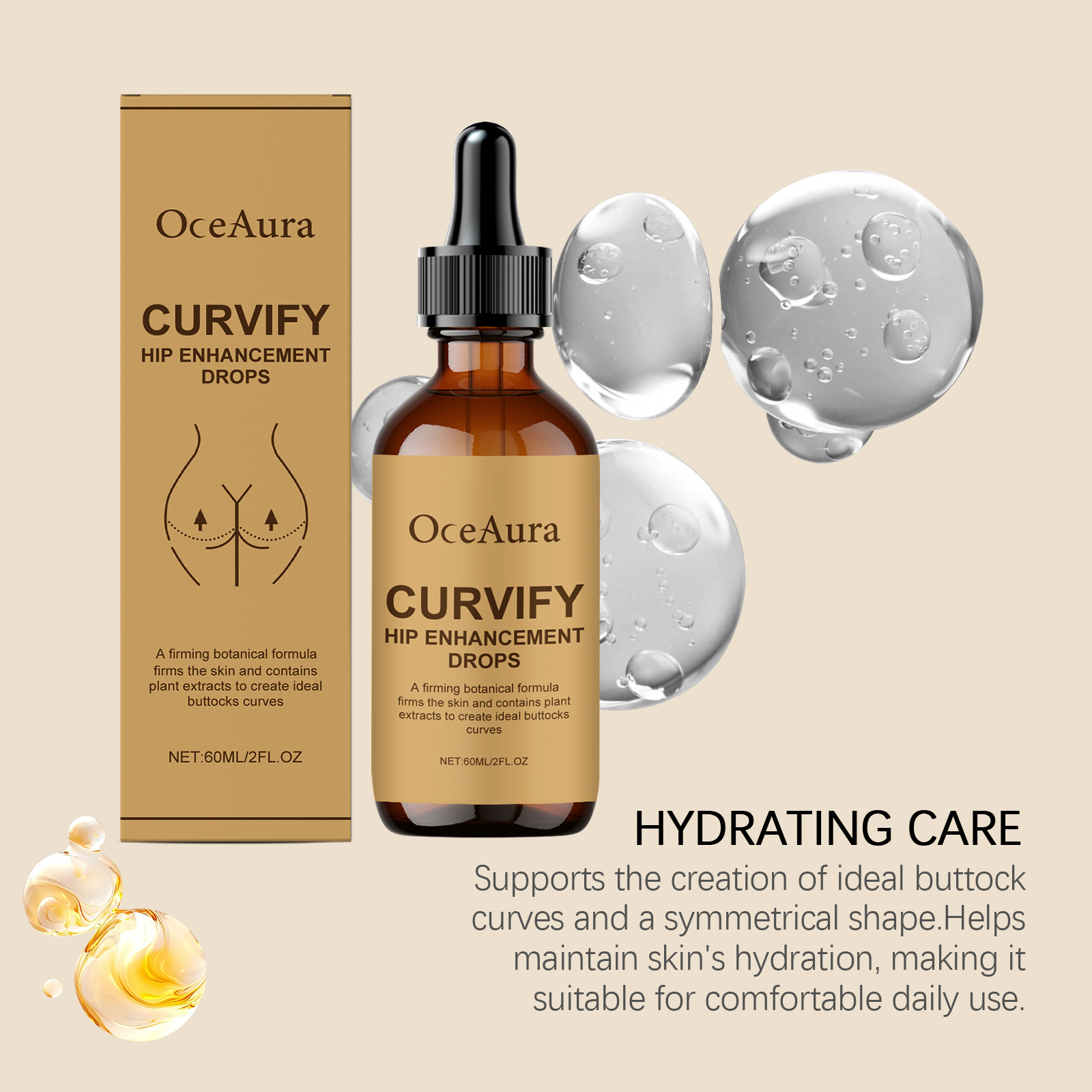 我们的臀部护理精华液,由姜根油、库拉索芦荟叶提取物精心调配而成。专为帮助紧致臀部设计。使用方法极为便捷:清洁并擦干臀部,将适量本产品涂抹于臀部,轻轻按摩以促进吸收。并且可以支持创建理想的臀部曲线和对称的形状。