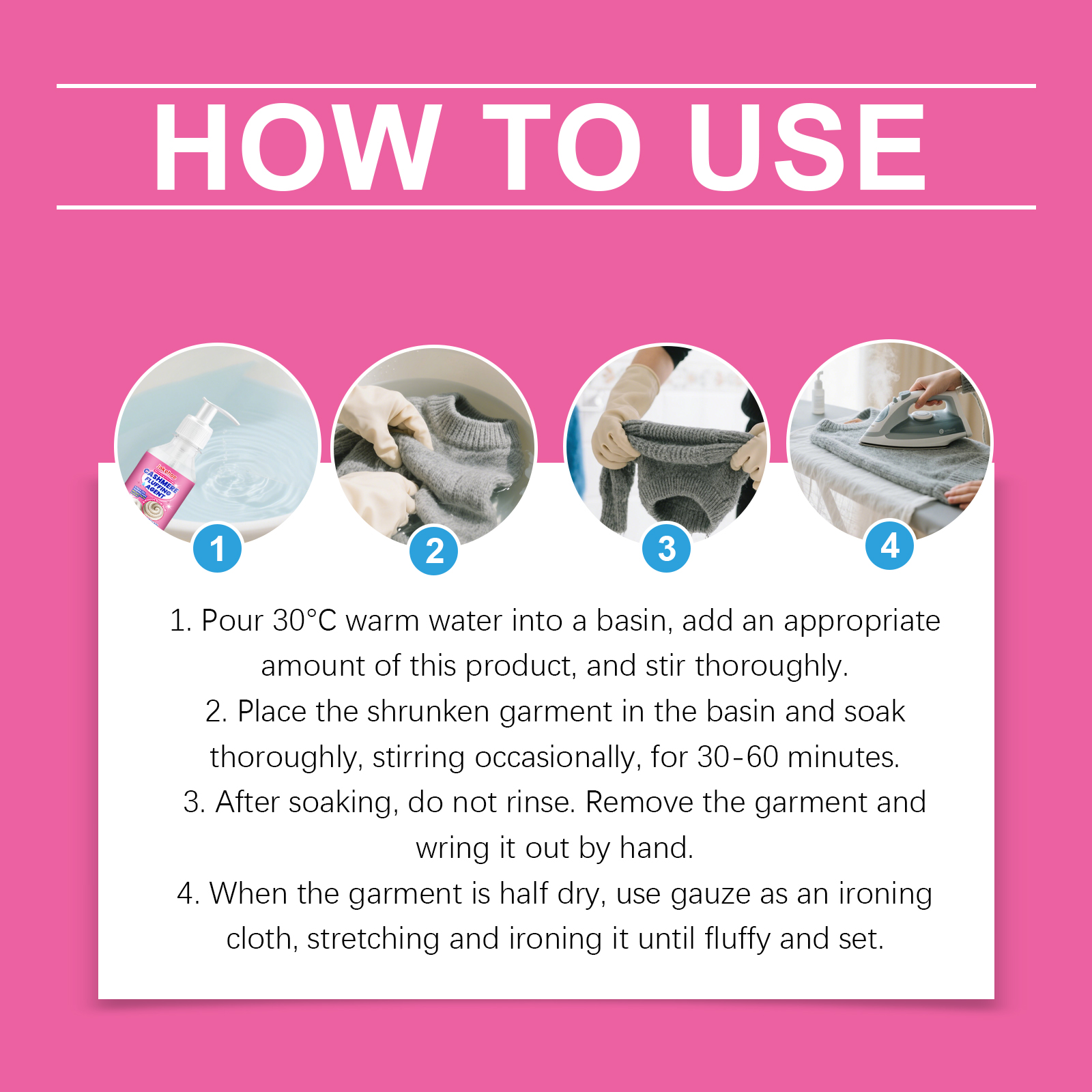 我们的羊毛衫缩水还原剂,由十二烷基磺基甜菜碱、羧甲基纤维素精心调配而成。专为拉伸纤维并恢复羊毛毛衣的原始尺寸设计。使用方法极为便捷:1.将30°C的温水倒入盆中,加入适量本产品,并充分搅拌2.将缩水的衣物放入盆中,充分浸泡,偶尔搅拌,浸泡30-60分钟。3.浸泡后,不要冲洗。将衣物取出并用手拧干。4.当衣物半干时,用纱布作为熨烫布料,拉伸并熨烫至蓬松并定型。并且可以减少缩水后的僵硬感,带来更舒适的触感。