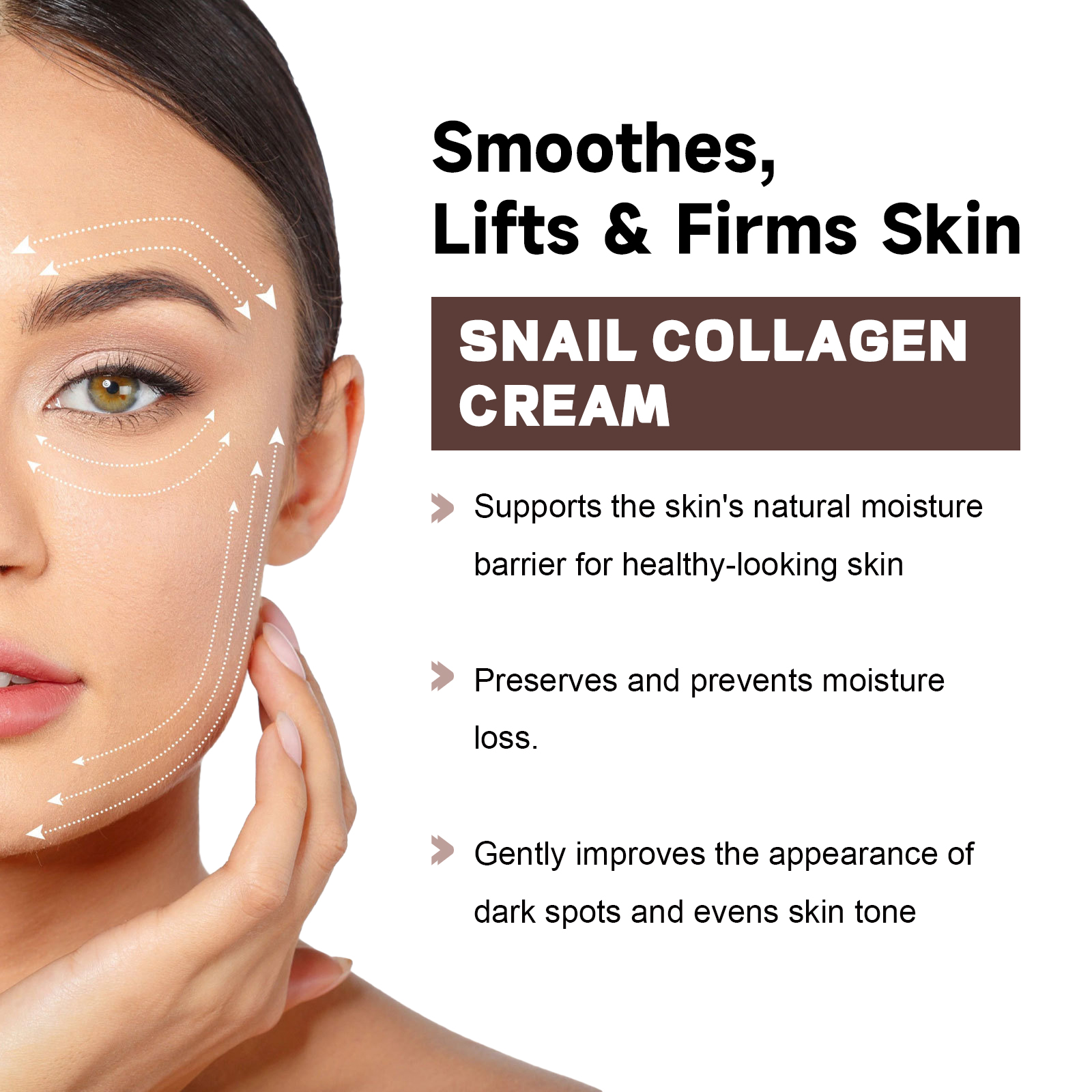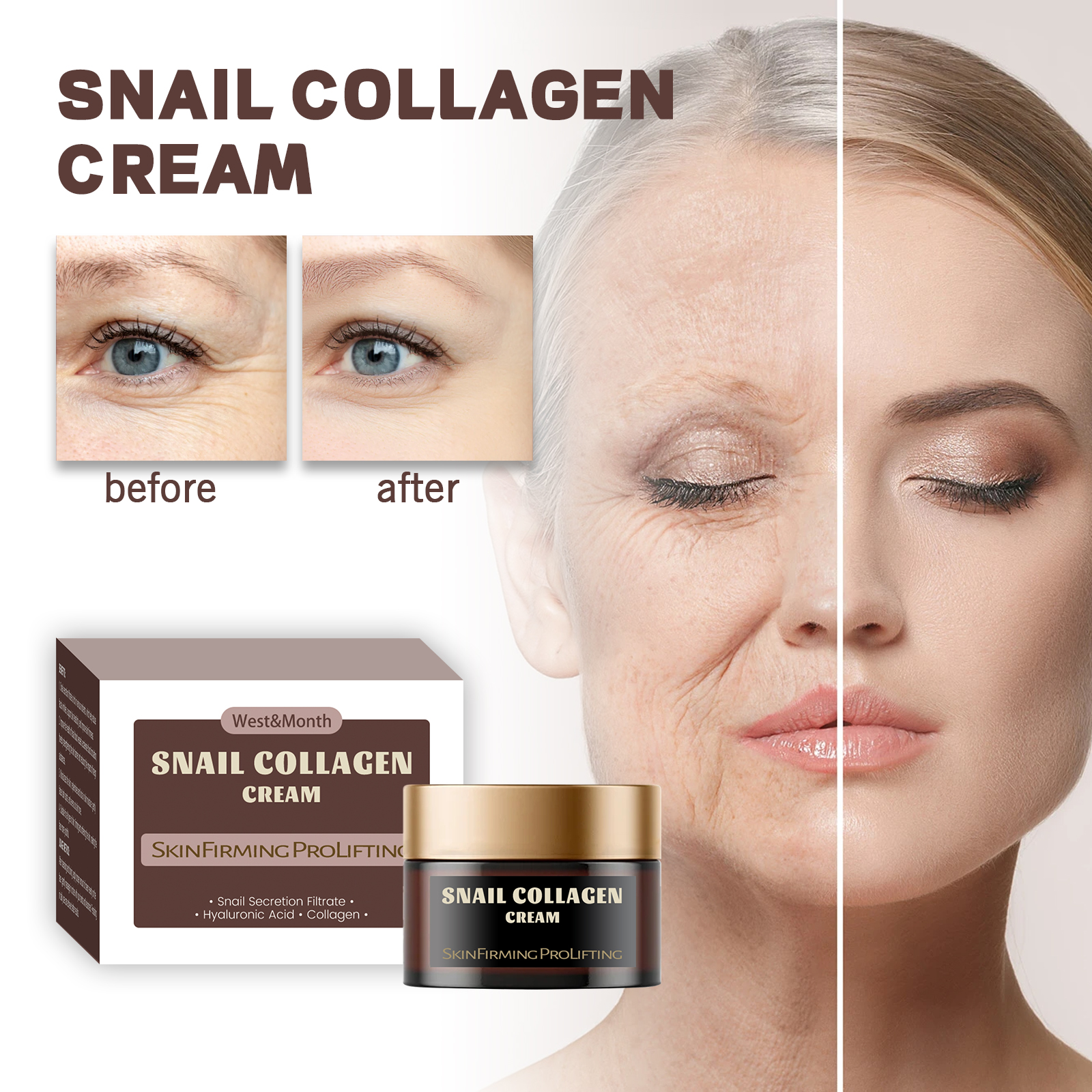 我们的蜗牛紧肤胶原蛋白霜含有蜗牛分泌物滤液、透明质酸、胶原蛋白。它可以减少细纹,皱纹和黑斑的出现,减缓皮肤老化的迹象,提供深层水分,逆转基因老化,恢复肌肤活力。它的使用方法很简单:洁面爽肤后,擦干脸部取适量面霜均匀涂抹于面部,然后轻轻按摩双手做圆周运动,直到被吸收。并且可以淡化细纹,补水保湿。