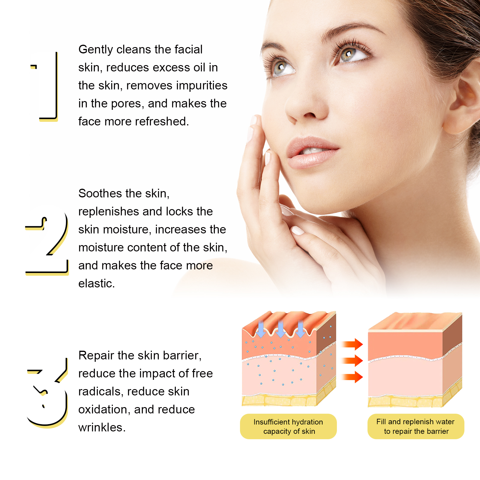 我们的抗老洁面膏含有坚果油、母菊提取物。它可以温和清洁面部肌肤,减少肌肤多余油脂,清除毛孔杂质,补充并锁住肌肤水分,增加肌肤水分含量,使脸部更具弹性。它的使用方法很简单:先用温水打湿脸,再取适量洁面霜在你的手掌上揉搓到泡沫,然后将泡沫均匀地涂抹在脸上,轻轻地做圆周按摩来清洁,最后用清水冲洗掉泡沫。并且可以全面清洁肌肤。