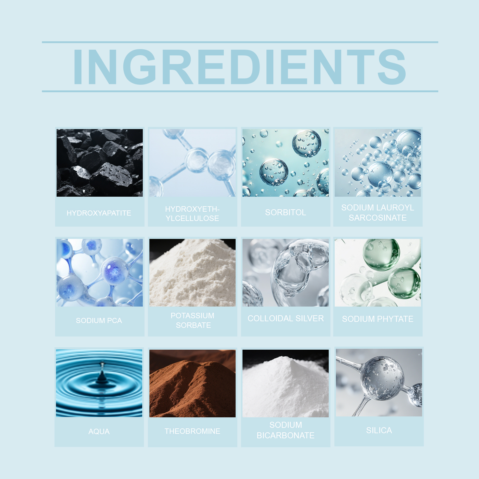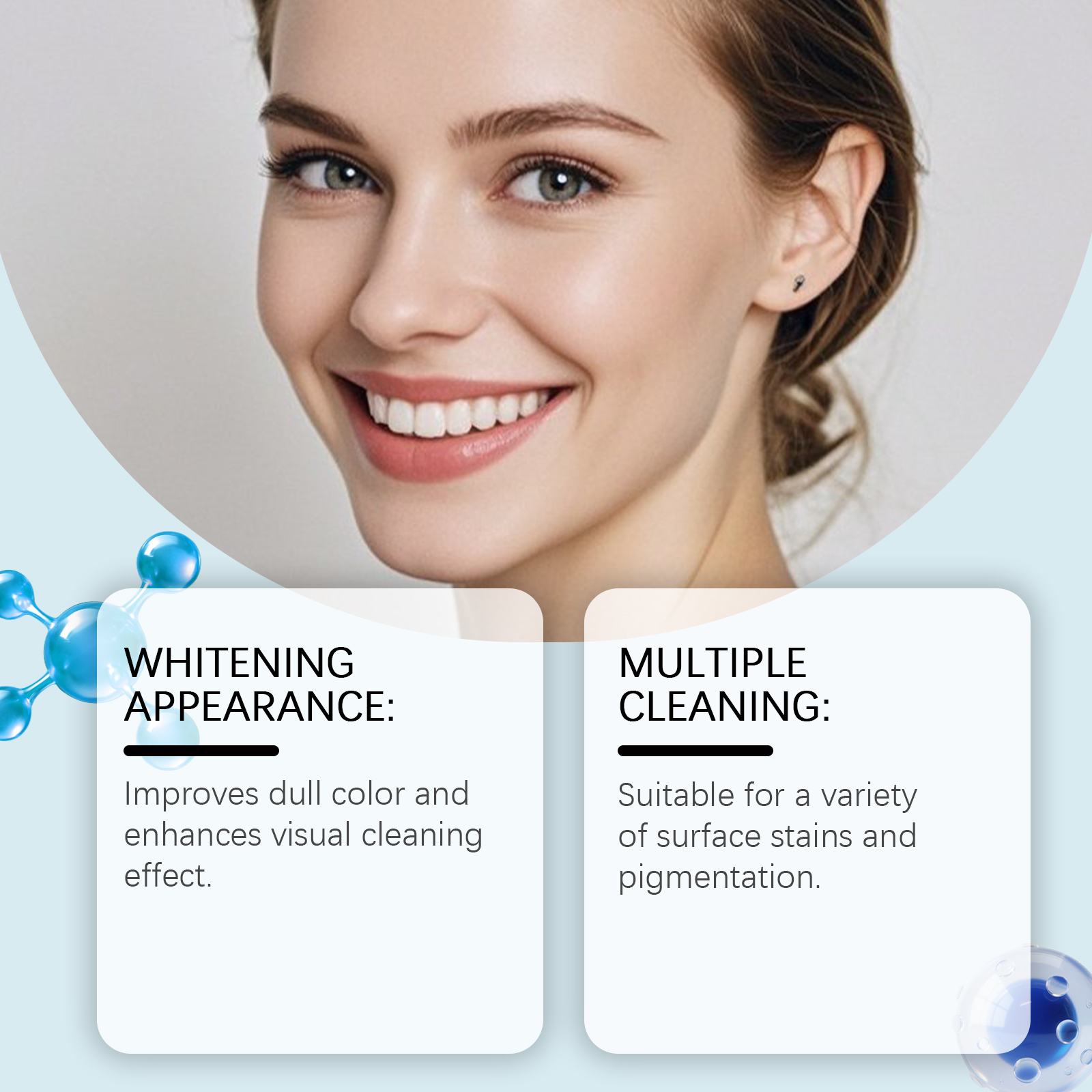 我们的牙齿护理精华液,由碳酸氢钠、山梨(糖)醇精心调配而成。专为有效去除牙齿色斑,恢复洁白笑容设计。使用方法极为便捷:可取适量1-2滴本品滴在牙膏或牙粉上进行清洁,或者取 2 至 4 滴于少量水中,进行漱口或含漱。并且它可以增强牙齿保护层,预防蛀牙问题,提亮牙齿色泽,修复受损牙釉质。