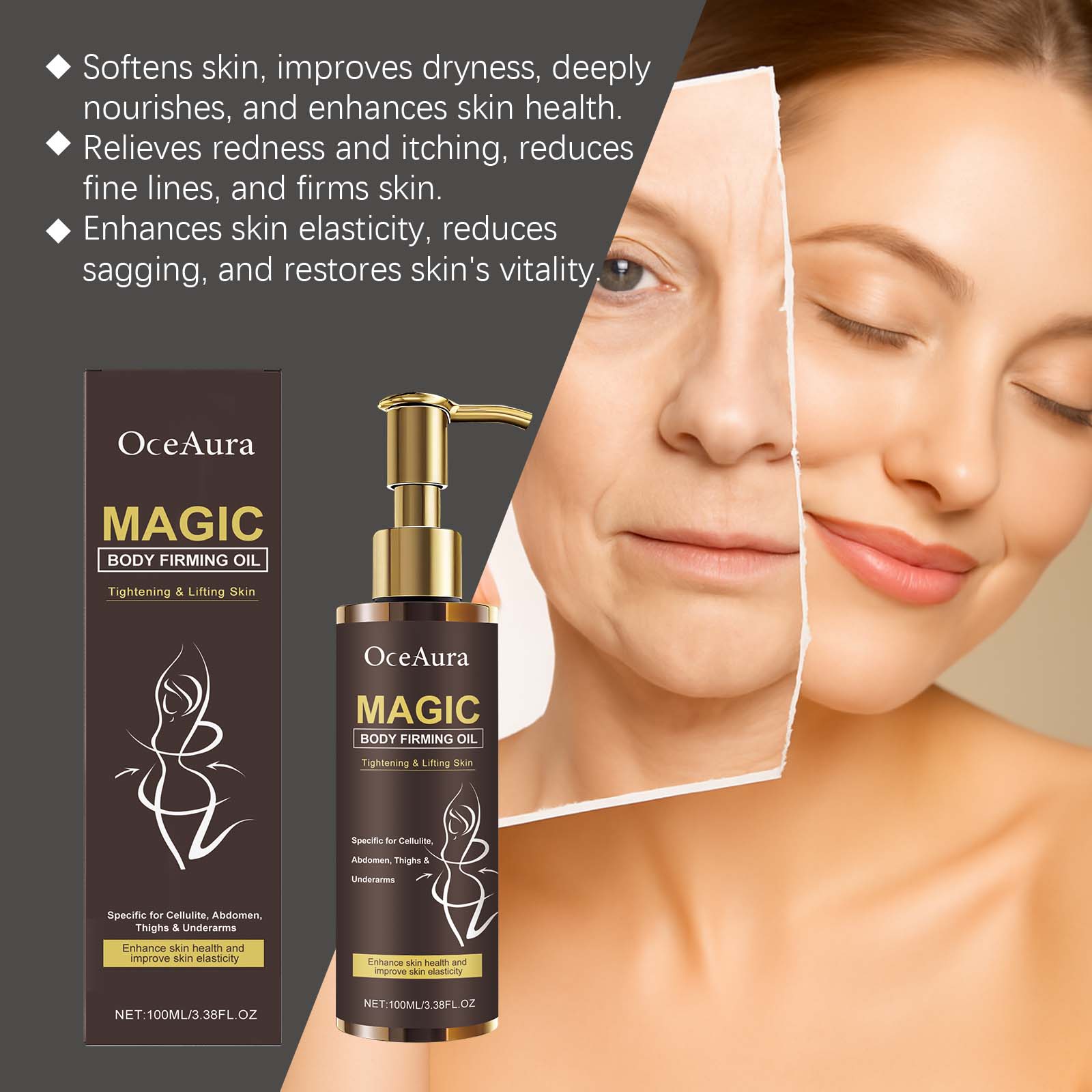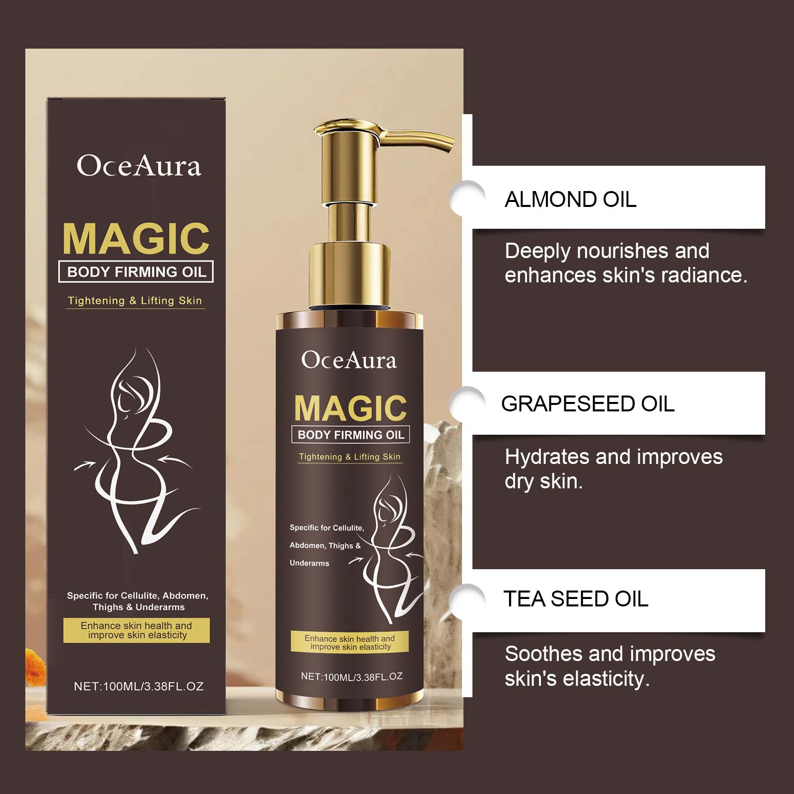 我们的身体护理油,由葡萄籽油、茶籽油精心调配而成。专为滋养肌肤并提升活力设计。使用方法极为便捷:清洁并擦干皮肤,取出适量本产品,均匀涂抹在身体皮肤上,如臀部、手臂、大腿等。并且具有轻盈质地,快速渗透。
