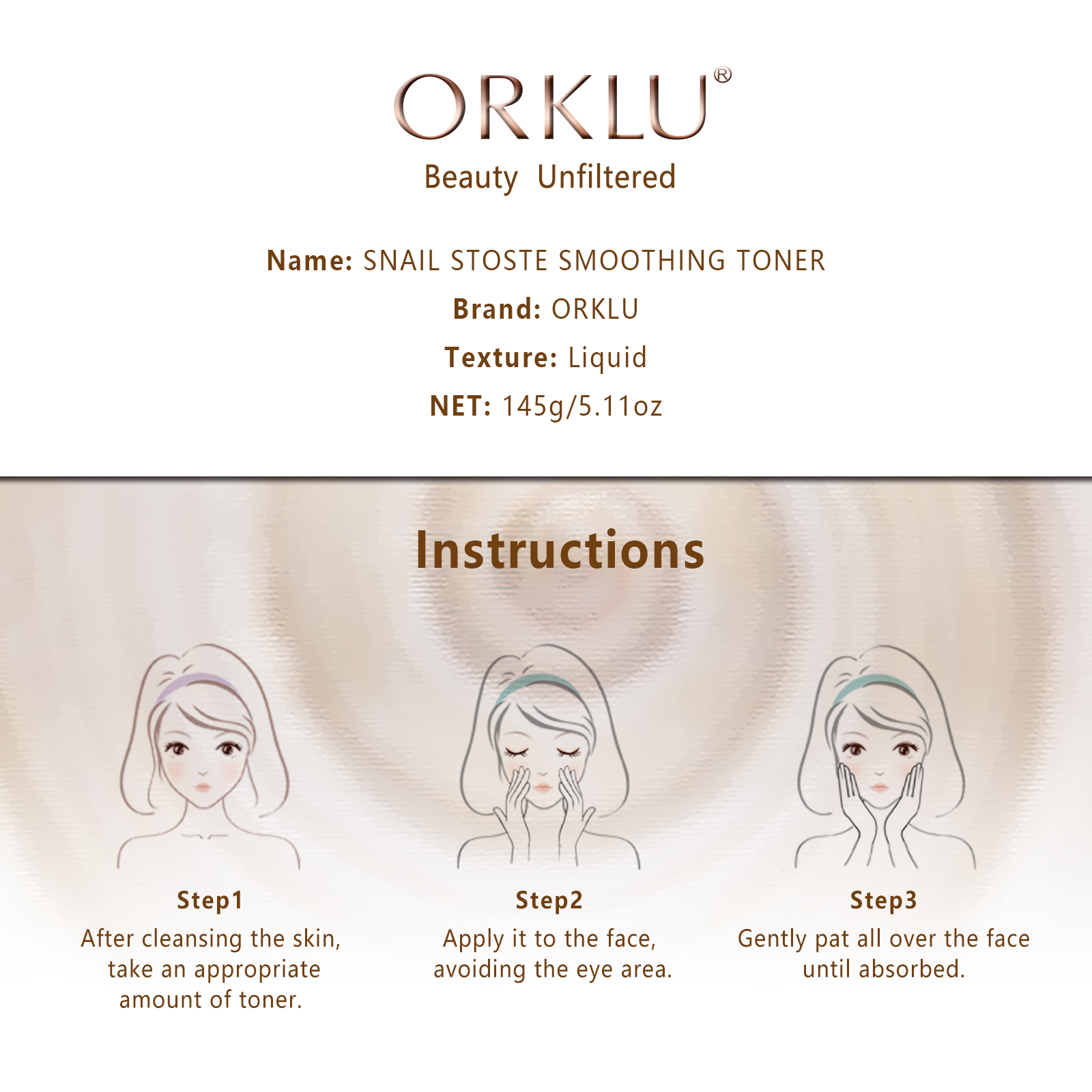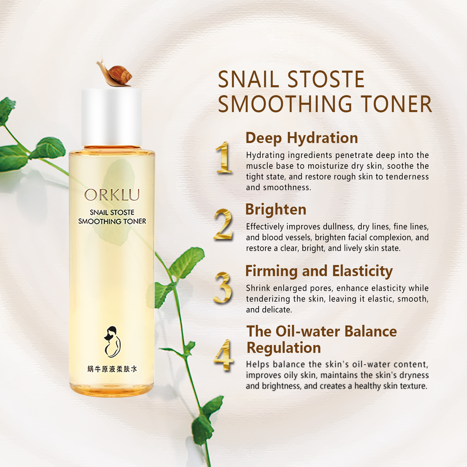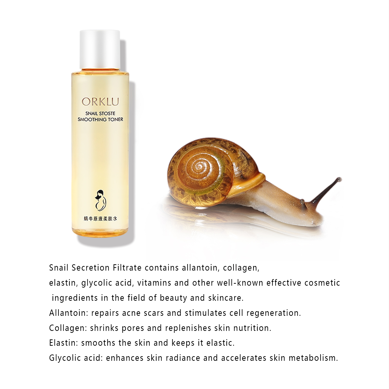 我们的蜗牛原液柔肤水,由尿囊素、胶原蛋白、弹性蛋白精心调配而成。专为深层补水、增强光泽、紧致弹性肌肤设计。使用方法极为便捷:洁肤后,取适量柔肤水。把它涂在脸上,避开眼睛区域。轻轻拍打脸部直至吸收。滋润干燥肌肤,舒缓紧绷状态,使粗糙肌肤恢复柔嫩光滑,有效改善暗沉、干纹、细纹、血管,提亮肤色,恢复肌肤清澈明亮、充满活力状态,收缩粗大毛孔,增强弹性的同时使肌肤嫩化,保持弹性、光滑、细腻,平衡肌肤油水含量,改善油性肌肤,保持肌肤干性、亮度,营造健康肤质。